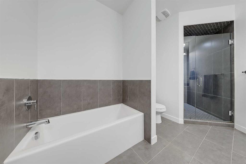 Welcome to this rare end unit fronting green space. This highly upgraded Bordo townhome showcases over 2,300 sq ft (over 1,700 sq ft above grade), soaring ceilings, a private fenced yard, a fully developed basement, and a rare attached insulated garage. This home delivers the comfort and scale of a detached home with the ease of low-maintenance inner-city living. The bright main floor features 10-ft ceilings and expansive windows that fill the space with natural light. The contemporary, warm living room has a massive window overlooking the adjacent green space. It centres on a tiled feature wall with a gas fireplace and is enhanced by built-in ceiling speakers. The rear kitchen anchors the layout with a quartz waterfall island and counters, a sleek glass backsplash, stainless steel appliances including an induction cooktop, a dual-basin undermount stainless steel sink, a discreet hood fan, and ample high-end cabinetry. A powder room and a mudroom with direct access to the attached garage add everyday functionality. Upstairs, the primary suite impresses with 16.6-ft ceilings, oversized windows, a large walk-in closet, a bonus loft, and a spa-inspired 5-pc ensuite featuring heated tile floors, a dual-sink vanity with quartz and storage, a soaker tub with tile surround, and a fully tiled stand-up shower with 10mm glass door. A second bedroom with 14.5-ft ceilings, a full 4-pc bathroom, a versatile bonus room, and a convenient upper-floor laundry closet complete the upper floor. The fully developed basement features 9-ft ceilings, a spacious rec room, plus a third bedroom and a full bathroom—ideal for guests or for use as a home office. Mechanical upgrades include a high-efficiency furnace, humidifier, and HRV system. Enjoy a private fenced yard with a gas line for a BBQ, plus immediate access to the large green space outside the door. Located in the heart of Renfrew, just minutes to downtown, 16 Ave, Edmonton Trail, Deerfoot Trail, schools, parks, shopping, Calgary Zoo, and the Renfrew Aquatic Centre, this home offers outstanding inner-city convenience. Schedule a private showing today!