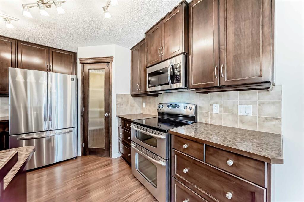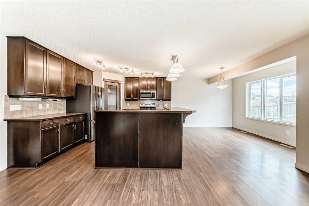 2329 SQFT HOME WITH MAIN FLOOR BEDROOM OR OFFICE, HUGE BONUS ROOM, AND LOW MAINTENANCE BACKYARD WITH HOT TUB Welcome to this WELL MAINTAINED home offering 2329 SQFT of living space, a functional layout, and finishes that go beyond the standard. Freshly painted and in MOVE IN READY CONDITION, this home SHOWS VERY WELL and offers strong value for buyers looking for space and usability. The main floor features HIGH CEILINGS, LARGE WINDOWS, and an OPEN CONCEPT layout that creates a bright and comfortable living space. Major mechanical upgrades include CENTRAL AIR CONDITIONING, a HIGH EFFICIENCY FURNACE, and a NEW WALL HUNG HOT WATER SYSTEM WITH SOFT WATER, all completed within the past year. The living and dining areas flow directly into the kitchen, making it ideal for everyday living and entertaining. The kitchen offers STAINED TO CEILING CABINETRY, great counterspace, and a MASSIVE WALK IN PANTRY. A MAIN FLOOR BEDROOM OR OFFICE adds flexibility for guests or working from home. You will also appreciate the LARGE MUDROOM off the DOUBLE ATTACHED GARAGE, which includes TIRE STORAGE RACKING. Upstairs, the layout continues to stand out with a HUGE BONUS ROOM complete with a WET BAR and space for a bar fridge. Two GENEROUS BEDROOMS are connected by a well designed JACK AND JILL BATHROOM with a split layout ideal for family use. The PRIMARY BEDROOM is spacious and features a HUGE WALK IN CLOSET and a LARGE ENSUITE with a SEPARATE TOILET ROOM. The upper floor also includes a FULL LAUNDRY ROOM with a WINDOW, COUNTERSPACE, and a SINK. The basement is ALMOST FULLY DEVELOPED with a MASSIVE REC SPACE and a LARGE BEDROOM already completed, and is READY FOR FINAL BATHROOM COMPLETION. Step outside to a LOW MAINTENANCE BACKYARD with ARTIFICIAL TURF, a NEW DECK, and a HOT TUB for year round enjoyment. The yard is functional, private, and includes REAR ALLEY ACCESS. Located in Cimarron with quick access to schools, shopping, and main routes, this home offers convenience for daily living. One of the larger homes in the area with a GREAT LAYOUT, this property offers a strong combination of SPACE, FUNCTION, and VALUE.