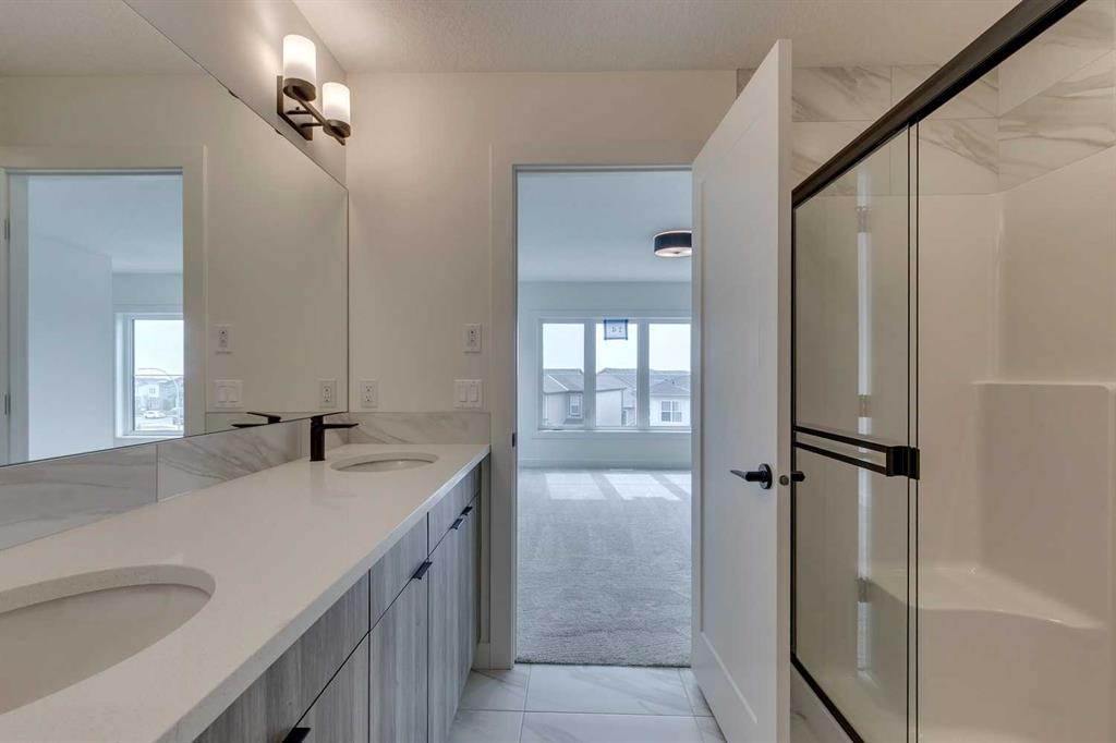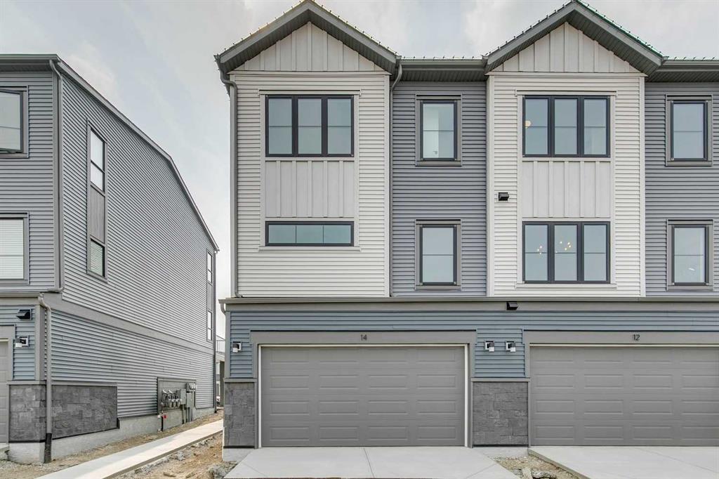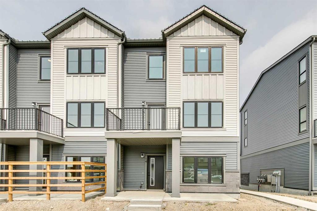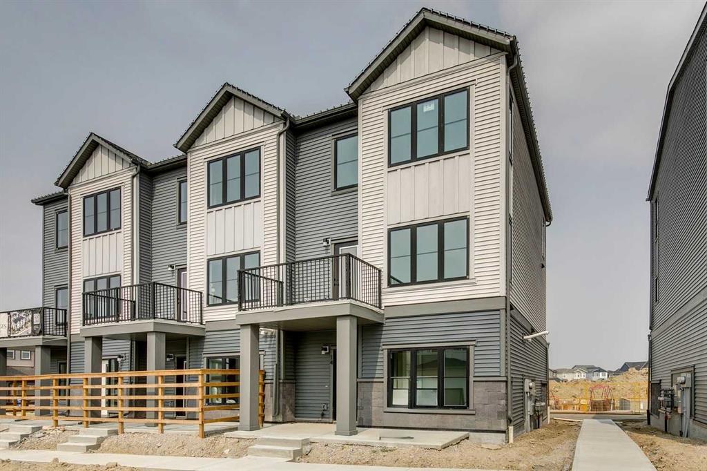 Unbeatable value! Come see for yourself! The “Alden” is one of Fifth Avenue Homes’ most popular floor plans. This 3 storey, tri-plex style end unit townhome has over 1,700 sqft of luxury living space & a double attached rear garage with direct access into the home. The entry level has a spacious mudroom, 2 pc bath, flex room, which is perfect for a home office or gym & mechanical. The main floor, with an excellent, open plan, features a huge great room with 10×8 balcony, dream kitchen highlighted by an oversized, 5-stool breakfast bar island, Quartz countertops & custom tile backsplash, adjoining dining area, walk-in study & 2 pc bath. The upper level offers a 4 pc bath, laundry, 2 bedrooms and a gorgeous primary suite with walk-in closet, 4 pc ensuite (double basin vanity & 5’ step-in shower closet). High-end plumbing & lighting fixtures throughout! Fifth Avenue Homes is well known for above standard finishings & attention to detail both in design & workmanship. This listing has just been completed & is ready for occupancy – pick your possession & move right in. GST included in sale price. Low condo fees of $299/month for landscaping, snow & trash removal – Builder is offering FREE condo fees for TWO years and will cover all monthly condo fees for 24 months starting the first month following the possession date. Payment details to be determined at time of an offer. The Cottages are situated in the heart of Belvedere & just minutes to all the amenities in East Hills Plaza (Costco, movie theatre, shops & restaurants), close to future CBE elementary school site & 10 minutes to downtown on the Max Purple transit. Belvedere offers a wonderful family lifestyle with parks, natural wetlands and pathways. Book a showing with your Realtor today!