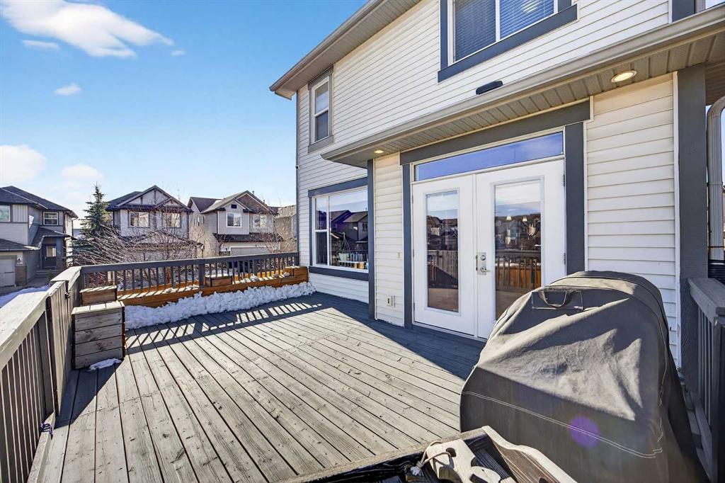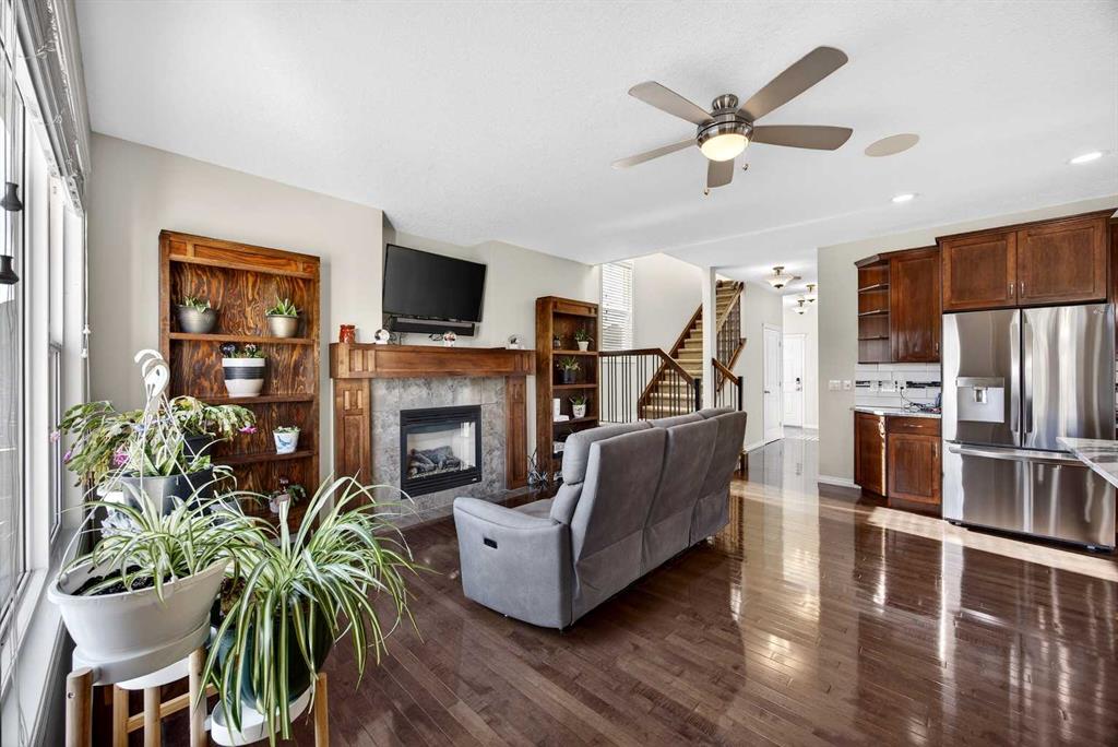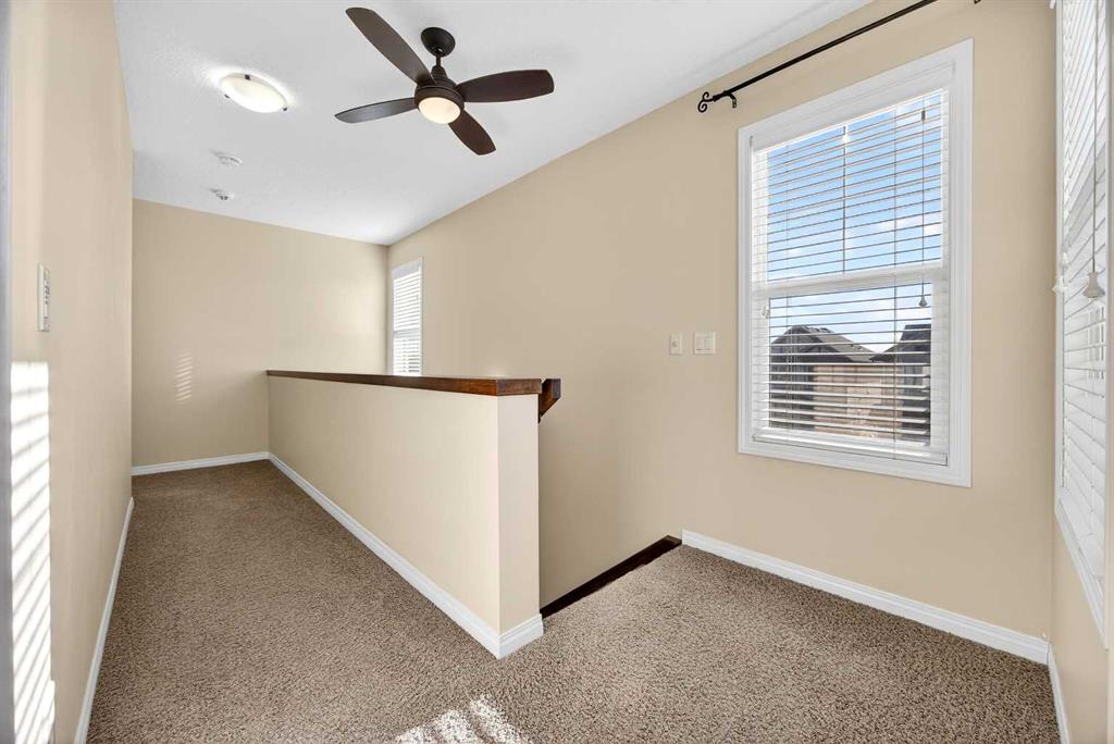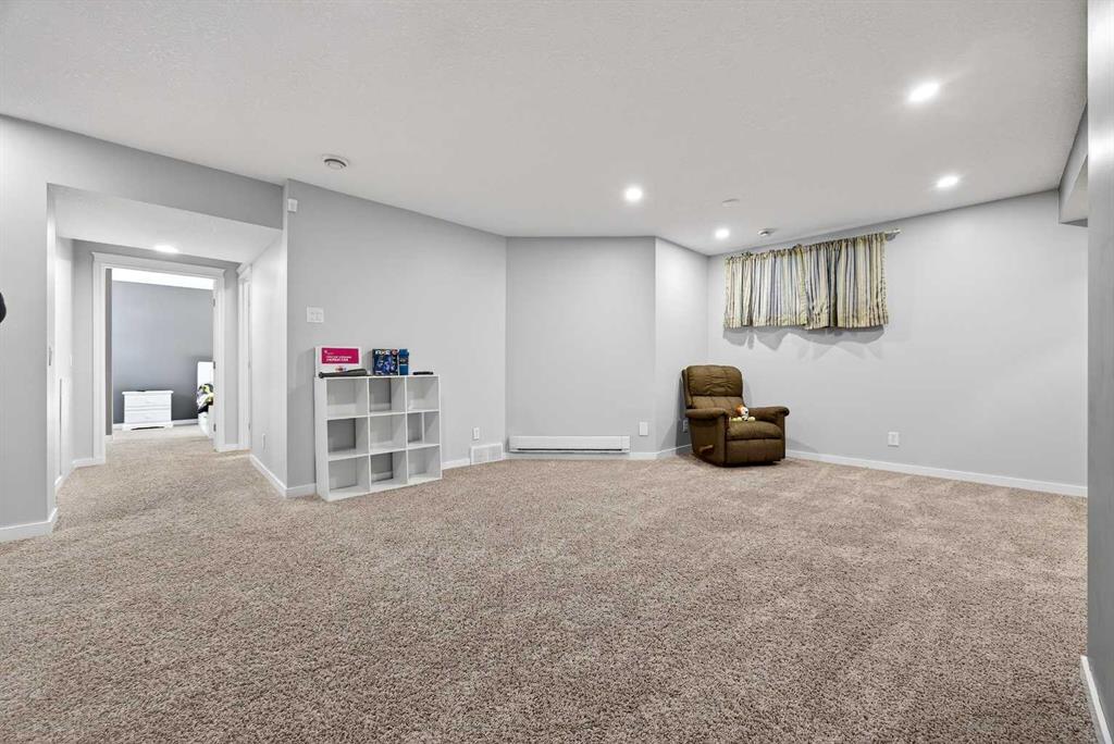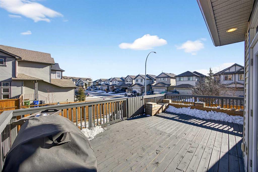 Nicely situated on an interior corner lot (i.e. loads of parking) within a no-through cul-de-sac, this pristine 4-bedroom + main floor den home offers unbeatable value in Heritage Hills. Main floor features a bright/welcoming front foyer, large functional kitchen with stainless steel appliances/granite counters/island/breakfast bar/pantry, spacious living room with feature gas fireplace/tasteful built-ins, den, 2-piece powder room and large mudroom off double attached garage. Upper level houses a substantial primary bedroom (13′ X 18′) with walk-in closet/full ensuite, 2 additional bedrooms, main bathroom and oversized laundry room. Lower level is fully developed to include a spacious family room, bedroom and bathroom. Upgrades include richly stained millwork, wrought-iron rails & nine-foot ceilings on main. Gargantuan 14′ X 23′ freshly painted deck to fully landscaped/fenced yard; complete with an interlocking firepit pad and walkway. Steps to amenities (i.e. Anytime Fitness, Coop liquor, pharmacy, Pizza 73 and dentist), public transportation and parks.