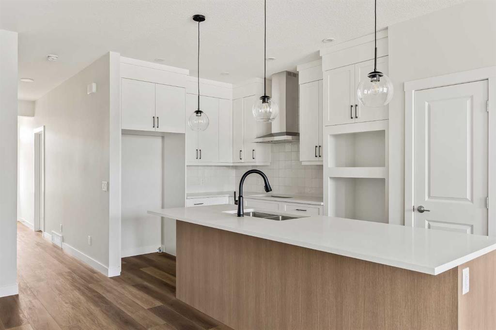 An incredible opportunity to own a brand-new home with a DOUBLE DETACHED GARAGE and IMMEDIATE POSSESSION in the desirable new community of Livingston. This bright and sunny home is situated on a northwest-facing lot, allowing natural light to pour through the main level throughout the day. Offering 4 bedrooms, 3.5 bathrooms, two living areas, and an undeveloped basement with a private side entrance, this property is ideal for investors, multi-generational living, or families looking for space to grow. Built by Brookfield Residential, the Oxford model is a beautifully designed home with nearly 2,000 sq. ft. of developed living space above grade. The open-concept main floor features 9-foot ceilings, extended-height cabinetry, and a large central island with a gourmet kitchen package that includes a chimney-style hood fan and built-in wall oven and microwave. The spacious great room is filled with natural light and is perfect for both everyday living and entertaining. A main floor bedroom with its own full ensuite adds excellent flexibility for guests, extended family, or a private home office. Durable and stylish luxury vinyl plank and tile flooring flow throughout the main level, making the home well suited for families with children and pets. Upstairs, a central bonus room separates the primary suite from the secondary bedrooms, creating a thoughtful and functional layout. The primary bedroom features a well-appointed ensuite with dual sinks and a walk-in shower. Two additional bedrooms, a full bathroom, and a dedicated laundry room complete the upper level. The basement is undeveloped and ready for your design ideas, with direct access from a private side entrance offering excellent future potential. Completing the property is a brand-new double detached garage to keep your vehicles clean, warm, and secure year-round, along with a private backyard to enjoy. This home is brand new and comes backed by both the builder warranty and the Alberta New Home Warranty, offering peace of mind for years to come. The Oxford truly offers it all with 4 bedrooms including a main floor bedroom, 3.5 bathrooms, two living spaces, and a flexible layout designed to meet a wide range of needs.