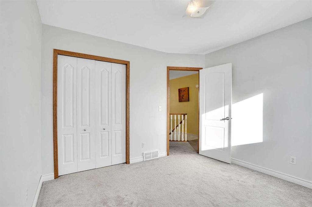 Exceptional property in a fantastic location – enjoy the sunny south deck on a huge pie lot backing onto green space leading to water park ( Tennis, Basket, Kids Facilities , Community Center etc.) or school. Spacious entrance views the cool north living room with hard wood flooring. Everyone loves a spacious kitchen with an abundance of cabinets, pantry, center moveable island, a gourmet stainless-steel sink and solid wood counters! It is a pleasure to work in this sunny kitchen overlooking the large mature landscaped south yard. The attached family room has a feature brick fireplace and hardwood flooring. Massive master bedroom and an ensuite to die for with oversized jet tub, extended vanity & mirror & separate shower. All bedrooms are generous size. Main floor laundry. Rough in Central Vacuum system. Double garage fully insulated & drywalled. Triple Pine Windows of all north side. NEW ROOF and SIDINGS IN 2022, NEW COMPOSIT DECK IN 2024, Newer carpet thru upper level. All this and an easy walk to the LRT, shopping, school and water park.