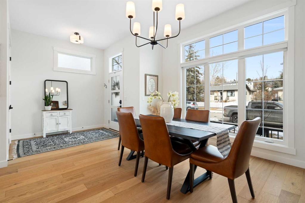 Quiet luxury in one of Calgary’s most up-and-coming inner-city neighbourhoods. With over $50,000 in upgrades since its 2022 build, this like-new home is truly move-in ready. Unlike a brand new build, there’s no need to spend $15,000 on window coverings, $15,000 on a composite deck and landscaping, or $7,000 for Air Conditioning – it’s all been recently done and more! Past the welcoming entry and dining space, you are greeted by a 15 foot long kitchen island, upgraded appliance package, ample cabinetry, and a stylish bar area complete with a wine fridge – perfect for entertaining. The living room features a cozy gas fireplace with custom built-in shelving, ready for your family photos and memories. Large sliding glass doors lead to your sunny southwest-facing backyard, complete with a gas BBQ hookup, creating the perfect space for hosting friends or relaxing at the end of the day. For everyday convenience, enter from your finished double garage into a full mudroom with custom storage, keeping coats, shoes, and gear neatly organized and separate from the main living areas. Wide-plank hardwood flooring runs throughout the main floor, adding warmth and a timeless, high-end feel. Upstairs, you’ll find two generously sized bedrooms, a 4-piece bathroom, and a spacious laundry room with a sink. The primary suite completes the upper level, offering a large closet with custom storage and a spa-inspired ensuite featuring a soaker tub, double vanity, heated floors, and expansive views. The fully finished basement with 9-foot ceilings adds even more living space with an additional bedroom with a walk-in closet, a 4-piece bathroom, and a fantastic entertainment area complete with a fully equipped wet bar – the perfect spot to host the big game or movie nights. The inner-city is ever changing, find comfort knowing that the neighbours have already been redeveloped – no more construction noise! Montgomery offers the best of inner-city living: minutes to downtown, easy access to the mountains, walking distance to the Bow River, Bowmont Park and Montalban Park (off-leash), Foothills Hospital, Market Mall, Safeway, Fringe Coffee and NOtaBLE Steakhouse.