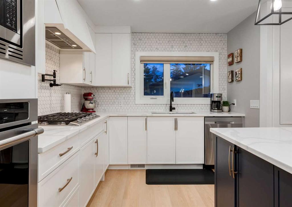 Tucked into the highly sought after community of Varsity, this beautifully renovated bungalow offers the perfect balance of style, comfort, and location just minutes from the University of Calgary, Market Mall, University District, and the Bow River pathways. This 4 bedroom, 3 bathroom home has been thoughtfully updated with quality craftsmanship and attention to detail carried throughout every room. The open concept main floor is filled with natural light from large windows, creating a bright and welcoming living space centered around a cozy fireplace. The kitchen is both functional and refined, featuring quartz countertops, a spacious waterfall island, stainless steel appliances including a gas cooktop and built in wall oven and microwave, along with ample storage. The primary bedroom offers a walk in closet and a private 4 piece ensuite with heated floors, creating a warm and comfortable retreat year round, while a second bedroom and full bathroom complete the main level. The fully developed basement is designed for both relaxation and entertaining, with a large recreation area, second fireplace, wet bar, two additional bedrooms, a full bathroom, and laundry room with sink. Outside, the home continues to impress with both front and back outdoor living spaces including a private backyard retreat featuring concrete steps, low maintenance artificial turf, and a pergola that creates the perfect setting for summer evenings or quiet mornings. An oversized double detached garage and convenient back alley access add to the functionality of the property. A truly turnkey home in one of Calgary’s most desirable communities steps from Varsity Acres School and close proximity to F.E. Osborne, St. Vincent de Paul, and Marion Carson Schools. Click on the video in the media link and book your private showing to view this exceptional opportunity!