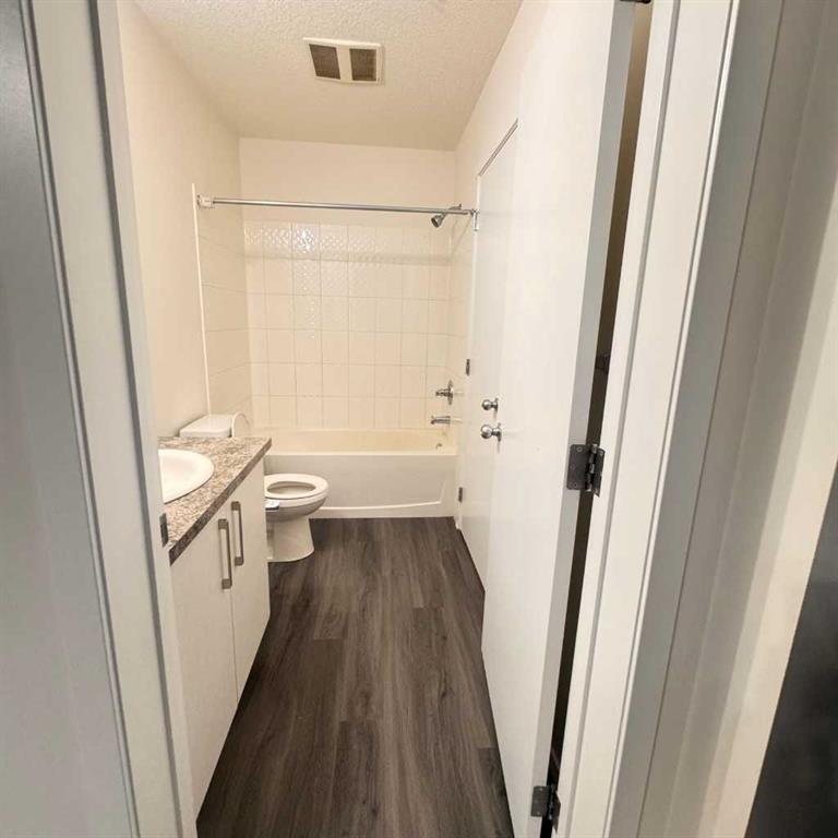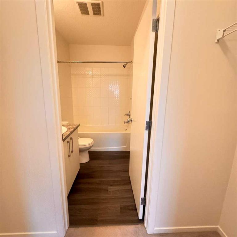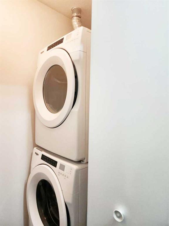 Spacious living and dining area with access to a private Exit door, facing to front side of the building with main floor. The primary bedroom includes a walk-through closet and ensuite. Second bedroom and full bath provide great flexibility for guests or roommates.