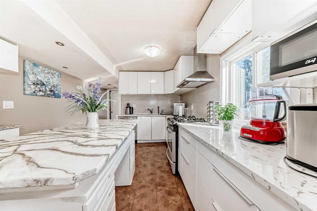Welcome to West Bowness , rare to find large 2 -storey home situated on a massive 50×124 ft size lot with over 2150 Sq/ft of total living space. Nestled on a quiet street in the heart of West Bowness, this spacious and versatile property presents a rare opportunity for both large families and savvy investors. The home boasts a charming stucco exterior, four entrances and offers beautiful views of Canada Olympic Park (especially during the skiing season). The main floor has a large entrance with an exterior front porch (2015). Step inside and be greeted by a bright, spacious main floor bathed in natural light from west and south facing windows. The updated kitchen (2018) is a true chef’s dream, featuring granite countertops, vinyl flooring, a gas range, a large pantry, and new white cabinets + SS appliances. This area flows seamlessly into the main living spaces with updated laminate flooring, providing plenty of room for family gatherings and entertaining. For ultimate convenience, the main floor also includes a full bathroom and laundry facilities (2015). Off the kitchen you have access to a large deck with full exposure to the huge backyard. This home is perfect for a growing family, offering four large bedrooms on the upper level. The generous primary bedroom is a standout, providing a secluded retreat with its own separate second-floor staircase and a massive walk-in closet. Beyond the main living area, the property offers fantastic income potential with an illegal bachelor suite built in 2015. Featuring its own separate side entrance and sidewalk, kitchenette, 4-piece bathroom, and a laundry connection, along with an egress window and new tile flooring. This illegal suite is ideal for extended family or a significant mortgage helper. The huge, private, and fenced yard is an oasis featuring fruit trees and a playground area, while a large front concrete pad leads conveniently to the back. Enjoy your morning coffee on the covered front porch or host a summer BBQ on the rear deck off the kitchen. The Property also includes an oversized (24×24) double garage, perfect for storage and parking. The location can’t be beat! You’re just steps away from nature with Bowness Park, Canada Olympic Park, Winsport and the home offers incredible access to community amenities all within walking distance to elementary & high schools, transit, and just a few minutes’ drive to shopping centres, new Calgary Farmers market, Foothills & Children’s Hospitals, University of Calgary (UofC), Bowness library & eateries and major thoroughfares like Stoney Trail, TransCanada highway to the mountains, and city pathways leading straight to downtown. This is a superb opportunity to own a spacious home with modern updates, incredible appeal, and income potential in a friendly, sought-after neighbourhood. The possibilities are truly endless, whether you’re looking for a perfect family home, a rental property, or a fantastic property to hold. Book your showing today!