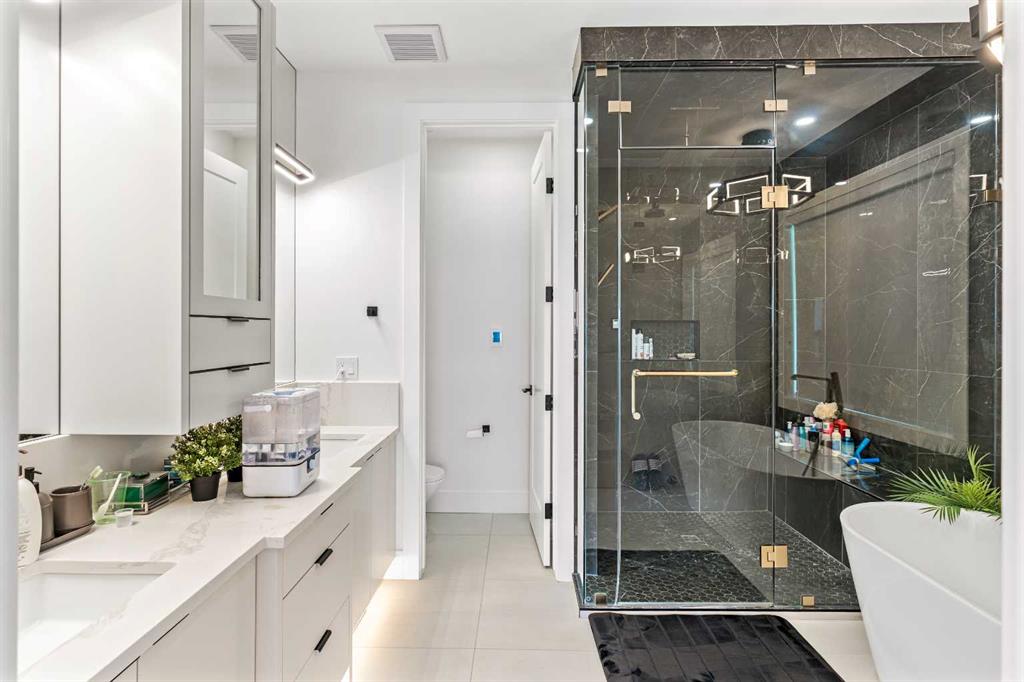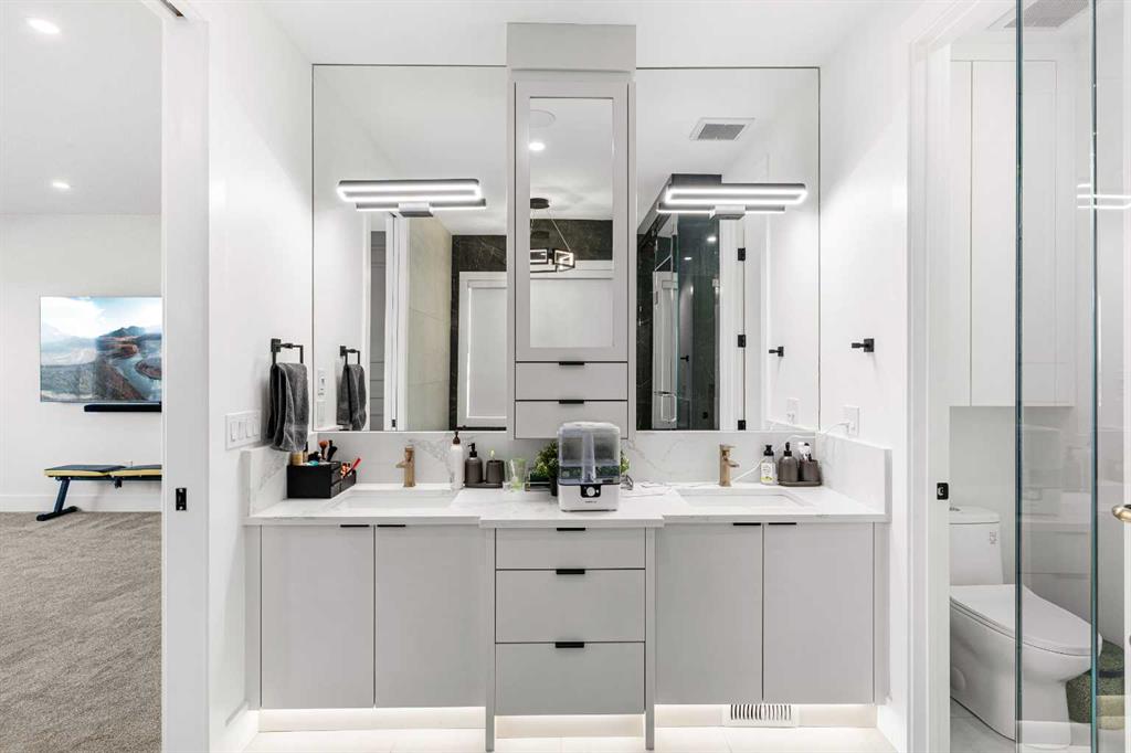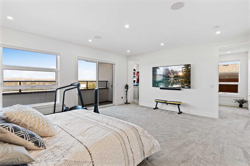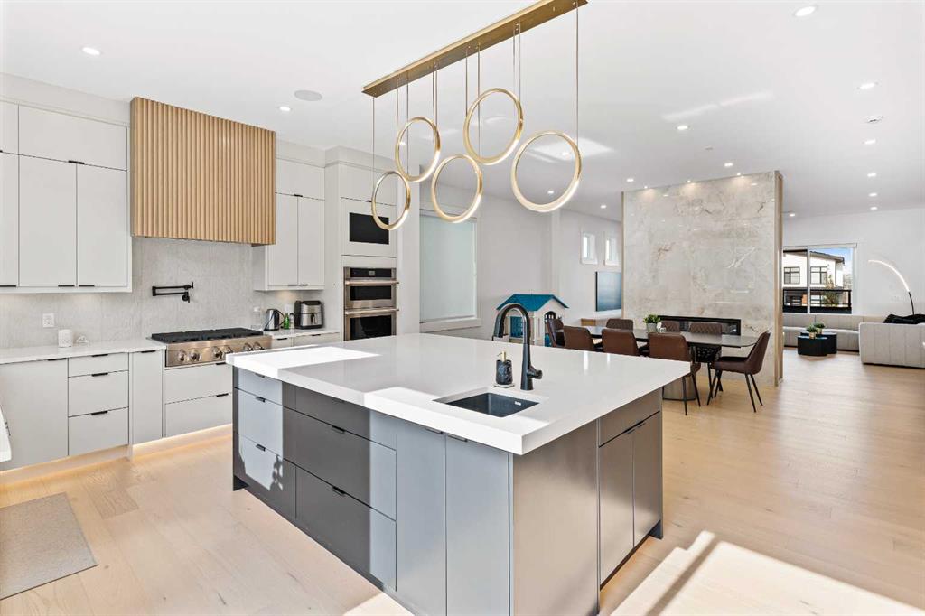 Welcome to 467 Patterson Blvd SW, a luxury custom built residence in the newest subdivision in prestigious Patterson Heights. Thoughtfully designed with an emphasis on modern living, timeless finishes and functional spaces this home offers over 3,900 sqft above grade plus a fully developed 1,040 sqft basement creating a total of almost 5,000 sqft of finished living space. This lovely home is fully landscaped with a large 16×12 gazebo and backs on to a treed green space for the utmost privacy. As you enter the home you are welcomed into a grand foyer with soaring ceilings and up/down access to the heart of the home. Heading up to the main level the living area is spacious and bright with patio doors & access to the first balcony, recessed lighting and a gorgeous floor to ceiling double sided tile facing fireplace nicely partitioning off the dining area & living area. The chef inspired kitchen is sure to impress featuring custom full height cabinetry, premium quartz countertops, a large central island with breakfast bar seating & sink with built-in appliances (including oversized French door fridge, gas cooktop with pot filler, wall oven & microwave) pantry and if this isn’t enough of a wow factor, tucked around the corner is the spice kitchen with second set of appliances + more room to cook when hosting guests! Finishing off this level you have a spacious office, perfect for work or study and a 3pc bathroom with glass shower. Upstairs the serene primary suite offers a private balcony overlooking the front of the home, a spa inspired 5pc ensuite with a steam shower, heated floors, dual vanities and a freestanding tub plus a huge walk-in closet (with custom built in’s you have to see it to believe it). Two secondary bedrooms each enjoy private ensuite bathrooms and walk-in closets. This level also features a bonus room in the common area and laundry room with stacked washer & dryer + sink and cabinetry. The third floor loft is a showpiece of its own, offering a stunning wet bar with fridge, 2pc guest bathroom, huge storage closet space and expansive windows with skyline views of Calgary. Completing this home the reverse walkout basement features a 2 bedroom(1 with ensuite and walk in closet) versatile suite with rare 10 foot ceilings, kitchen, second laundry and fireplace. Additional highlights include main 10 foot ceilings on main, 8 foot doors throughout home, an oversized heated double garage, rear aggregate concrete patio, smart home wiring, premium exterior design, 2 furnaces, 2 A/C units, in floor heating, 2 gas lines for bbq/fire pit and thoughtful touches throughout. This exceptional residence is located minutes from top rated schools, parks, shops, and downtown Calgary. Come view this unique home and you will fall in love!