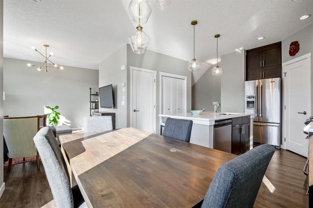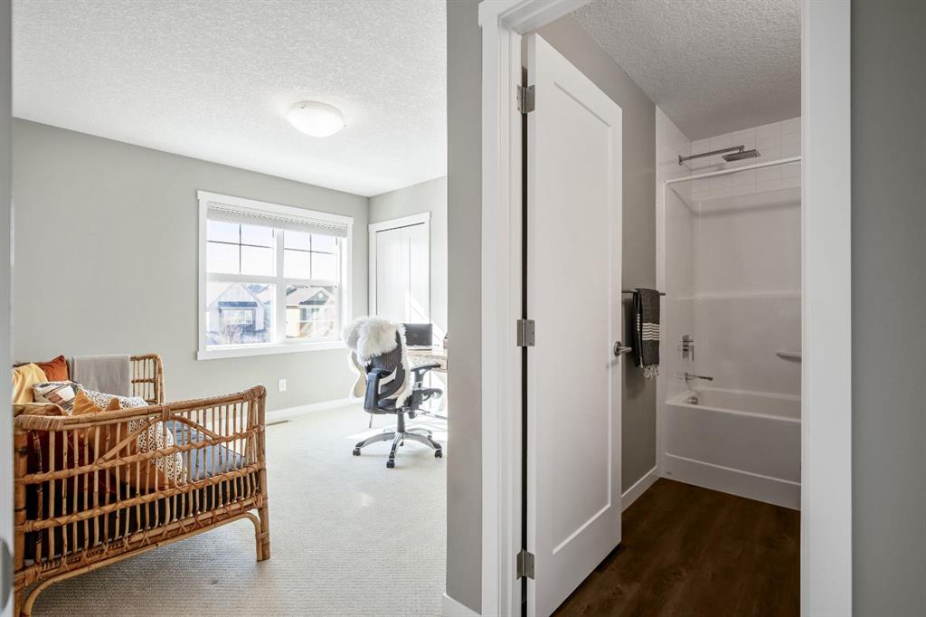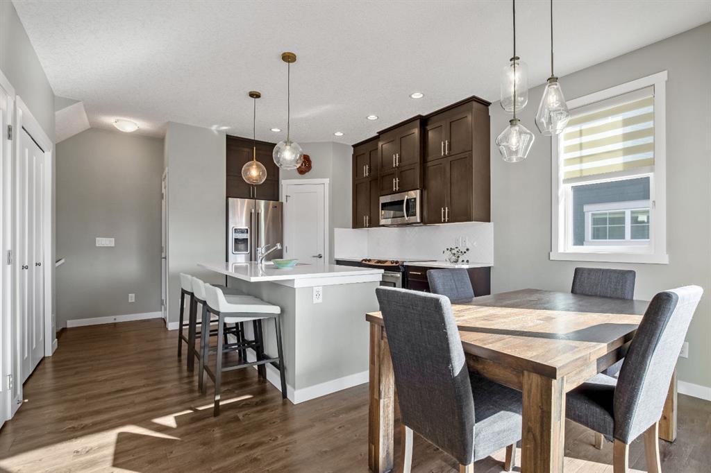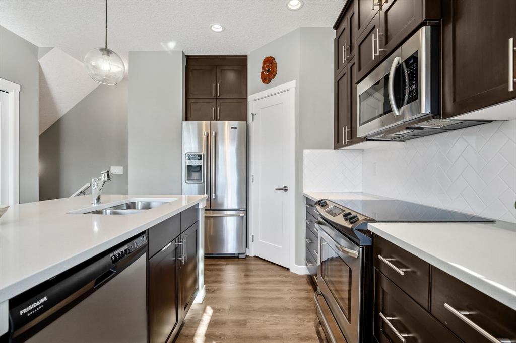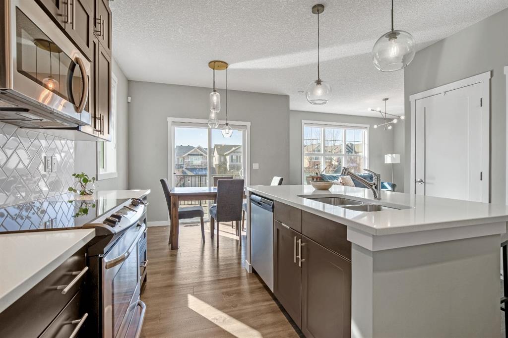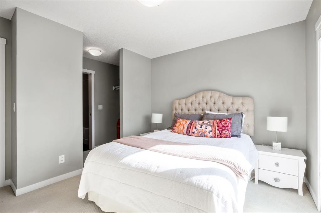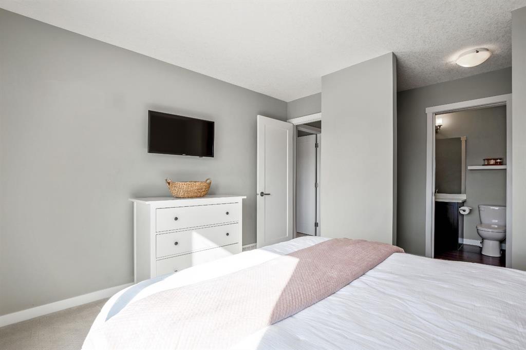 Welcome to this bright and stylish 3 storey townhome in the sought-after community of Nolan Hill, offering over 1,325 sq. ft. of living space in a very well-managed complex close to parks, ponds, pathways, shops, and restaurants. The main living level features 9’ ceilings and an open-concept layout with a spacious living room, dining area, and a modern kitchen complete with quartz countertops, stainless steel appliances, updated lighting and hardware, and a large central island. Sliding doors off the dining area lead to a sunny south-facing deck. Upstairs you’ll find two spacious bedrooms, each with its own 4-piece ensuite, making this an ideal layout for roommates, guests, or a home office setup. The primary bedroom also features a walk-in closet. A main level powder room & laundry room add extra convenience. The entry level offers a welcoming foyer and access to the attached single garage with additional storage/mechanical space. Located just minutes from major shopping including Costco, Walmart, Home Depot and Canadian Tire, along with restaurants, schools, playgrounds, and extensive walking paths throughout the community. A great opportunity for first-time buyers, professionals, or investors looking for low-maintenance living in a fantastic NW community.