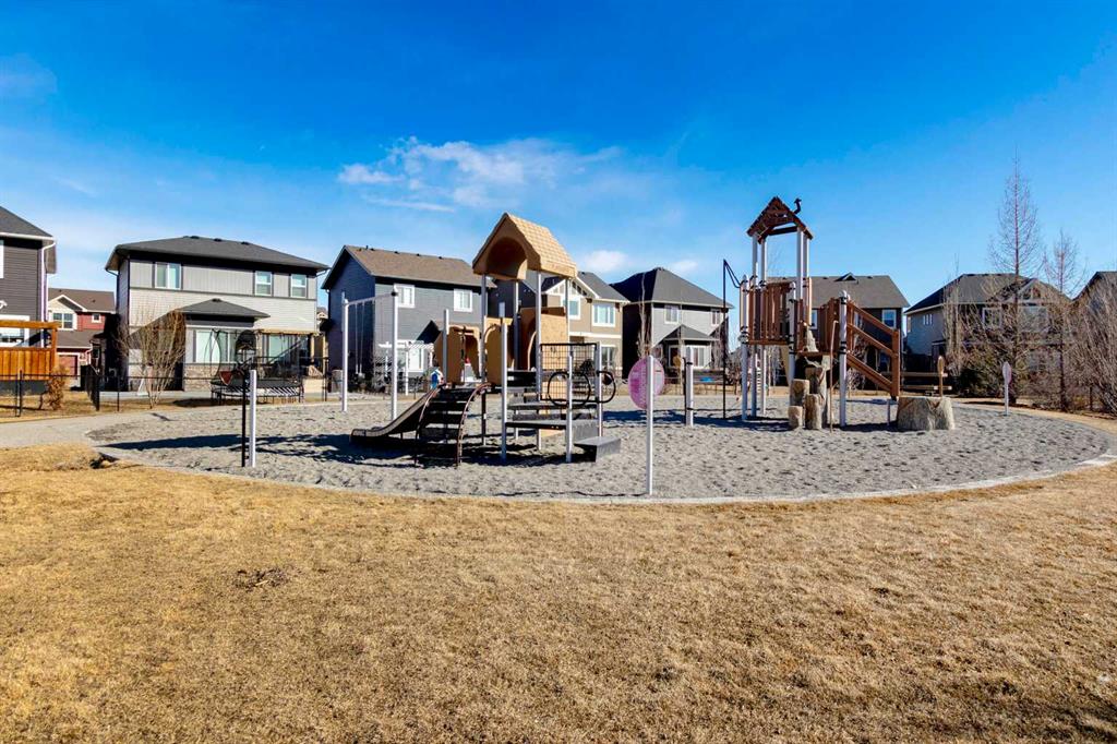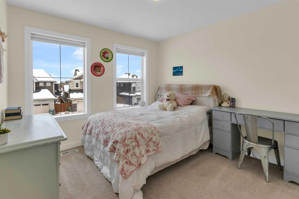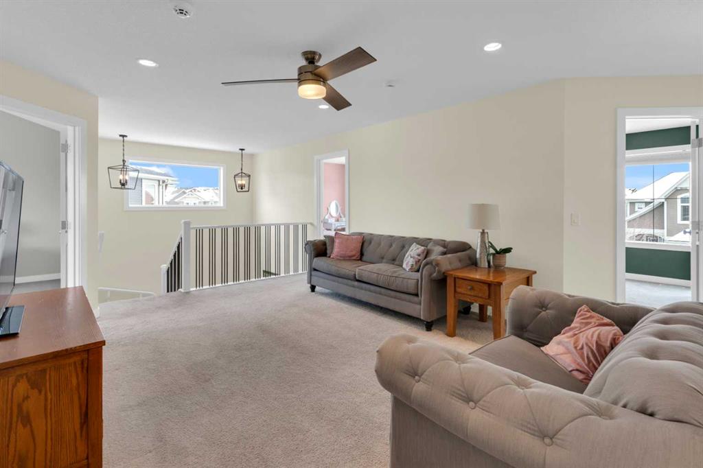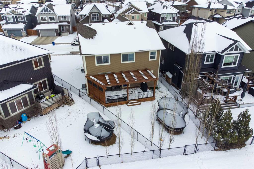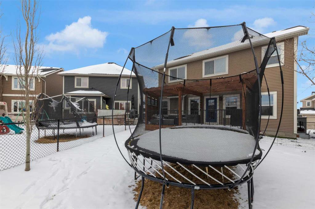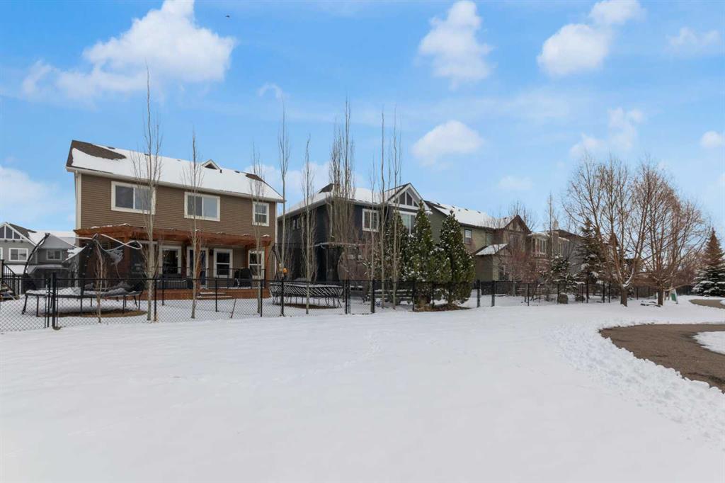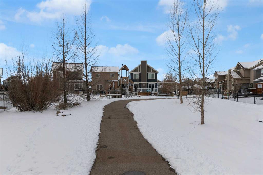 Beautifully designed and highly functional 7 bedroom, 4 bathroom 2 storey home with over 3400 sf ft of developed living space. Open-concept main floor features 9″ ceilings, a bright foyer with built in bench and a walk-in closet, 2 pc powder room, and a gorgeous, spacious kitchen with quartz countertops, large island, and huge pantry. Watch your children play in the park while making dinner. The cozy living room features a gas fireplace, while the spacious dining area opens onto a west facing deck ideal for relaxing and entertaining. A versatile main floor bedroom adds flexibility for guests or a home office. Upstairs you will find a bright and airy bonus room along with four generous bedrooms. The primary bedroom offers a vaulted ceiling, a luxurious 5-piece ensuite with dual sinks, quarts counters and a large walk-in closet. A well designed laundry room comes with cabinetry and counter space. Additional 4 piece bathroom completes the upper level. The fully developed lover level is thoughtfully designed with soundproofed 9′ ceilings, core insulated subfloor, CAT 5, large windows, family room, additional 2 bedrooms, office, another 4 pc bathroom, utility room, water softener central air conditioning. The double attached garage is equipped with a radiant tube heater and 240 wiring and ample room for parking and optional for many more. Outside, enjoy the beautifully landscaped yard, with underground sprinkler system, huge deck with pergola and a fully fenced backyard that backs onto a park with playground, walking pathway just 100 yards to canals. Explore over 10 km of scenic pathways, charming bridges, and year-round activities including biking, paddleboarding in the summer or skating in the winter. Ideally located within walking distance to Ralph McCall Elementary School and CW Perry Middle School, both just two blooks away-this home truly offers the perfect blend of comfort, style and location.
