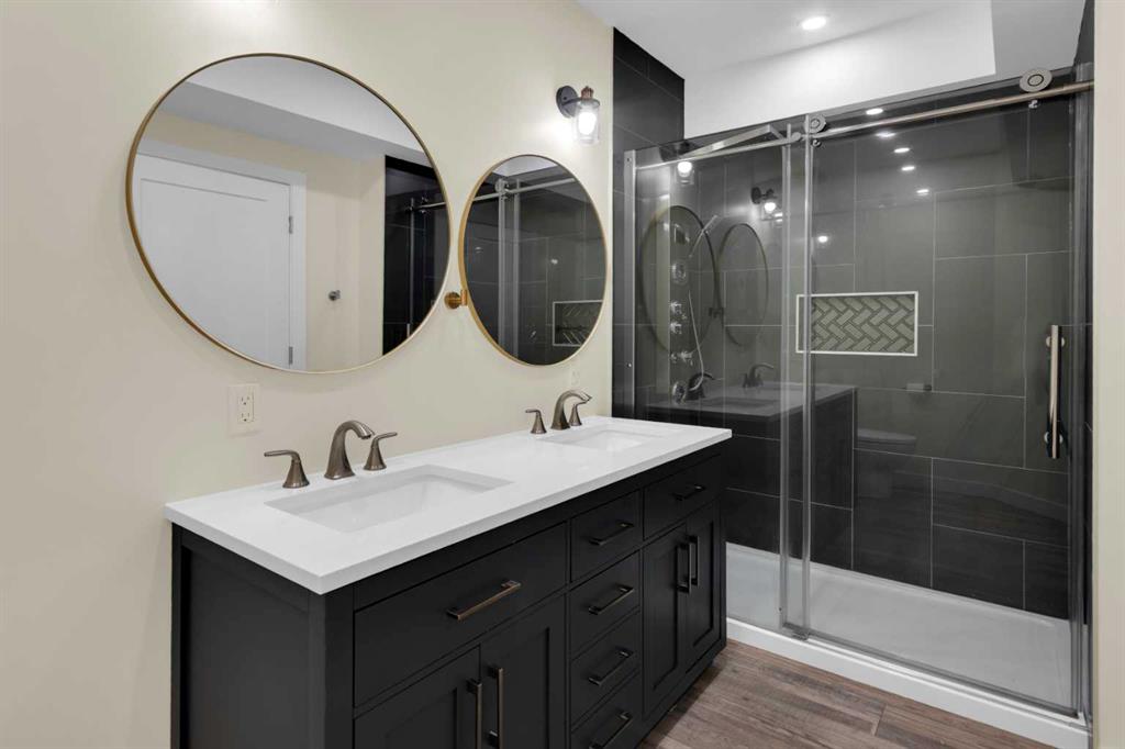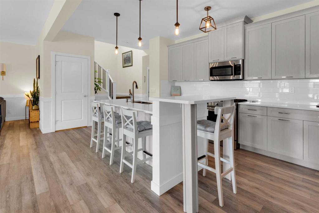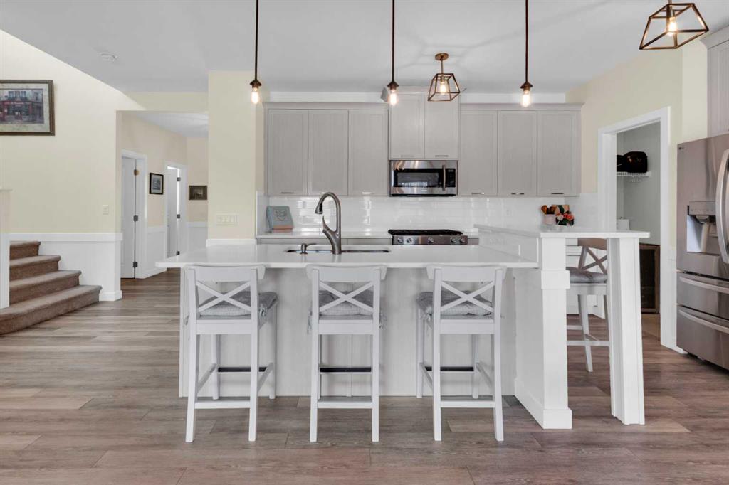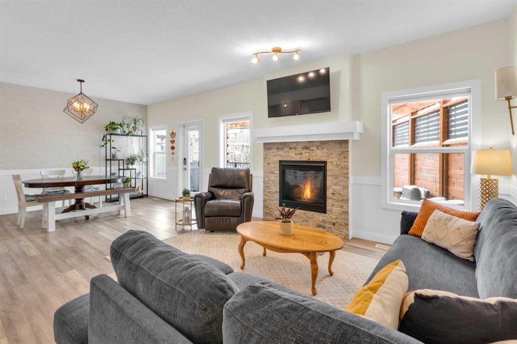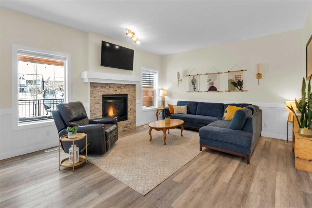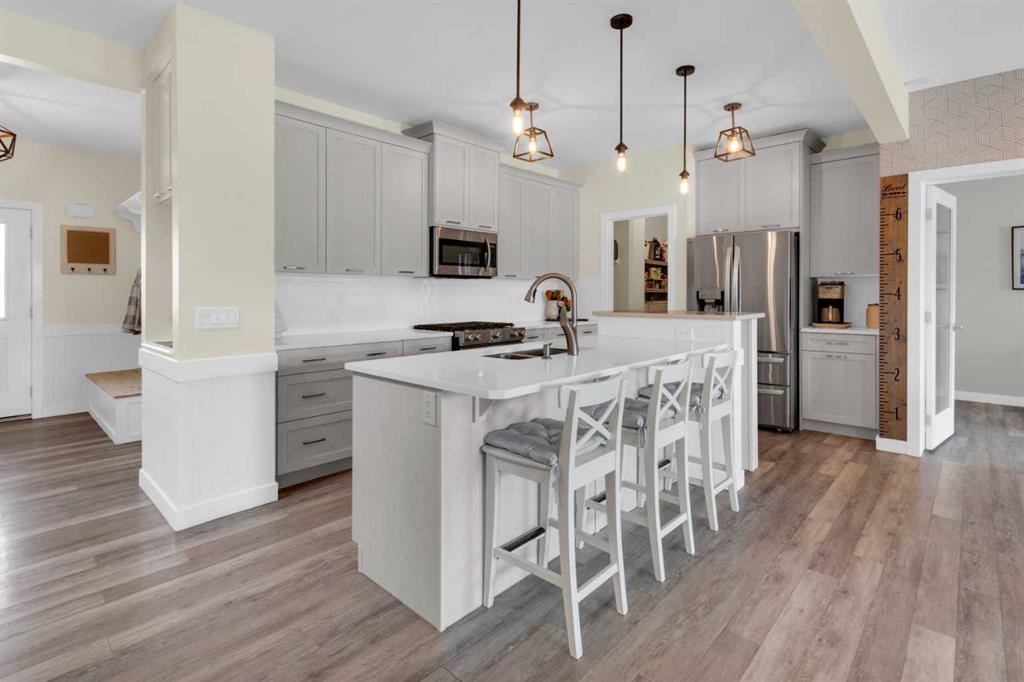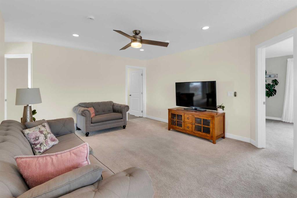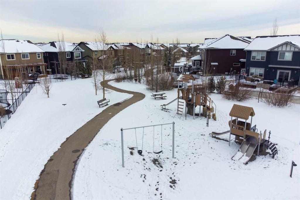 Beautifully designed and highly functional 7 bedroom, 4 bathroom 2 storey home with over 3400 sf ft of developed living space. Open-concept main floor features 9″ ceilings, a bright foyer with built in bench and a walk-in closet, 2 pc powder room, and a gorgeous, spacious kitchen with quartz countertops, large island, and huge pantry. Watch your children play in the park while making dinner. The cozy living room features a gas fireplace, while the spacious dining area opens onto a west facing deck ideal for relaxing and entertaining. A versatile main floor bedroom adds flexibility for guests or a home office. Upstairs you will find a bright and airy bonus room along with four generous bedrooms. The primary bedroom offers a vaulted ceiling, a luxurious 5-piece ensuite with dual sinks, quarts counters and a large walk-in closet. A well designed laundry room comes with cabinetry and counter space. Additional 4 piece bathroom completes the upper level. The fully developed lover level is thoughtfully designed with soundproofed 9′ ceilings, core insulated subfloor, CAT 5, large windows, family room, additional 2 bedrooms, office, another 4 pc bathroom, utility room, water softener central air conditioning. The double attached garage is equipped with a radiant tube heater and 240 wiring and ample room for parking and optional for many more. Outside, enjoy the beautifully landscaped yard, with underground sprinkler system, huge deck with pergola and a fully fenced backyard that backs onto a park with playground, walking pathway just 100 yards to canals. Explore over 10 km of scenic pathways, charming bridges, and year-round activities including biking, paddleboarding in the summer or skating in the winter. Ideally located within walking distance to Ralph McCall Elementary School and CW Perry Middle School, both just two blooks away-this home truly offers the perfect blend of comfort, style and location.