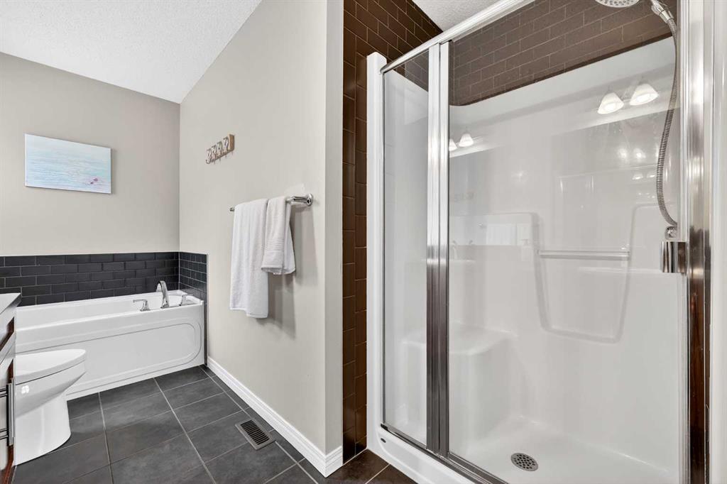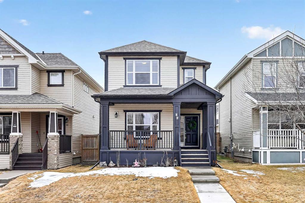 Welcome to exceptional value in Copperfield. This beautifully maintained single-family home offers outstanding curb appeal, highlighted by a charming covered front porch. Step inside to a bright, open-concept main floor filled with natural light and finished with gleaming hardwood throughout. The inviting living room features a cozy gas fireplace and flows seamlessly into the dining area and kitchen—perfect for both everyday living and entertaining. The kitchen overlooks the sunny, south-facing backyard, complete with a deck and hot tub, creating an ideal outdoor retreat. Stainless steel appliances and a spacious pantry add both style and functionality. The main floor also includes a dedicated office space—perfect for working from home—as well as a convenient two-piece powder room. Upstairs, the spacious primary suite comfortably accommodates a king-sized bed and features a walk-in closet and a well-appointed ensuite with dual vanities, a soaker tub, and a separate shower. Two additional bedrooms, a full bathroom, and the convenience of an upper-level laundry room complete the upper floor. The home also features central air conditioning. The unfinished basement offers excellent potential, with a rough-in for a future bathroom—ready for your personal touch. Ideally located just minutes from Deerfoot Trail and Stoney Trail, and close to shopping, dining, and amenities. A rear parking pad provides space for a future garage. Call your favourite realtor today to schedule a showing.
