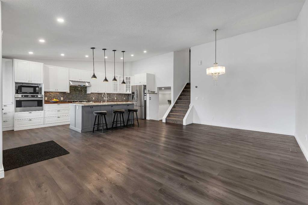 Fantastic opportunity to own a detached air conditioned home in the heart of MacEwan, featuring a sunny west-facing backyard and located kitty-corner to a large green space and playground just across the back alley. Renovations have been started, now it’s your chance to complete the dream and add your own finishing touches. The updates begin the moment you arrive, with an inviting multi-level front deck and beautifully added side yard space enhancing the home’s curb appeal. Step inside to soaring vaulted ceilings and a stunning, fully upgraded kitchen that spans the length of the room. No detail has been overlooked: gleaming white cabinetry with tiled backsplash, a double-depth gray accent island with extra storage and seating, butcher block countertops complemented by stone on the island, and thoughtful extras like a garbage/recycling drawer, under counter lighting, pot filler, soap dispenser, and lazy Susan. The impressive six-piece stainless steel appliance package includes a 6-burner gas stove with oven, separate electric wall oven, microwave, refrigerator with water and ice dispenser, built-in dishwasher, and hood fan. Rich laminate flooring flows through the open dining and living area, adding warmth and drama to the space. Upstairs, the primary bedroom offers a private 4-piece ensuite and an organized closet system. Two additional bedrooms and another 4-piece bath complete this level. The third walk-out level features a spacious family room with a cozy wood-burning fireplace and an additional 3-piece bath, perfect for entertaining or relaxing. The fourth level provides a versatile recreation, hobby, or office space, along with a sizeable laundry room (check out the washing machine with its separate delicate wash drawer). Thanks to the home’s unique design, you’ll also appreciate the expansive crawl space storage. Outside, enjoy an oversized double detached garage plus a separately gated RV parking stall, while still maintaining generous yard space. With easy access to the green space and playground just across the alley, this property combines location, potential, and lifestyle. A rare opportunity to finish a beautifully started renovation and make it truly your own.