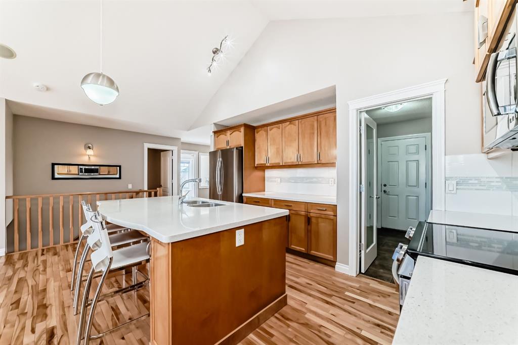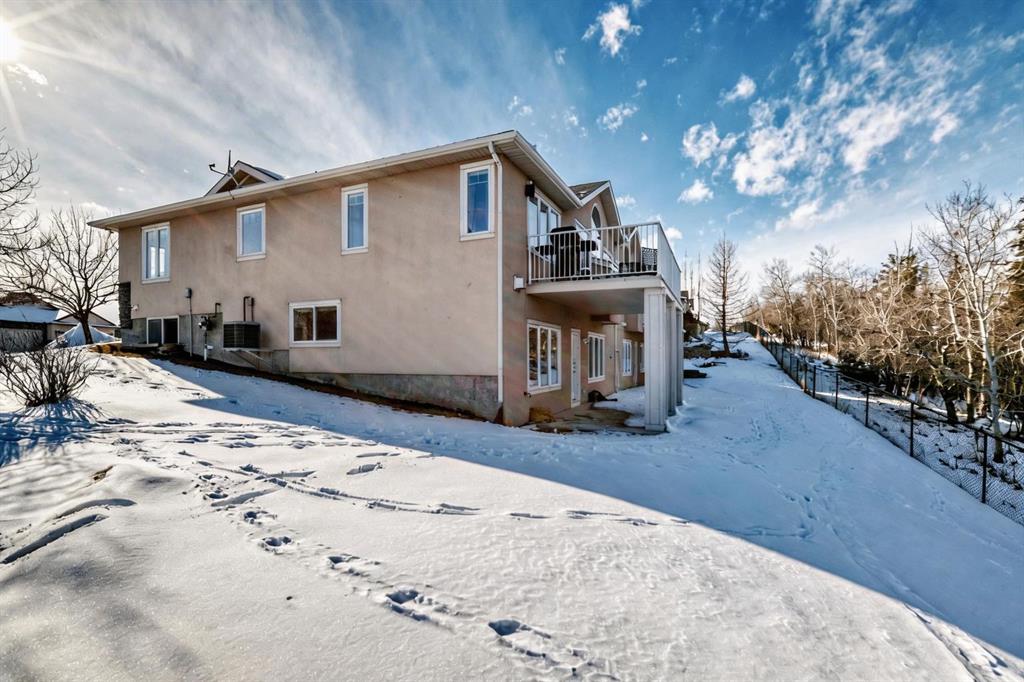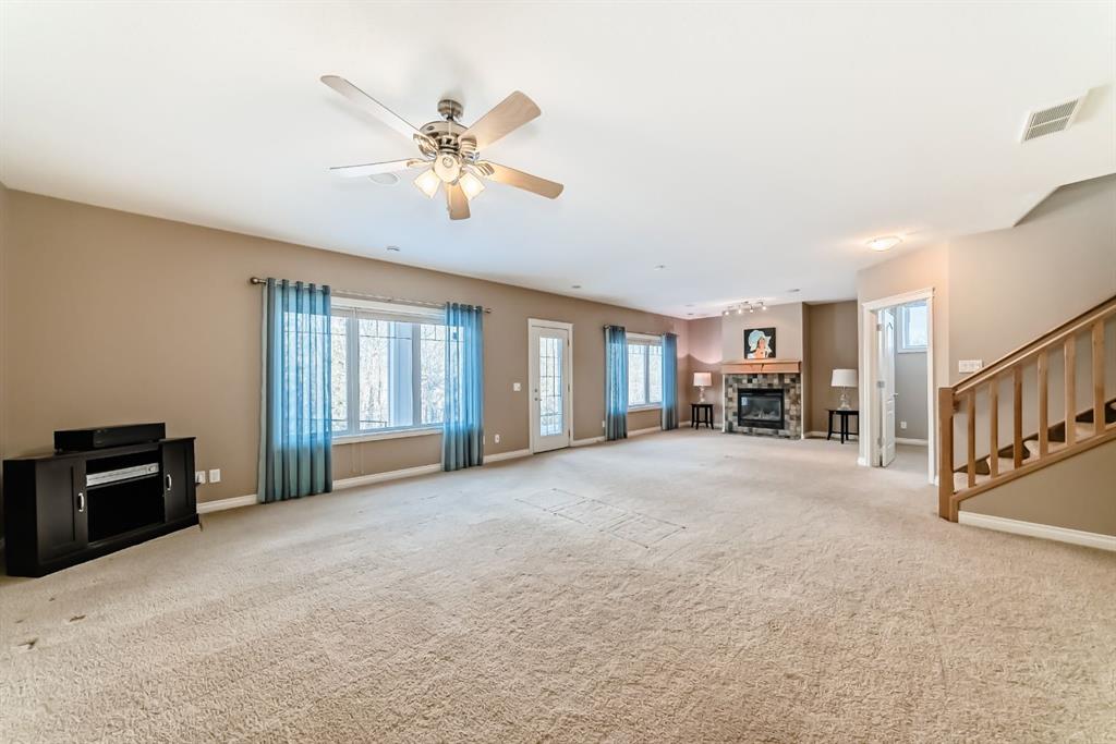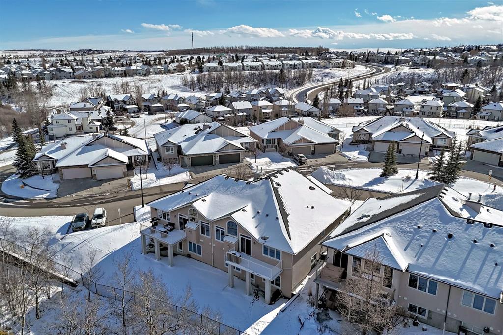 BEAUTIFUL ESTATE VILLA | FULLY DEVELOPED WALK-OUT BASEMENT | IN-FLOOR HEAT | UPGRADES THROUGHOUT | BACKS ONTO SHEEP RIVER VALLEY | Rarely does a home like this come available!!! Tucked away in a quiet & tranquil location, this home is fabulous…showcasing a dramatic vaulted ceiling in a spacious & open floor plan with large windows allowing for an abundance of natural light & breathtaking views of the woods of Sheep River Valley! The main level features a terrific layout that is not only stylish but also functional…the kitchen is beautiful with white quartz countertops, a huge island with undermount sink, stainless steel appliances including a brand new stove & a walk-through pantry. The kitchen overlooks the open dining area & huge living room with gas fireplace…perfect for entertaining! From the living room, the patio doors open to the deck that looks out onto the woods…your oasis to enjoy Mother Nature! The Master bedroom is generous in size, has custom window coverings & a renovated 5pc ensuite with dual sinks, jetted tub, separate shower & walk-in closet. Completing this main level is a sunny den (with closet), large tiled foyer, laundry & mudroom. The walkout basement, with in-floor heat throughout, is fully finished…there is a huge family/rec room with gas fireplace & fantastic wet bar…spacious enough to allow for a full games area and a separate family/sitting area. There are 2 additional bedrooms (both large is size), a 4pc bathroom & additional storage. From the family room you have direct access to the covered patio. EXTRA FEATURES: Newly repainted, in-ceiling speakers, high ceilings, central A/C, low condo fees, and more! This home is available for a quick possession! Don’t let this incredible opportunity pass you by!