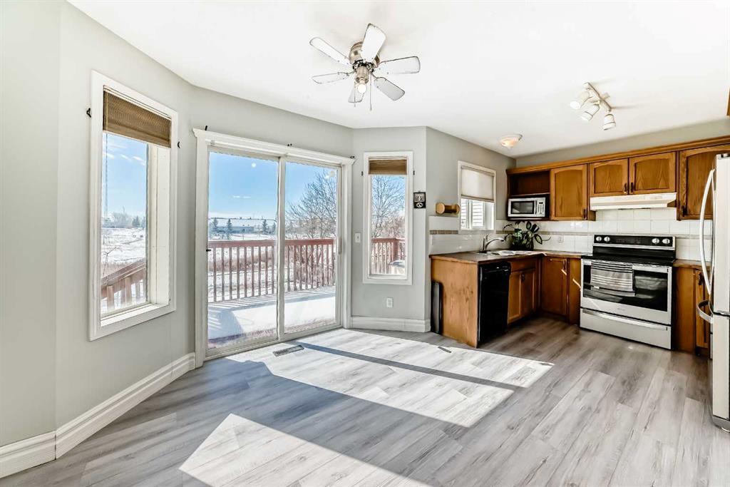 BACKING ONTO NOSE CREEK PRESERVE – 4 BEDROOMS – FULLY FINISHED – DOUBLE ATTACHED GARAGE. Stylish and spacious, all with a perfect location— Note: carpet will be changed with negotiated offer & buyer can choose their color/type… welcome to your modern sanctuary. Perfectly situated in the highly desired community of Silver Creek, backing directly onto Nose Creek Preserve! This upgraded home blends sleek design elements with everyday functionality across more than 1,900 sq ft of developed space. Tasteful modern upgrades, including brand new luxury laminate flooring that elevate your experience. Just off the front door find your access to your attached double garage, making parking effortless year-round, plus extra storage or a workshop. Then inside You’re greeted by a flood of natural light through large windows, accentuating the open layout and stylish finishes. The main floor is all about connection and comfort. The inviting living room, anchored by a cozy gas fireplace, is made for everything from lazy Sundays to lively gatherings. Rich laminate flooring adds a contemporary touch, while the expansive kitchen steals the show with sleek stainless steel appliances that tie the space together beautifully. A generous dining area flows seamlessly to the backyard, where your south-facing, sun-drenched deck and patio invite you to enjoy morning coffees, summer BBQs, and effortless outdoor living with a beautiful view. Upstairs, the large primary suite offers a peaceful retreat with its own elegant 4pc ensuite. Two additional bedrooms and another 4pc Jack and Jill style bathroom provide plenty of room for family, guests, or a home office setup. The fully finished basement is as versatile as it is cozy — the perfect spot for movie nights, a kids’ zone, or a quiet workspace — plus a spacious fourth bedroom for added flexibility. Located in the vibrant, family-friendly community of Silver Creek, you’re just steps from parks, playgrounds, walking and biking paths, schools, transit, and all the shopping and amenities that NW Airdrie has to offer. NOTE: carpets on the upper level and basement need replacing & can be negotiated into offer so buyer can choose their color/type or make a deal without the carpet replacement. Book your private viewing today while it lasts!