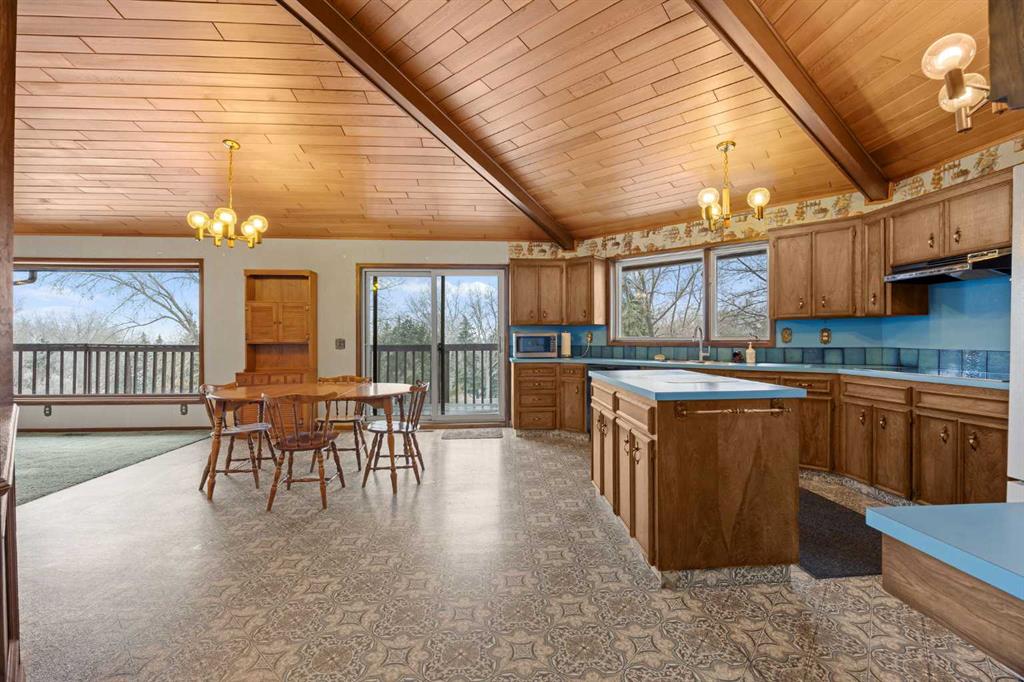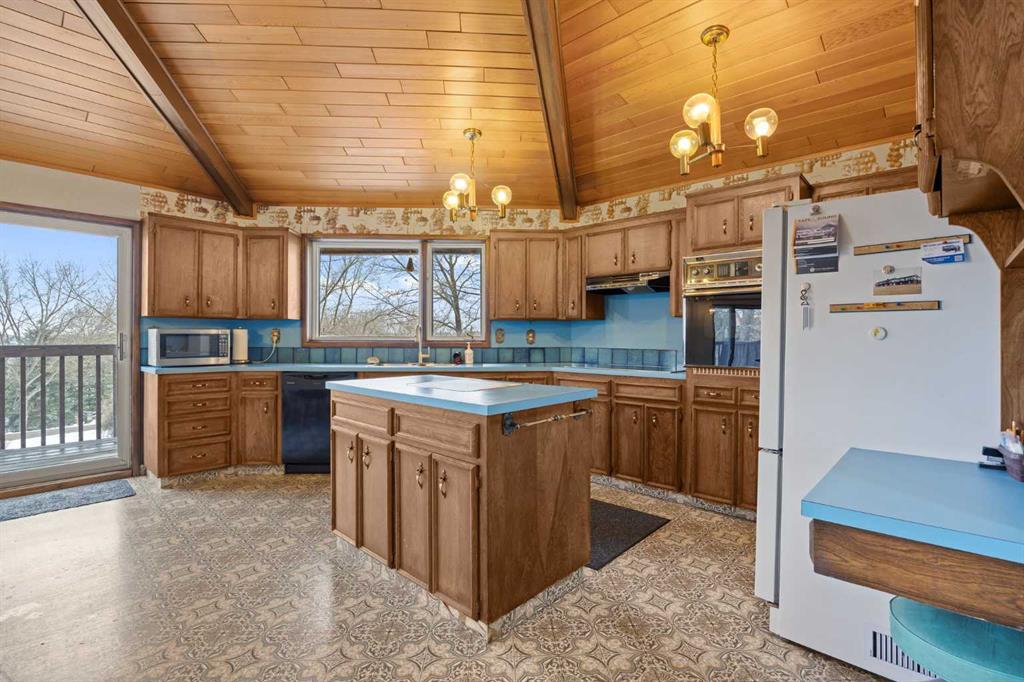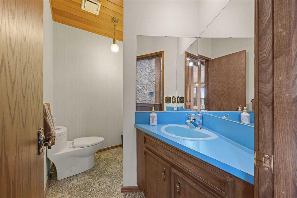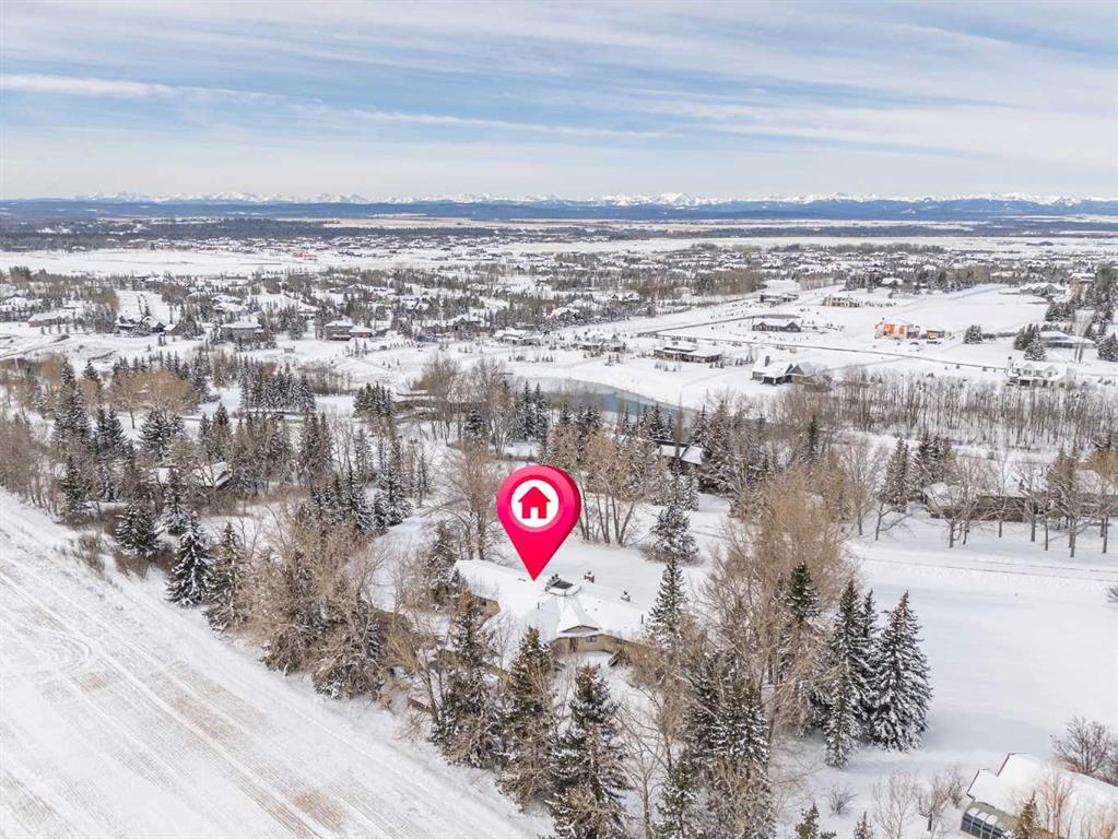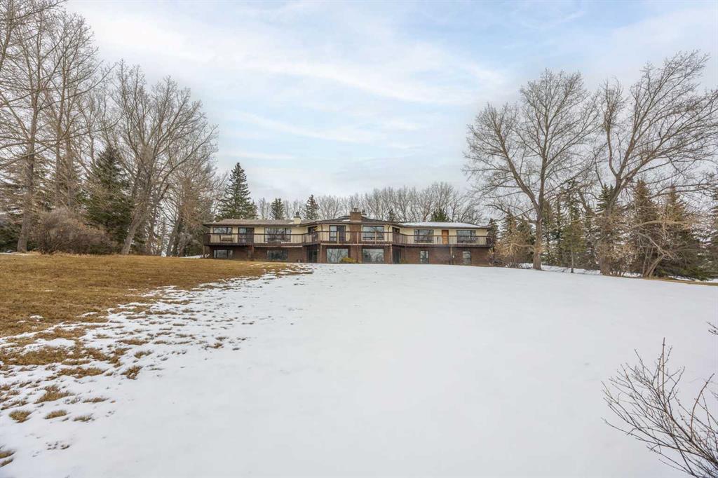 **OPEN HOUSE – SATURDAY 11-1pm** Perfectly positioned on one of Central Springbank’s most desirable streets, this property is offered for sale for the first time. Set on 2.13 hillside acres, it offers expansive west-facing views of the Rocky Mountain range, stunning sunsets, and starry skies at night. The home itself is suited for either a Buyer looking to undertake a renovation that can marry its unique and functional design, or a Buyer seeking a mature build site for a new custom home. This walkout bungalow offers over 3,450 square feet above grade, over 3,350 additional square feet in the walkout lower level, and an oversized 3-car attached garage of over 900 square feet, complete with a suspended gas heater. The main home features 6 bedrooms, 2 full bathrooms, and a powder room, with the upper level offering 3 bedrooms, a formal dining room, kitchen, and living room all anchored around a conversation pit with natural-stone fireplace. The lower level of the main home includes 3 additional bedrooms, a full bathroom, rec space, and more. The private north-wing in-law/nanny suite offers excellent flexibility for multigenerational living, with 1 bedroom and 1 full bathroom above grade, plus 2 additional bedrooms and 1 full bathroom on the lower level. Three of the home’s four wood-burning fireplaces feature natural stone and gas assist. Listed at land value, this is a rare opportunity to buy in Central Springbank where you are only 5 minutes to Calgary’s westside amenities, the Ring Road, and schools, or 45 minutes to Canmore. It is extremely rare to find a property like this with no main-road noise exposure, on a no-through street, with trees, privacy, and mountain views.