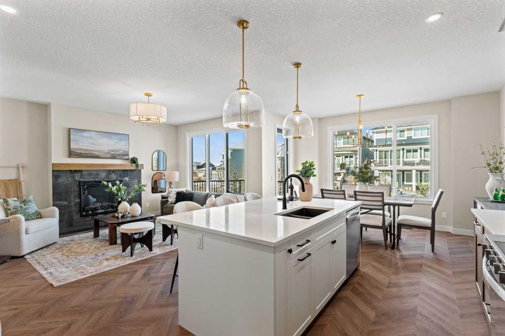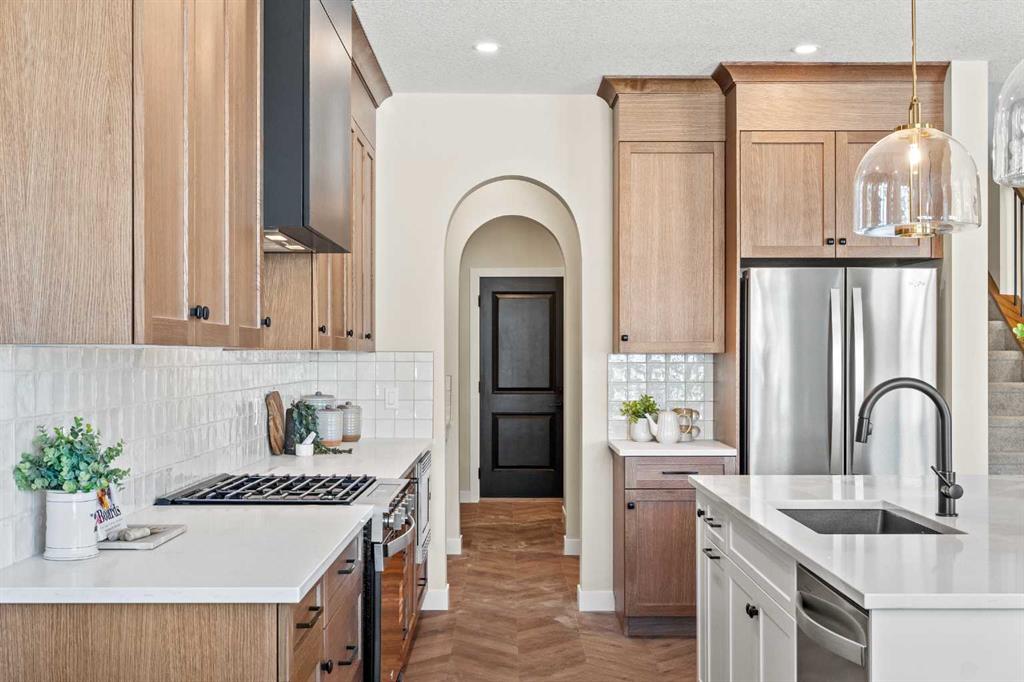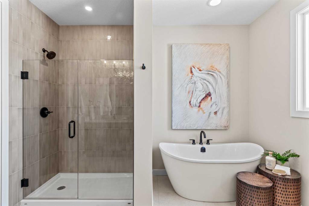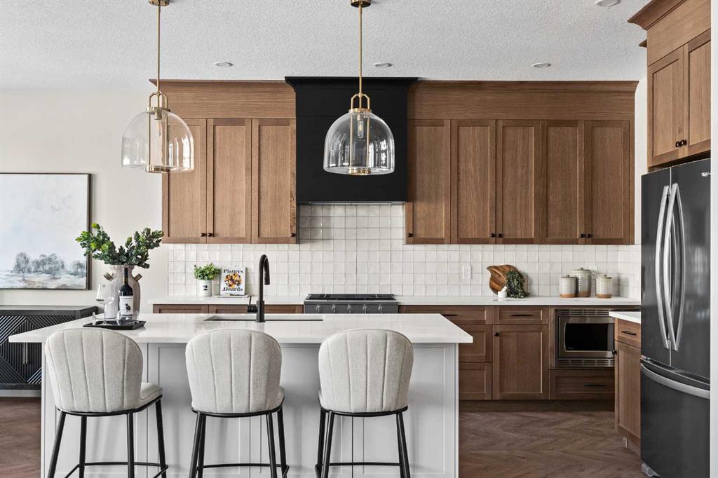 Welcome to Sunset Ridge, one of Cochrane’s most desirable communities. Built by Aspen Creek Designer Homes, Cochrane’s Builder of the Year two years in a row, this newly constructed 2-storey walkout showcases the popular Shelby model. Backing onto a scenic walking path connecting to downtown and the Bow River, the west-facing backyard is ideal for enjoying long summer evenings from the deck. The bright, open-concept main floor features large windows, stylish finishes, and a stunning kitchen with quartz countertops, custom cabinetry, a spacious island with breakfast bar, and a walk-through pantry. A versatile flex space offers the perfect spot for a home office or play area. Upstairs includes a generous bonus room, convenient laundry, and a beautiful primary retreat with sweeping views. The ensuite boasts dual quartz vanities, a soaker tub, tiled shower, and walk-in closet with built-ins. The walkout basement is ready for your personal design touches.