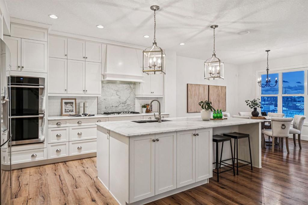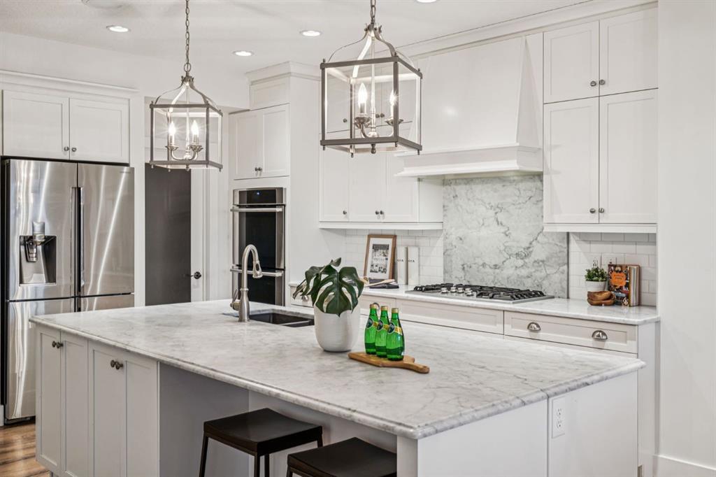 Step inside to discover a home defined by thoughtful upgrades and refined finishes throughout. A spacious entryway with added storage leads into a bright, OPEN-CONCEPT KITCHEN and living area designed to impress. The kitchen features MARBLE COUNTERTOPS, upgraded appliances, double wall ovens, a gas cooktop, and under-cabinet lighting. The living room is anchored by a GAS FIREPLACE with an elegant feature wall.