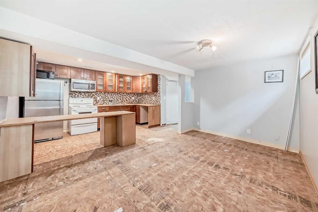 The property also includes a separate entrance leading to a partially developed basement. With a kitchen setup already in place, a two-bedroom layout, and a 3-piece bathroom, the lower level presents an excellent opportunity for a future suite (subject to City of Calgary approval). While the basement requires significant TLC, the groundwork is there for those ready to bring their vision to life.