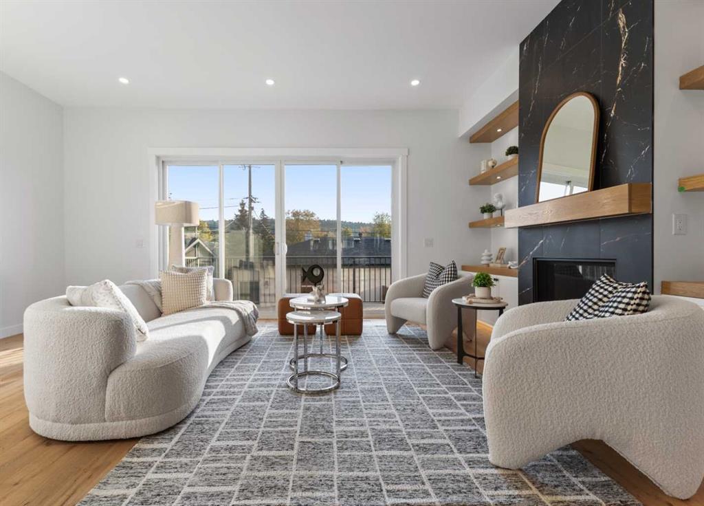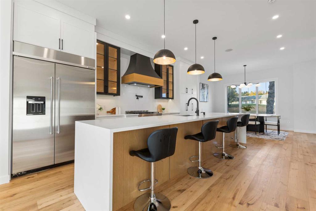 This BRAND NEW, MOVE-IN READY infill in MONTGOMERY checks all the boxes for stylish, functional inner-city living—with the added bonus of a fully private 1-BED WALKOUT SUITE (approved with permits and subject to final inspection). Whether you’re looking for extra income, space for guests, or a little more flexibility in your day-to-day, this one delivers. Step inside to a bright, welcoming foyer with a full coat closet—simple, clean, and easy to come home to. At the front of the home, the dining area offers space for a full-size table and flows naturally into the heart of the home: the kitchen. The kitchen brings a timeless feel with classic SHAKER-STYLE CABINETS, a custom-built hood fan with oak accents, glass display shelves with LED lighting, and a quartz-topped island with waterfall edges. You’ll also find an upgraded KITCHENAID APPLIANCE PACKAGE, including a gas range with pot filler and a large KitchenAid French door fridge. There’s also a convenient coffee or beverage station, complete with room for a beverage fridge. The living room is warm and elevated, featuring an INSET GAS FIREPLACE with full-height tile surround and built-in display shelving with closed cabinetry for extra storage. Natural light pours in through large rear sliders, leading out to the sunny SOUTHWEST-facing back deck with privacy screens already installed. Off the rear entry, the mudroom includes built-in shelving, a bench, and cubbies, with access to the powder room—private, polished, and finished with a skirted quartz counter and decorative framed mirror. Upstairs, the primary suite is a calm retreat with a tray ceiling, spacious walk-in closet, and a stunning ensuite that includes a freestanding soaker tub, walk-in shower with DUAL RAIN HEADS, and double vanity. Two more bedrooms, a full bath with attractive STACKED HORIZONTAL TILE, and a laundry room with designer tile flooring complete the upper level. Downstairs, the WALKOUT SUITE (approved, subject to final inspection) is bright, smartly designed, and full of quality finishes. The living room has a BUILT-IN FLOATING MEDIA CENTRE, and the full kitchen mirrors the same modern style as upstairs, with warm oak flat panel cabinetry and quartz countertop. There’s a full bathroom, stacked laundry, and a large bedroom with walk-in closet—plus its own separate entry for total independence. Montgomery offers easy access to main routes like 16th Ave and Memorial Drive while keeping you steps from nature. Walk to Shouldice Park, Bowmont Park, and the Bow River Pathway system for daily runs, dog walks, or weekend bike rides. You’re minutes from Montalcino Ristorante, NOtaBLE, and lots of local coffee shops, restaurants, and bars for food and coffee favoUrites. Groceries, schools, Market Mall, U of C, and Foothills & Children’s Hospitals are all close by, making this one of Calgary’s most livable and up-and-coming inner-city communities. Call today to view! *Photos from Show Suite