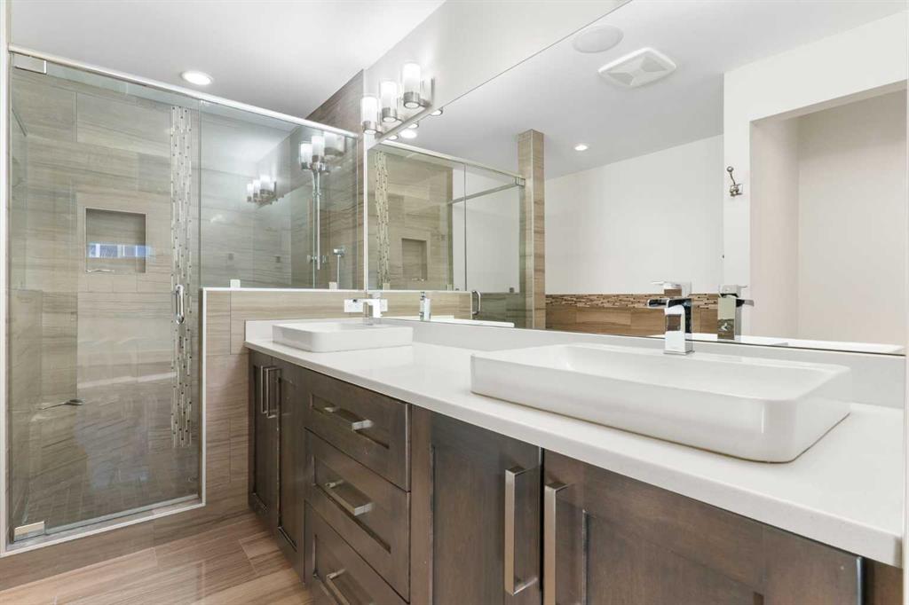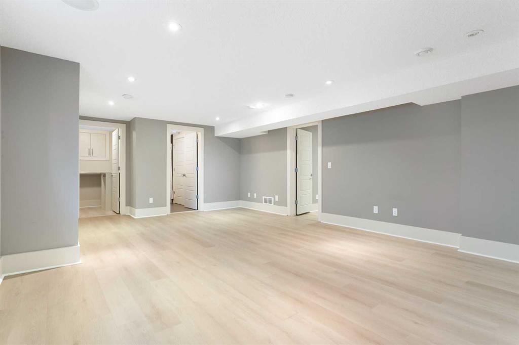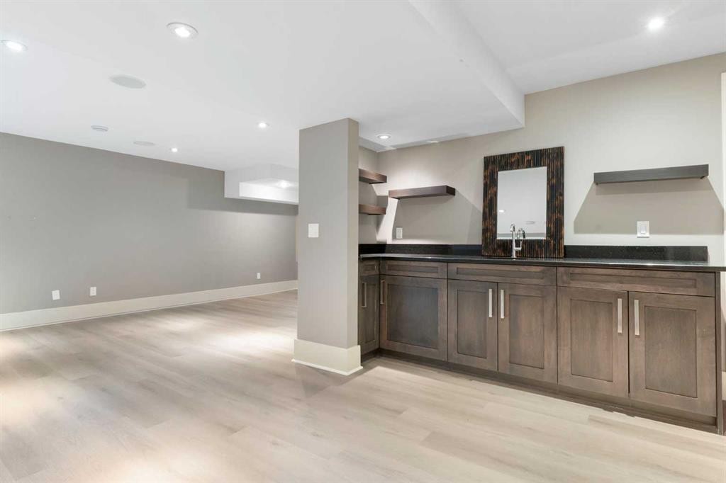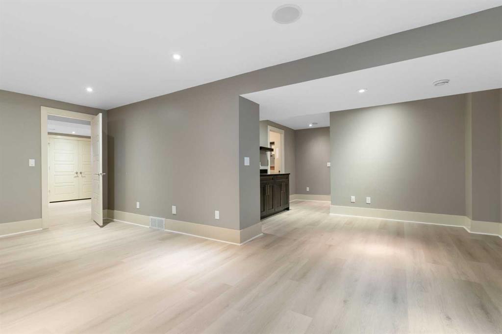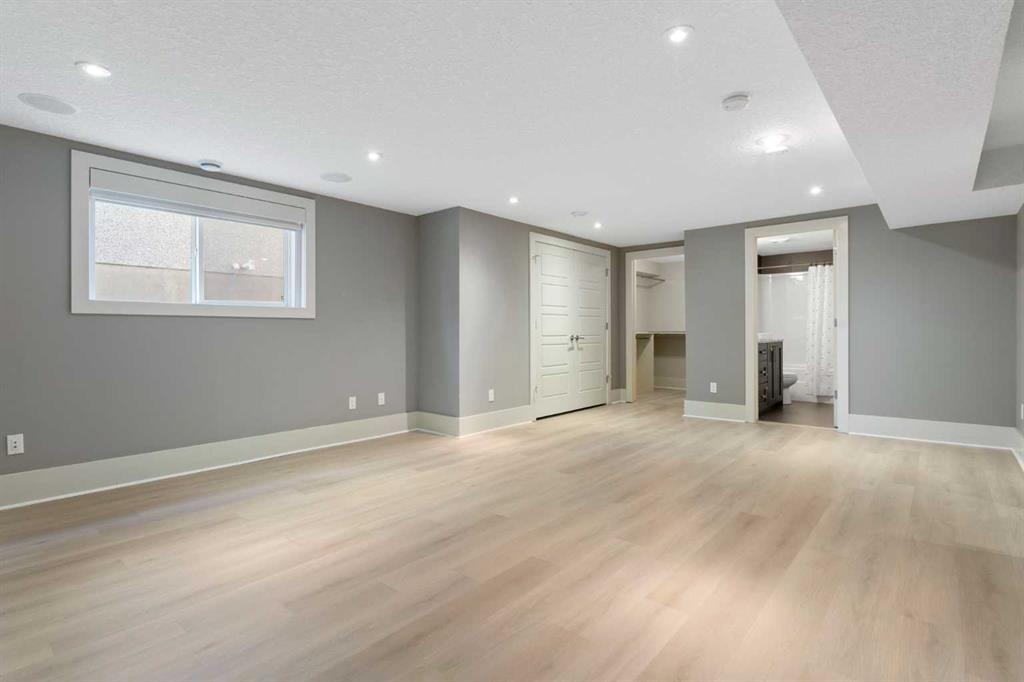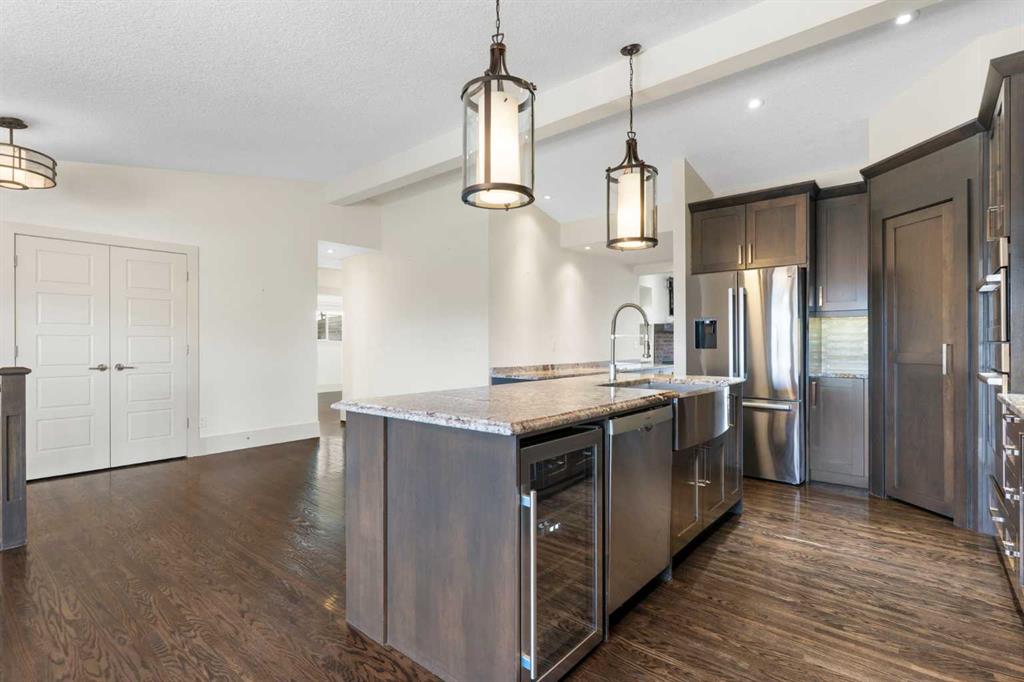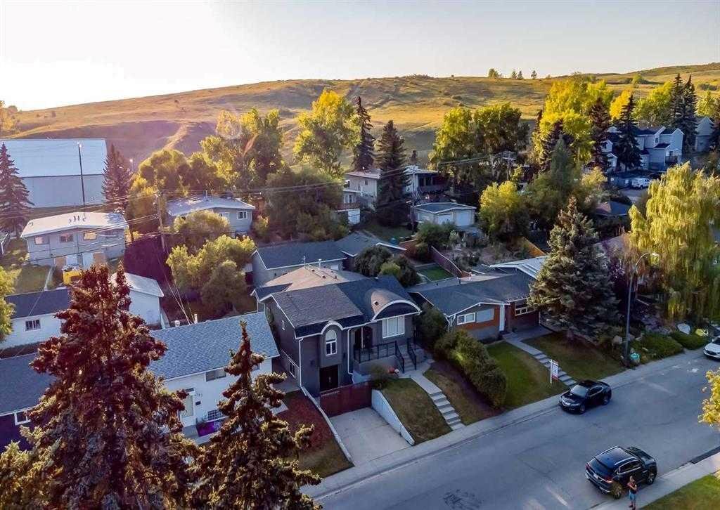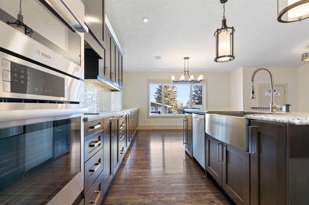 Welcome to this beautifully updated bungalow offers over 2800sqft of thoughtfully designed living space, making it ideal for families of all stages. Conveniently located only minutes from downtown, this home is surrounded by green spaces & parks. Renovation of this residence to an exceptional standard, with craftsmanship and attention to detail evident throughout. Walls are newly painted to give it a modern fresh look. From the moment you step inside, you’re welcomed by dramatic vaulted ceilings and a bright, open floor plan that creates an immediate sense of space. The expansive custom kitchen anchors the home, featuring rich espresso-toned maple cabinetry, custom roll-out drawer inserts added , a large central island designed for gatherings, generous pantry storage, newly upgraded stainless steel appliances, and an extended serving counter with built-in cabinetry—perfect for entertaining and everyday use. Unlike many bungalows, this home offers 3 bedrooms and 3 bathrooms on the main level, including two bedrooms with private en-suite baths—a rare and highly sought-after layout. The fully finished walkout basement adds even more flexibility, with a spacious 4th bedroom that can easily serve as a home office or guest suite. With its own entrance, dual closets, and adjacent bathroom, this space is ideal for those seeking privacy or a work-from-home setup. A large laundry room on this level includes abundant cabinetry and counter space for added convenience. This Home is also equipped with central air-conditioning for those hot summer days. At the rear of the property, the oversized 3 car garage is a standout feature, offering room for larger vehicles , Additional highlights include a durable acrylic stucco exterior, upgraded 200-amp electrical service, an energy-efficient furnace, and updated windows throughout the home. Custom blinds (dining room and patio door blinds are motorized), with blackout blinds in bedrooms – New fireplace unit and brick masonry surround (2025) . The inviting front courtyard and secondary parking pad—providing access to the walkout level—add both charm and practicality. Inside, custom cabinetry valued at over $80,000 is showcased throughout the home, paired seamlessly with granite countertops. Vaulted ceilings and site-finished hardwood floors contribute to a bright, airy atmosphere, while upscale finishes elevate the living experience. The primary en-suite features a spa-inspired shower with body sprays and a deep soaker tub, while two fireplaces add warmth and character to the home. Enjoy scenic views toward downtown, adding yet another layer of appeal. The surrounding area offers outstanding amenities, including the nearby Calgary Winter Club, Nature lovers will appreciate the close proximity to Nose Hill Park, one of Calgary’s largest natural reserves. With downtown Calgary and the University of Calgary both just 15 minutes away, this home delivers an exceptional balance of location, comfort, and lifestyle.