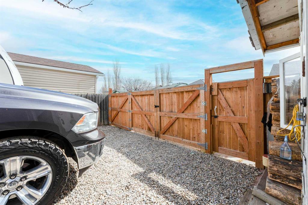 Step inside to 12-FOOT VAULTED CEILINGS and large BAY WINDOWS that create a bright, open main living space, complete with tiled flooring for easy maintenance. The kitchen blends everyday function with style, featuring GRANITE COUNTERTOPS, a GAS STOVE, CHIMNEY HOOD FAN, dishwasher, and microwave—perfect for both family meals and entertaining. The dining area completes the main level and offers a side door leading to the LARGE BALCONY and FULLY FENCED BACKYARD, with RV parking and additional space for another vehicle.