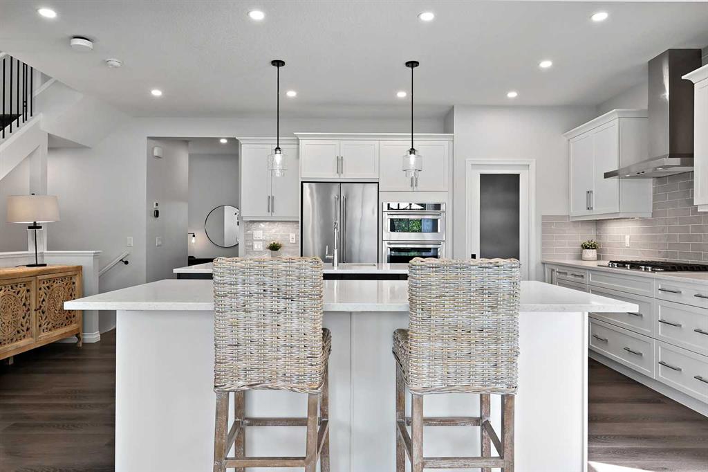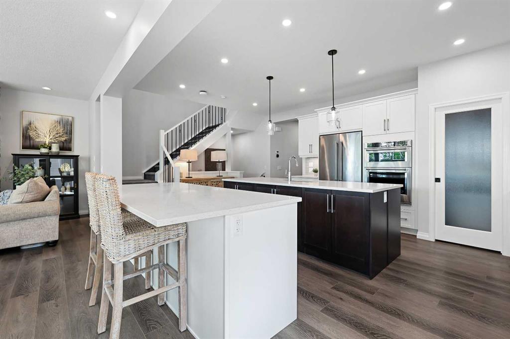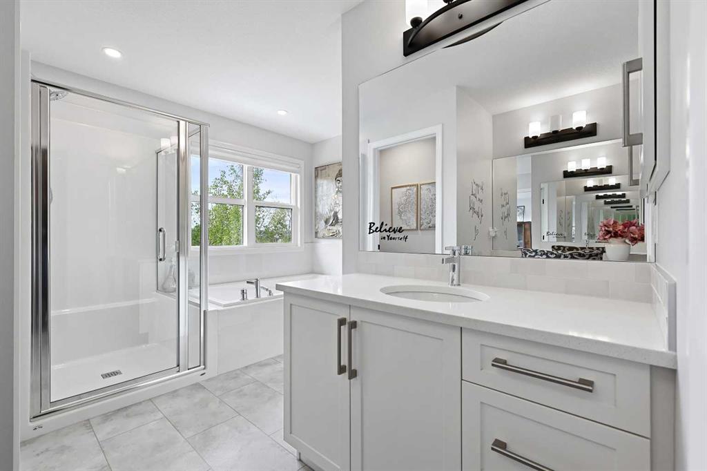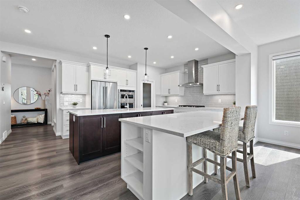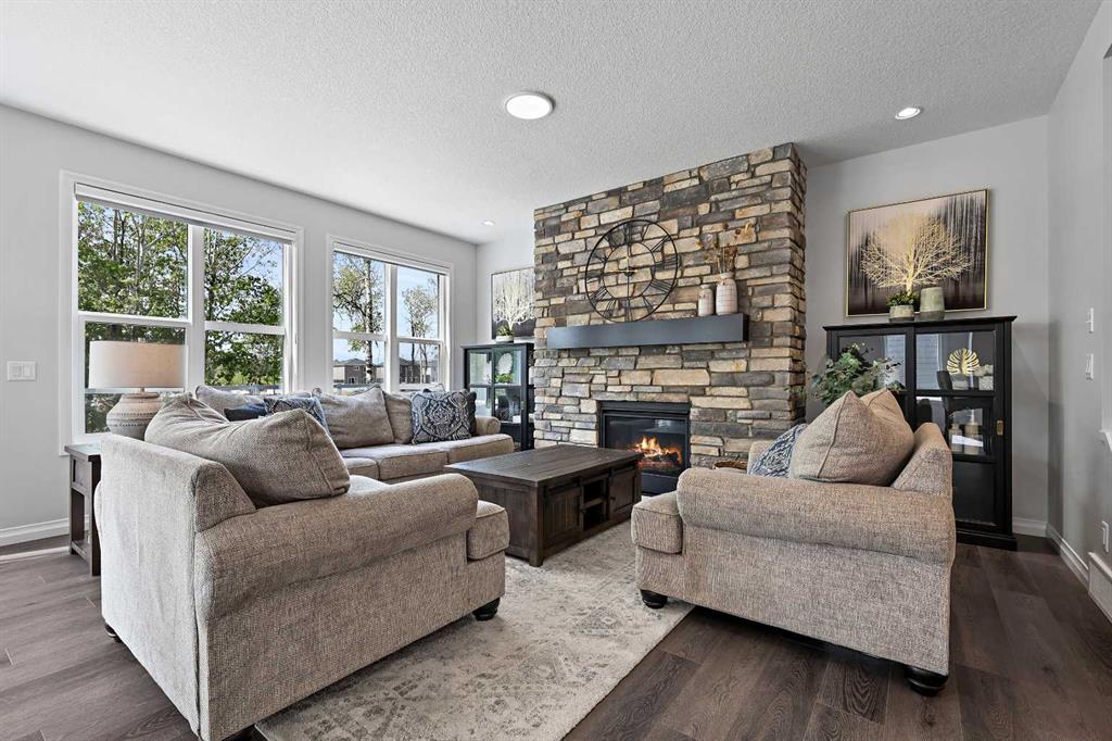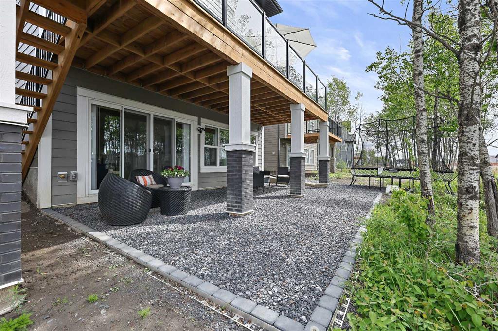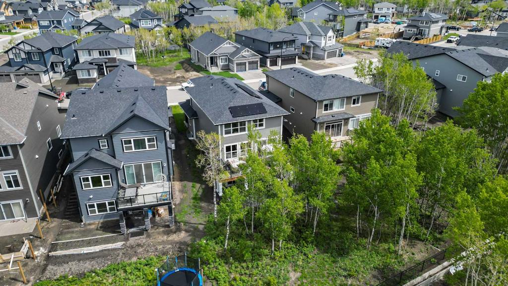 Welcome to your private retreat! This beautifully designed fully finished walk-out home offers elevated living surrounded by natural beauty. Situated on a spacious, 7071 sq ft, tree-lined lot, this property blends refined comfort with the tranquility of a forested setting. Step inside to discover a thoughtfully crafted floor plan with expansive windows that flood the home with natural light and offer picturesque views of the large, nature inspired yard. Enjoy seamless indoor-outdoor living with direct walk-out access to your backyard oasis—perfect for entertaining or quiet evenings under the stars. Upstairs, the elevated main living area boasts soaring ceilings, elegant finishes, and an inviting open-concept layout ideal for both relaxation and hosting. The chef’s kitchen flows effortlessly into a cozy living room with a fireplace and a dining area with forest views and sliding patio doors to your 26ft deck. The ease of entertaining blends naturally from the expansive prep island to the extended flush eating bar showcasing the Ivory Coast Quarts counter tops, ample cabinetry with a 36″ KitchenAid gas cooktop,Built-in wall oven with microwave combo,dishwasher with stainless steel interior,counter depth refrigerator with internal water and ice and a Venmar Chef 36″ designer hood fan. The walk-in pantry blends seamlessly with the kitchen area while the upgraded black matt hardware throughout adds a distinct style and modern feeling. Truly a home that features an urban decor while maintaining a classic and timeless ambiance. The floor to ceiling Kingsman feature fireplace with stone surround brings you back to the woods feel while the abundance of windows added to this home and sleek selections offer you a hotel inspired stay. Retreat to a spacious primary suite featuring a spa-like ensuite including dual vanities,make-up niche, over sized bath,stand alone shower and huge walk-in closet that connects to the 2nd floor laundry. Additional bedrooms and centralized Bonus Room separating the the two wings for added privacy is always appreciated. Tray ceilings compliment the Primary Bedroom and Bonus Room along with double French Doors. A fully developed lower level offer room for family, guests,or home office. Dual Primary Suites are featured with each having their very own en suite and a secondary laundry room along with a cozy living room area that opens up to the back yard. For the hobbyist or car enthusiast,the triple attached garage provides ample space for vehicles,tools,and storage. Next to new, this Jayman BUILT home offers over 3500+sqft of extraordinary living space. The complete package being fully finished, walk-out, triple attached garage, Hardie Planked in Legacy Woods with an immense list of custom, chosen upgrades allowing you to move into a newer build without the wait or timeline. Located in a serene, almost finished neighborhood, yet just minutes from city amenities, this home truly offers the best of both worlds—privacy, space, and modern luxury.