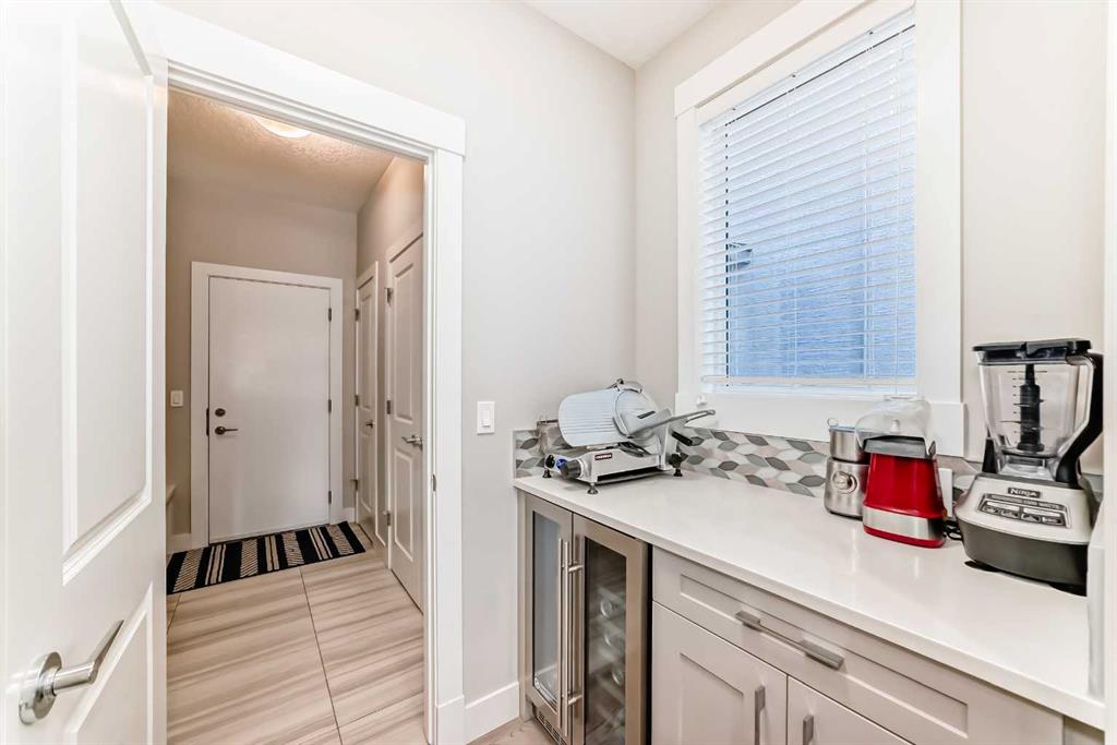 Welcome to 477 Legacy Boulevard SE, built by award-winning Morrison Homes and quietly tucked away in the heart of Legacy, one of Calgary’s most desirable master-planned communities. This 4-bedroom, 3-bathroom, two-storey home with a double front-attached garage offers the perfect blend of functionality, design, location, and uniqueness you’ve been waiting for. Don’t be deceived by the “Boulevard” in the name—this home sits within a peaceful enclave, set well back from main traffic and surrounded by quiet greenspace pathways and nearby parks, offering a calm and private setting. The main floor is designed for both everyday living and entertaining and is thoughtfully laid out for modern family life. The living room is warm and inviting, highlighted by a beautiful fireplace, while the beautifully appointed kitchen features a large quartz island with seating for four and sink convenience, an elegant multi-tonal leaf mosaic tile backsplash, built-in gas range, built-in wall microwave and oven, and a stainless steel French-door refrigerator with bottom-mount freezer. A butler’s pantry area off the kitchen provides additional counter space—ideal for infrequently used countertop appliances—along with an additional walk-in pantry for exceptional storage.