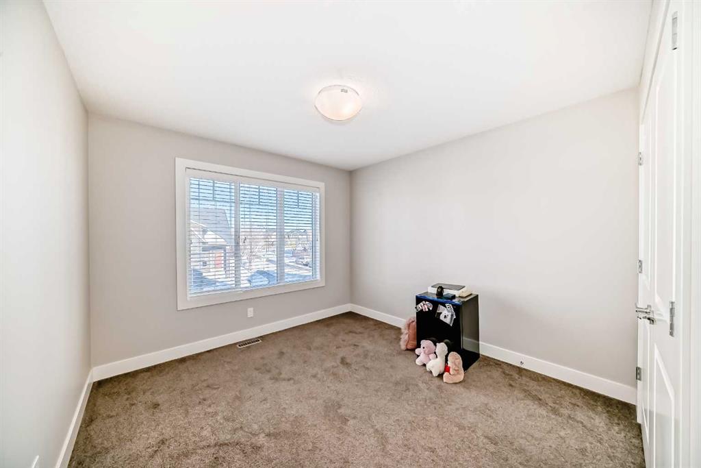 Upstairs, the home offers an exceptional family-friendly layout with four spacious bedrooms plus a bright bonus room, ideal for a media area, kids’ space, or home office. The primary bedroom is a true retreat, complete with its own cozy fireplace, a large walk-through closet with built-in shelving, and a stunning quartz and tile ensuite featuring a double vanity, separate free-standing soaker tub, and a glass-enclosed shower with built-in bench and niche. A convenient upper-level washer and dryer laundry area completes the level. The unfinished basement is ready for the new owner’s finishing touches, already equipped with egress windows and roughed-in plumbing for a future downstairs bathroom, offering excellent potential to expand your living space and add long-term value. Enjoy year-round comfort with the central A/C! With parks, pathways, schools, and amenities just minutes away—and easy access throughout the city—this home delivers an outstanding balance of privacy, comfort, and community. A rare opportunity to enjoy quiet, refined living in the very heart of Legacy.