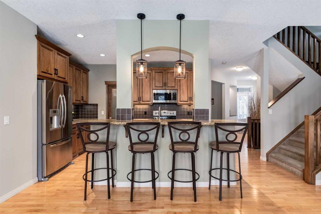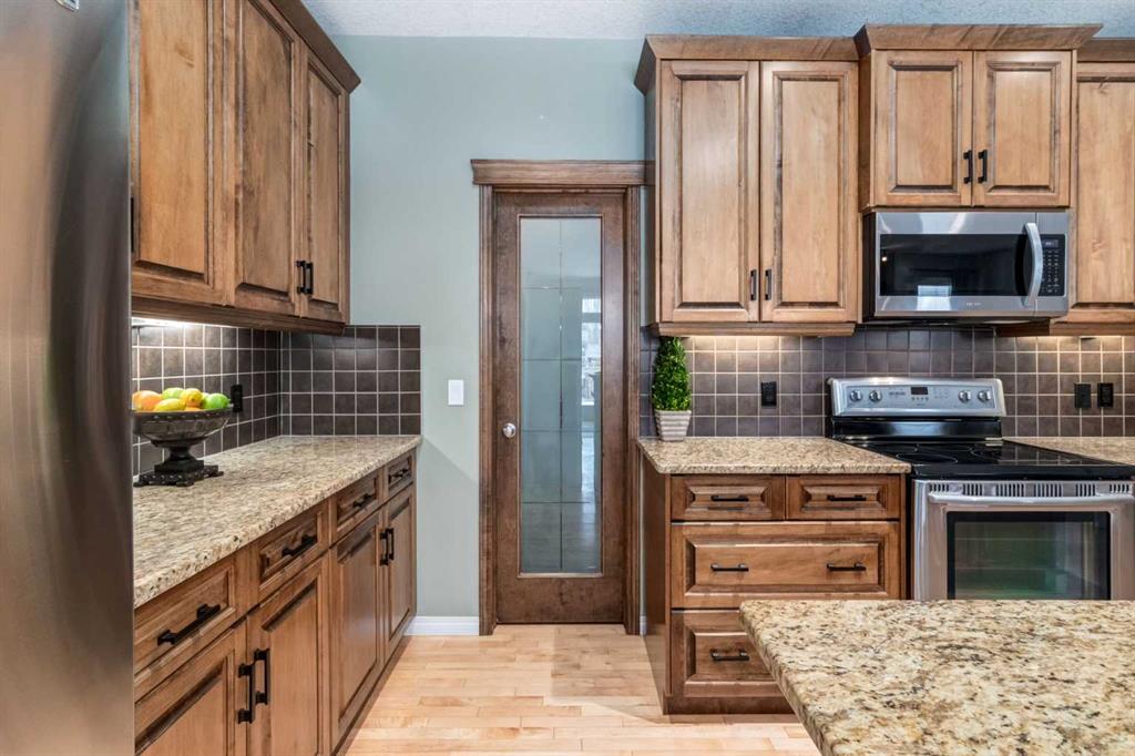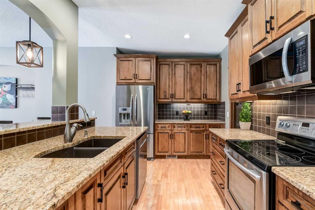 Welcome to this beautifully maintained home located on a quiet cul-de-sac in the award-winning lake community of Mahogany, perfect for young families seeking space, comfort, and convenience. Set on one of the largest pie-shaped lots in Mahogany, this property offers exceptional outdoor space rarely found in the community. The expansive backyard is fully landscaped and designed for both relaxation and practicality, featuring an irrigation system, large storage shed, and a dedicated dog run—ideal for pets, kids, and outdoor entertaining. Inside, the main floor features hardwood and tile flooring throughout, creating a clean and durable living space. The inviting living room is centered around a cozy gas fireplace, while the upgraded kitchen showcases full wood cabinet doors, granite countertops, and walk-in pantry — perfect for hosting family and friends. Upstairs, the spacious master bedroom includes an ensuite that features a double vanity and jetted soaker tub, and a large WIC w/ a built-in closet organizer, providing a comfortable and functional space to unwind. Also upstairs you’ll find a spacious bonus room, perfect for movie nights or a kids’ play area, along with two large additional bedrooms that provide plenty of room for family members. The primary suite offers a relaxing retreat complete with a jetted soaker tub and built-in closet organizer. The fully developed basement expands the living space even further with an additional bedroom, full bathroom, and a large family/recreation room, ideal for guests, teenagers, or a home gym or entertainment space. The oversized garage, extended by 4 feet, is a standout feature, complete with built-in cabinets, 220V power, a gas heater with thermostat, and extensive overhead storage shelving, making it perfect for projects, storage, or year-round parking. Several key updates have already been completed in the past year; this includes a new air conditioner, washer & dryer, and dishwasher. Located close to one of Mahogany’s main exits, this home offers the added convenience of easier access in and out of the community—an important advantage during peak traffic times. Living in Mahogany means enjoying Calgary’s largest freshwater lake, beautiful walking pathways, beaches, playgrounds, and vibrant local shops and restaurants, all within minutes of your doorstep.
