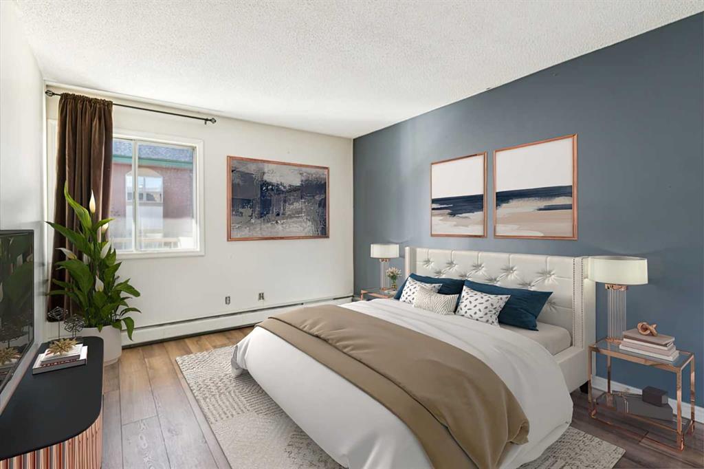 Discover exceptional value in this spacious 910 sq ft, 2nd-floor corner unit, ideally located just steps from everyday amenities and the Heritage LRT Station. With lots of windows, this home offers bright, comfortable living and a layout that feels larger than its measurements. A rare advantage in this unit is the true in-suite laundry, offering privacy and convenience that many other units simply don’t have—an upgrade that significantly enhances day-to-day living. The home features a functional kitchen with ample cabinetry, a bright dining space, and a generous living room that flows seamlessly to the large west-facing balcony, perfect for enjoying afternoon sun or additional outdoor living space. Both bedrooms are well sized, with decent storage and plenty of natural light. An updated 4pc bathroom and excellent in-suite storage round out the interior. Set in a quiet, well-cared-for complex with peaceful neighbours, this property provides a calm residential setting while remaining walkable to shops, cafés, transit, and major roadways. Offering great square footage, a premium corner placement, and rare in-suite laundry, this unit delivers comfort, convenience, and standout value in a highly accessible location.