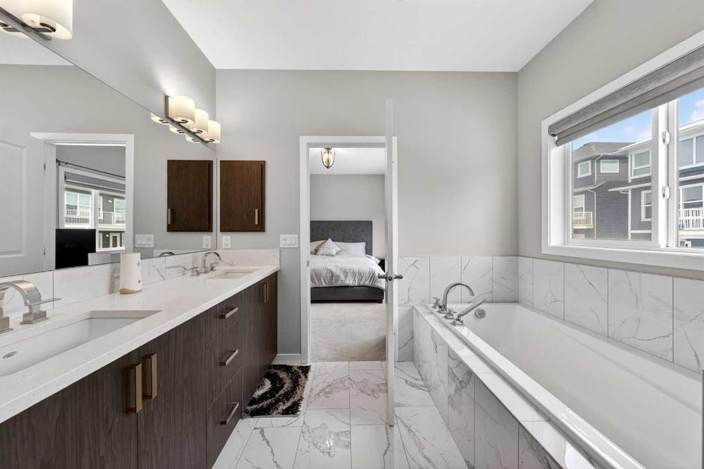The upper level features a well-proportioned Bonus room, ideal for creating your own relaxing family space. This level offers 4 bedrooms, including two with private ensuites and walk-in closets. The Primary bedroom provides a comfortable retreat with a spa-inspired 5-piece ensuite featuring a double vanity with quartz countertops, a soaker tub, and a tiled standing shower. Another bedroom, filled with natural light from three west-facing windows, also includes its own 4-piece ensuite and walk-in closet. Two additional well-sized bedrooms, a 4-piece bathroom, and a convenient upper-level Laundry room with storage space complete this floor.
