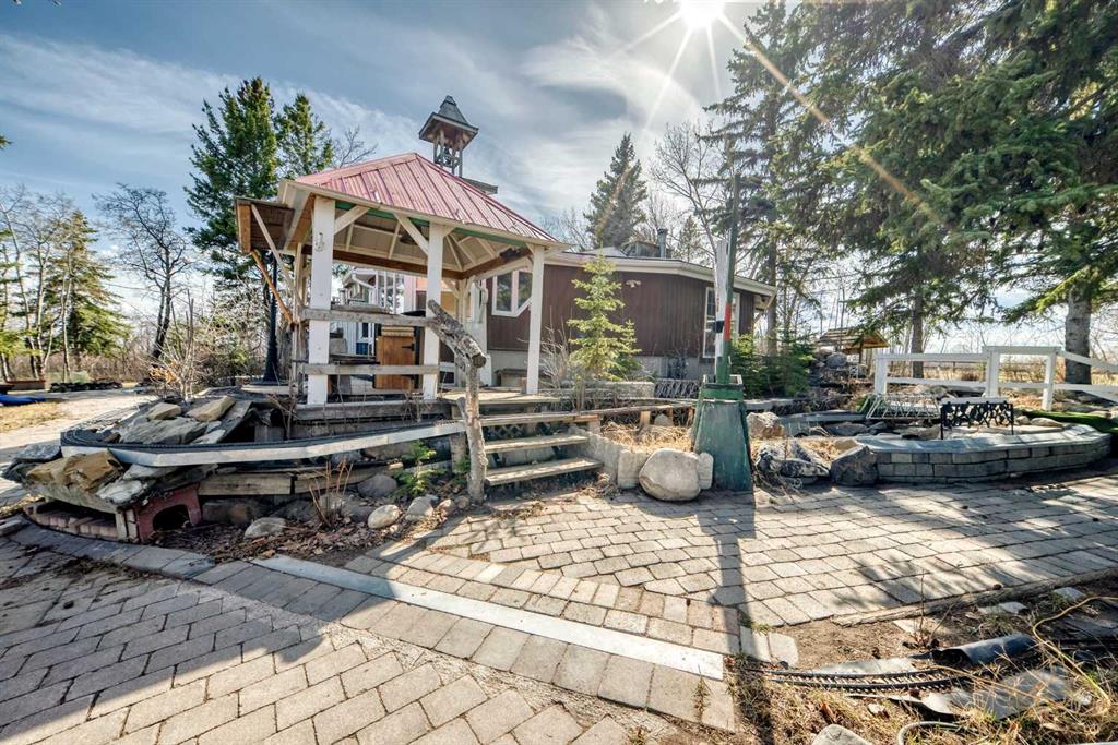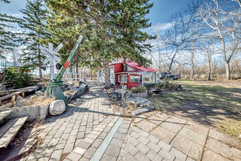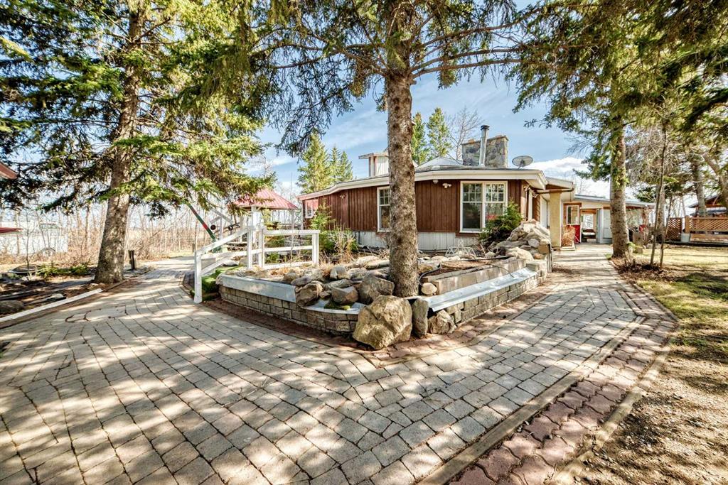 Escape to your own private 2-acre retreat in an unbeatable location! This one-of-a-kind heritage-style acreage offers incredible privacy, mature trees, and a collection of unique outbuildings designed for lifestyle and flexibility. From the charming garden house (perfect for a she-shed or guests), to the detached garage, to the standout roundhouse ready for your dream outdoor kitchen and entertaining space—this property is full of character and opportunity. The spacious 2,500 sqft home features multiple inviting living areas including a sunroom and atrium, a well-appointed kitchen with stainless steel appliances, marble counters, and wood cabinetry, plus a true primary retreat with sitting area and wood stove. Step outside to your own backyard oasis complete with sauna, manmade creek, boardwalks, rooftop patio, and western-inspired touches. With ample parking, a heated garage, breezeway, and room to expand—including potential for an additional shop or secondary suite (up to 1600 sqft with county approval)—this property offers endless possibilities just minutes from Sirocco Golf Course. A rare opportunity to own a truly unique acreage!!