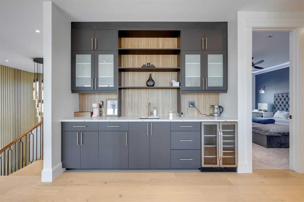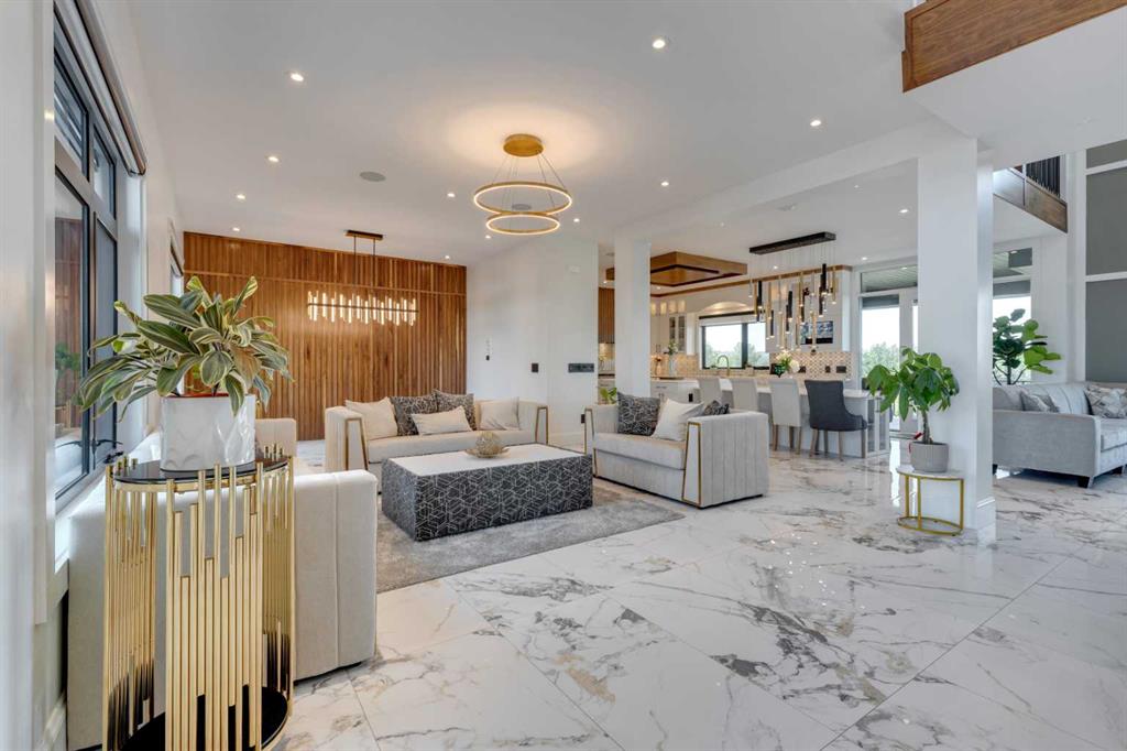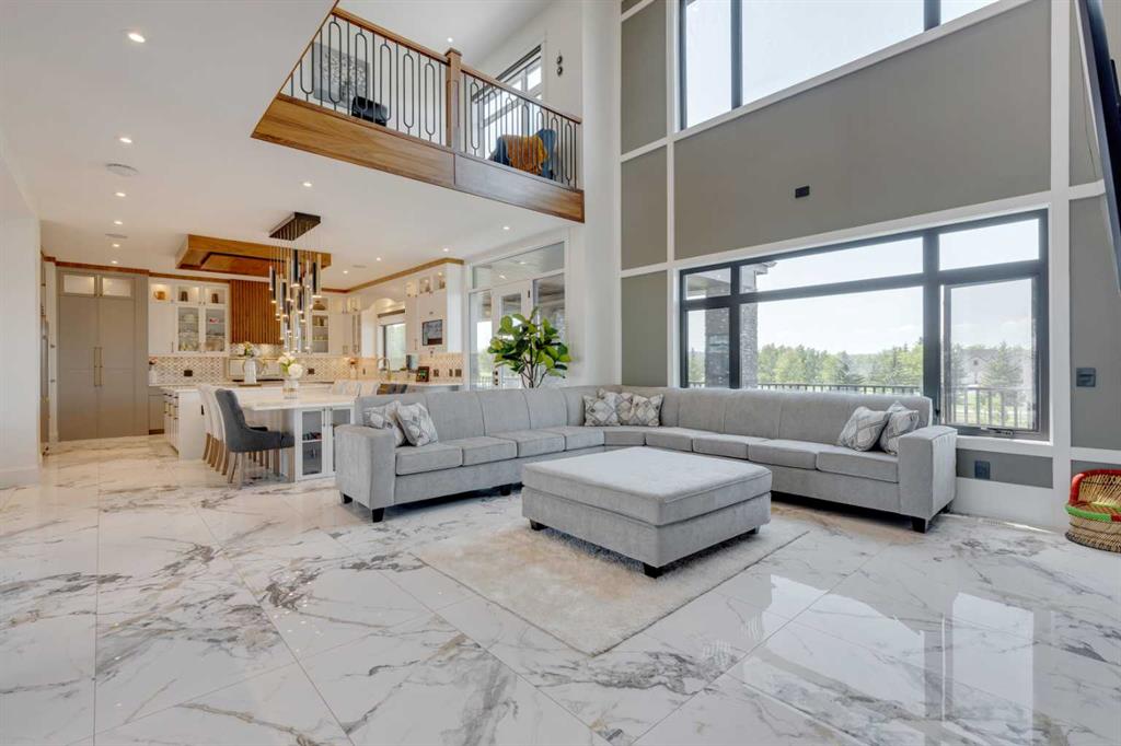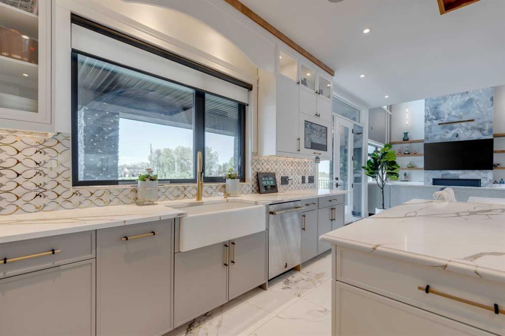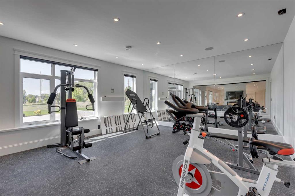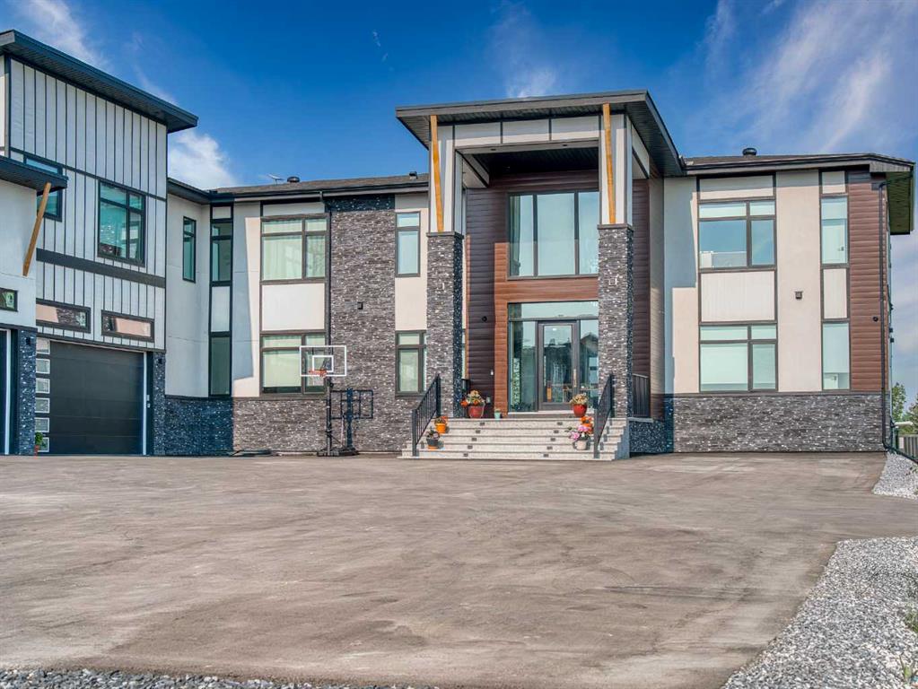 Located only seven minutes from Calgary and across the street from the Carnmoney Golf & Country Club, this exquisite acreage epitomizes luxury and exceptional design. Spanning just under 9,000 sq/ft of living space across three levels, this property boasts eight spacious bedrooms and nine bathrooms, equipped with smart toilets and top-of-the-line fixtures. It features three kitchens, perfect for entertaining and family gatherings, each with modern appliances and high-quality cabinetry. Additional amenities include a fully equipped home gym, a private home theater, and a massive wine cellar ideal for any connoisseur. The heated shop, with its own bathroom and mezzanine, offers a versatile space for various projects or storage needs. The master suite is a true highlight, covering over 700 sq/ft and featuring a private laundry. It opens onto an expansive west-facing balcony, over 800 sq/ft, offering stunning mountain views and a perfect spot to watch golfers at the Carnmoney Golf & Country Club. Every detail in this extraordinary home has been meticulously designed and executed, ensuring that nothing has been overlooked or underbuilt.