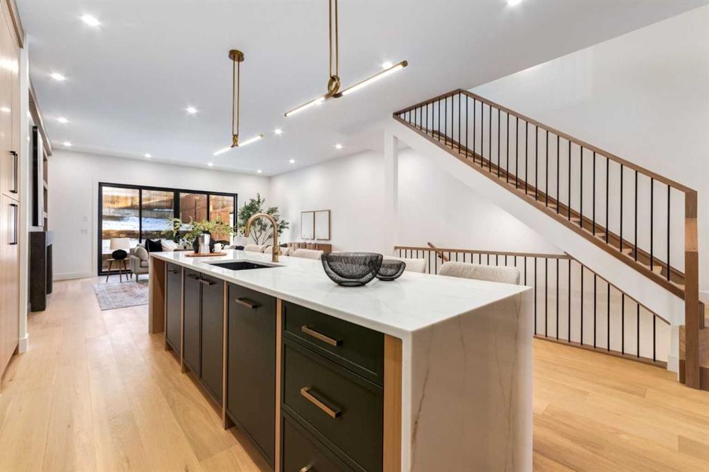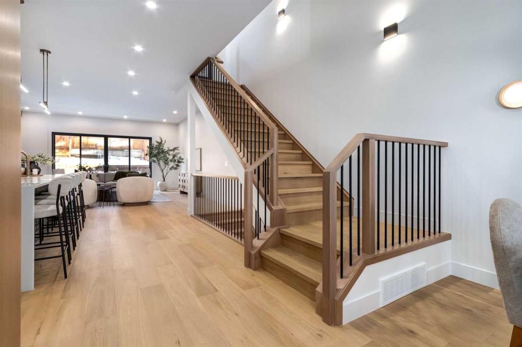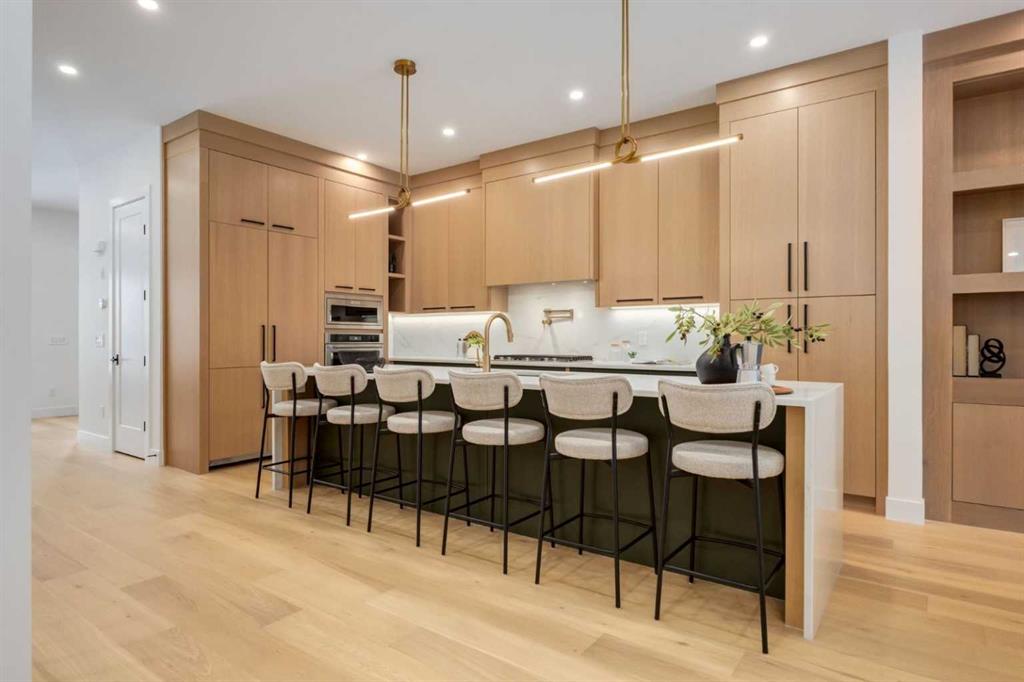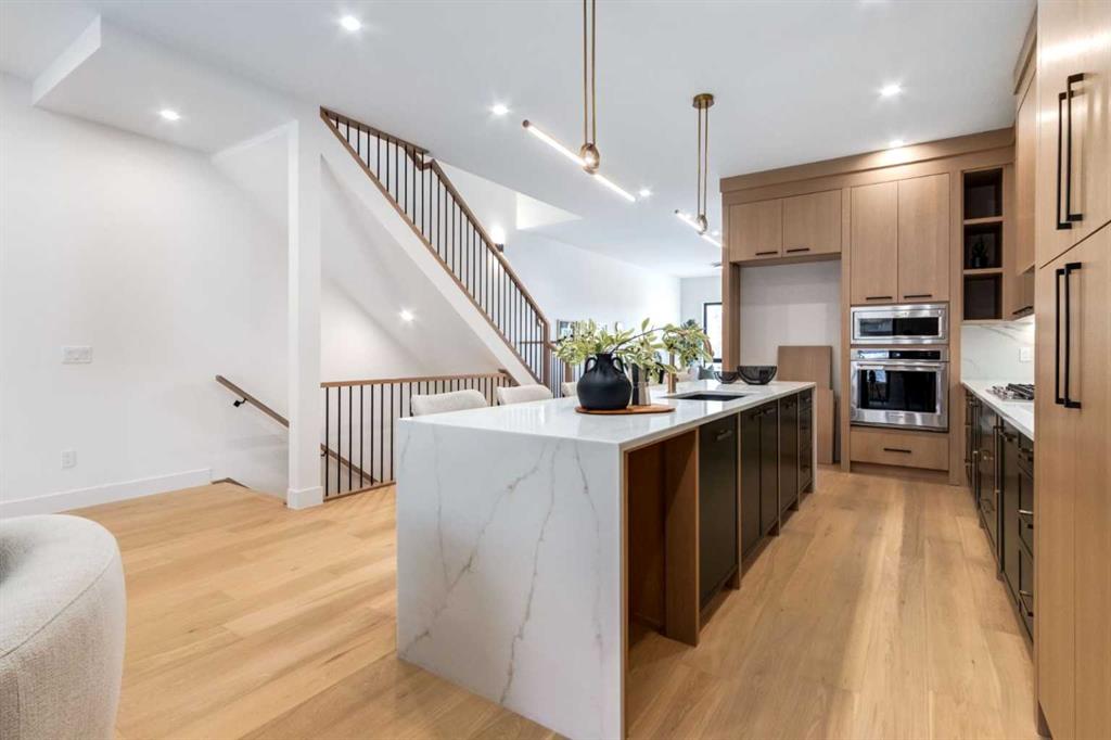Click brochure link for more details** OPEN HOUSE: SATURDAY & SUNDAY (NOV 29 & 30) 1:00 PM – 3:00 PM. Introducing an unparalleled opportunity by Elite Craft Builders. Discover brand-new, bespoke luxury in one of Montgomery’s most desirable locations. This stunning semi-detached residence offers 3155 sq ft of total living space with 2,379 sq ft above ground of exceptional, high-end living space, featuring white Oak hardwood and exquisite finishing throughout. The main floor boasts a gourmet kitchen centered around a magnificent waterfall island with high-end quartz, complete with a panel-ready Dacor fridge and a pot filler. The bright living area features a sophisticated gas fireplace with a custom mantel, alongside a dedicated office space. Upstairs, the primary retreat provides a true sanctuary with its own private balcony and spectacular River Valley Escarpment views, complemented by a luxurious ensuite that includes a smart toilet. The home is completed by a versatile bonus room/loft, which can be used as a spacious lounge or flex room, a fully finished lower level with a wet bar, and an attached front garage. Location is paramount: you are steps from the Bow River Pathway and Shouldice Park, and just minutes from Market Mall, Foothills, and Children’s Hospital. This address offers the perfect blend of luxury, privacy, and ultimate connectivity.