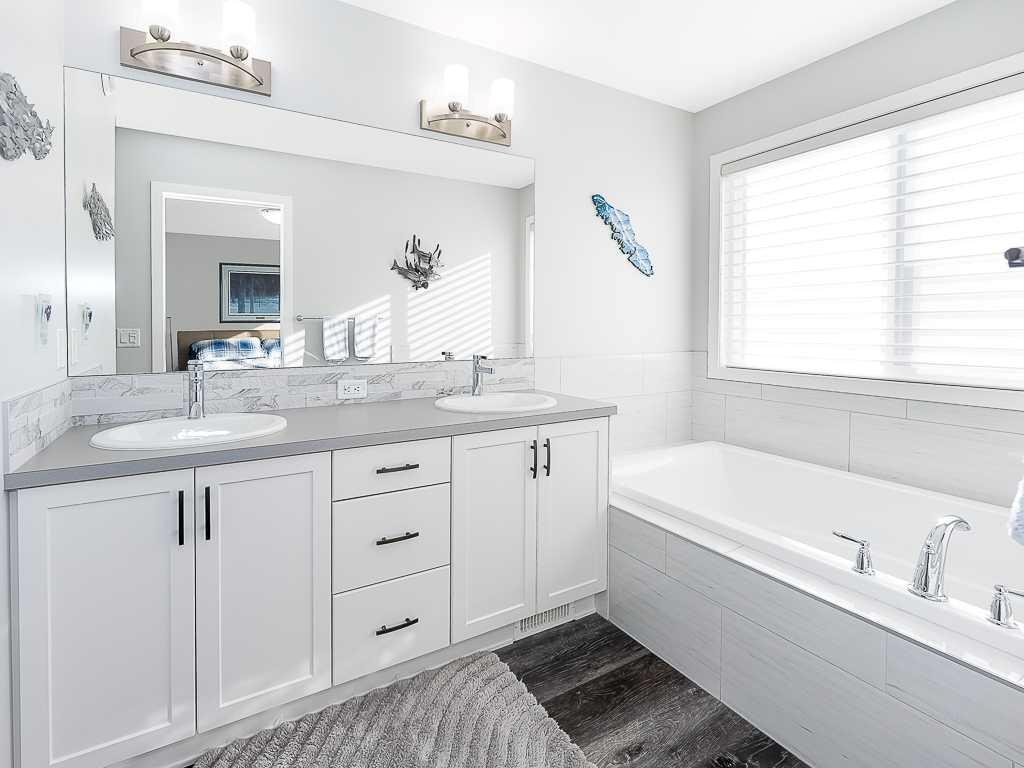 A beautiful turn-key home where every detail of this residence has been thoughtfully curated, showcasing impeccable craftsmanship, elevated style, and an undeniable pride of ownership. As you enter the home you are greeted by soaring ceilings and an open-concept main level filled with natural light. The heart of the home is the expansive kitchen, featuring a new LG induction range, sleek stainless steel appliances, generous counter space, and ample cabinetry—designed to balance everyday functionality with contemporary elegance. Upstairs, the inviting primary suite offers a serene retreat complete with a spa-inspired ensuite and refined finishes. Two additional spacious bedrooms and the convenience of an upstairs laundry room add to the home’s comfort and practicality. The lower level offers incredible potential with 12-foot ceilings, bathroom plumb-ins, and huge windows creating a bright, open feel that’s rare to find and ideal for future development. Outside, enjoy your beautifully landscaped, south-facing backyard—a fully fenced and sun-drenched oasis perfect for relaxing or entertaining. The home’s front and back irrigation systems ensure effortless maintenance, while the double detached garage, insulated, drywalled, and painted, provides both style and functionality. A new roof was installed in 2022 and adds peace of mind for years to come. Modern upgrades further elevate this home’s exceptional livability. Central air conditioning keeps you comfortable year-round, while the 1.9 kW solar panel system enhances energy efficiency and reduces utility costs. An on-demand water heater and automatic water softener system provide everyday convenience, underscoring the home’s thoughtful design and commitment to comfort. Every element of this residence reflects meticulous care, enduring quality, and modern sophistication. This is more than a home—it’s a statement of style, comfort, and thoughtful living, ready to welcome its next proud owners- book your showing today!
