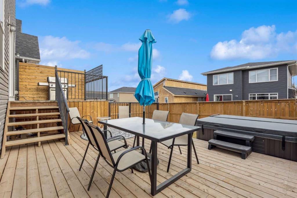 The main floor features elegant LUXURY VINYL PLANK flooring, BUILT-IN SPEAKERS, and a bright, open layout ideal for both everyday living and entertaining. The stunning WHITE KITCHEN impresses with QUARTZ COUNTERTOPS, a large ISLAND, BUILT-IN MICROWAVE, FRENCH-DOOR REFRIGERATOR, and a GAS RANGE—perfect for cooking enthusiasts. Overlooking the dining area and backyard, the inviting living room features a TILED GAS FIREPLACE that adds warmth and character. A convenient MAIN-FLOOR OFFICE with FRENCH DOORS provides the ideal space for remote work or quiet study. Step outside to an EAST-FACING BACKYARD with a DOUBLE DECK, offering a great spot for morning coffee, weekend barbecues with the the ease of a BBQ GAS LINE, or simply relaxing in the sun.