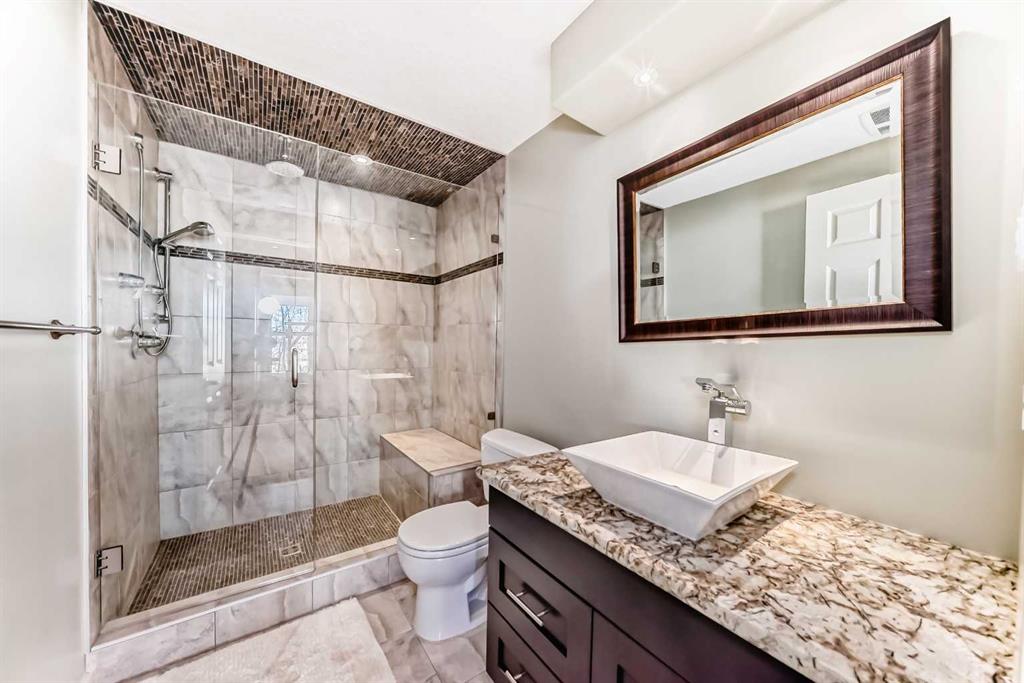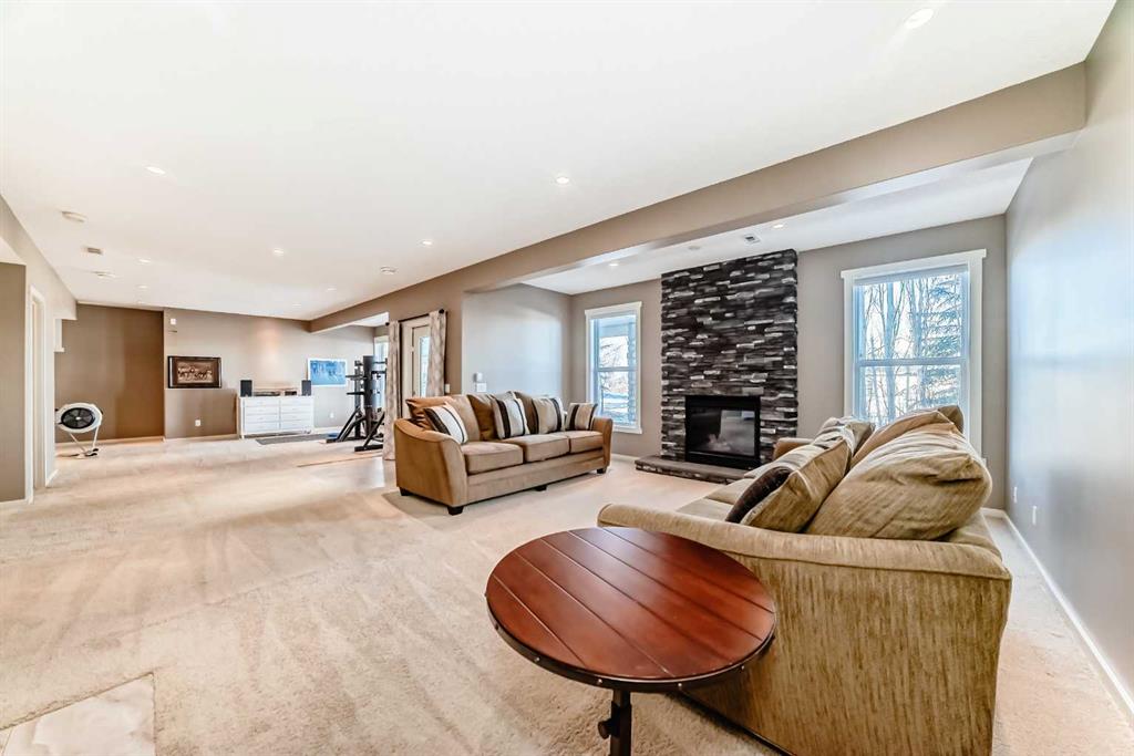 The finished walkout lower level offers exceptional space with a games/rec room, family room with gas fireplace, wet bar, 3-piece bath, media room, and a workout area that can easily convert to a fourth bedroom.