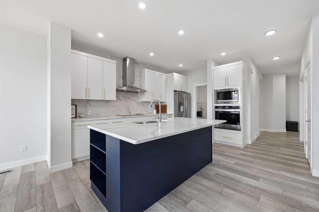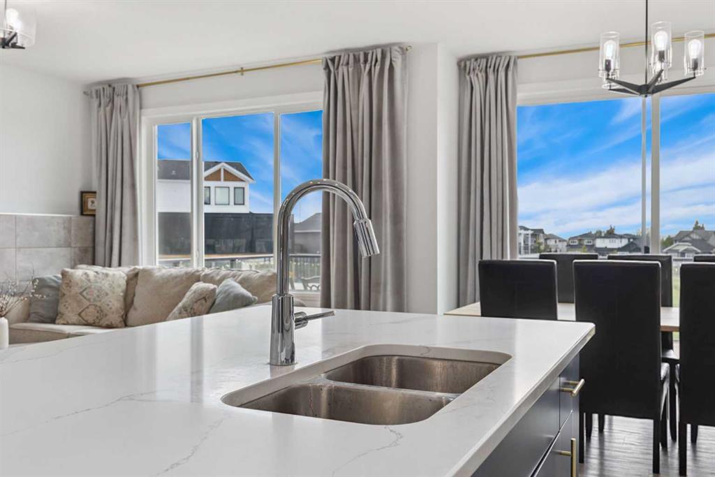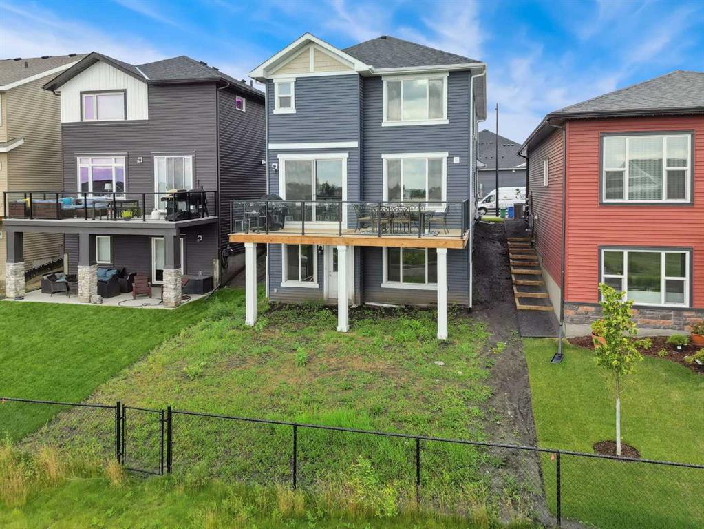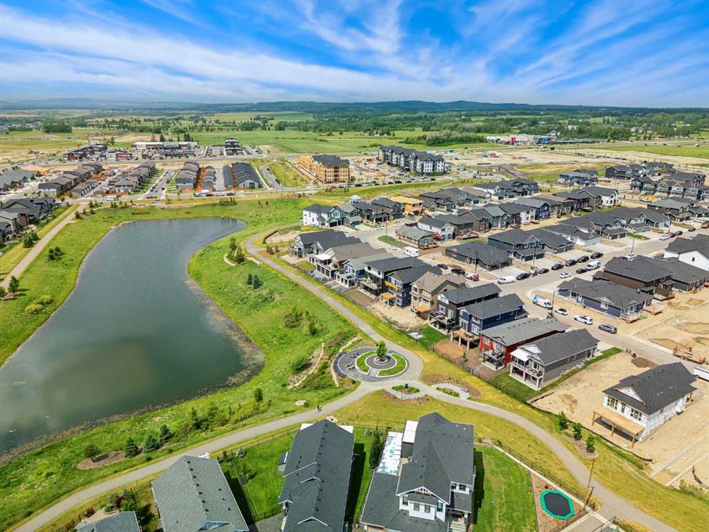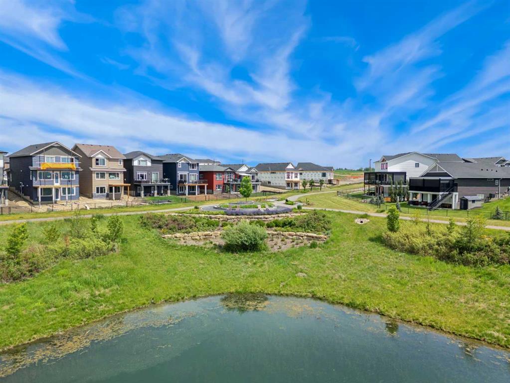 ** QUICK POSSESSION AVAILABLE** MOUNTAIN VIEWS ** SERENE POND SETTING** Stunning WALKOUT home nestled in a quiet tucked away location in the heart of one of Okotoks up and coming north end communities of Wedderburn. Imagine sipping coffee on your deck listening to the sounds of nature , watching the sunset over the majestic Rocky Mountains. South facing pond lots like this are hard to come by. Step inside to this next to new home and admire the abundance of natural light . Walk through the well thought out floorplan the the front office complete with French doors, a nice added touch. The stunning chefs kitchen is complete with upgraded appliances, including built in oven and microwave, an induction cooktop, and a spacious pantry that could be easily converted to a butlers style coffee bar! Stunning gold hardware and quartz counters are a designers dream for decorating. The cozy living room and large dining space are blessed with large windows and sliding doors that lead your eye out to the entrancing pond views. The upper level is the perfect family layout with the middle bonus room separating the primary bedroom from the kids/guest rooms. The large primary suite is fit for king sized furniture- and features a large ensuite with large tiled shower, a soaker tub, 2 sinks and a bidet. The closet has so much space you will need to shop for more clothes! You will be surprised at the size of the bedrooms in this home- each with their own large walk-in closet ! The lower walkout level is nicely designed for development with rough in for bathroom and large windows. This home has barely been lived in and ready for new owners. Skip the wait of building , and enjoy the fact that most construction on the street is now coming to an end. This community is just going to become better and better. Close to shopping, a new dog park, a new pump track, and easy access to Calgary for commuters. The south facing blank slate landscape is perfect for gardeners who love to design spaces. There is not much you won’t love about this home. Have pets ? The stainless steel sink at the back bathroom is nice added touch for a pet wash station. A/C roughed-in (just add condenser unit) Pack up the family – Move in – and enjoy this amazing home. This is not just a home – Its a lifestyle.