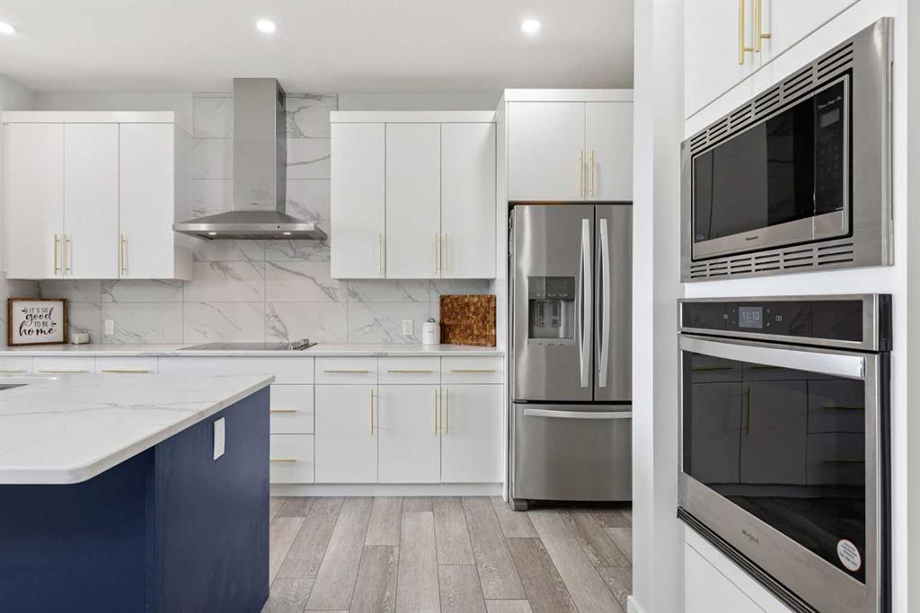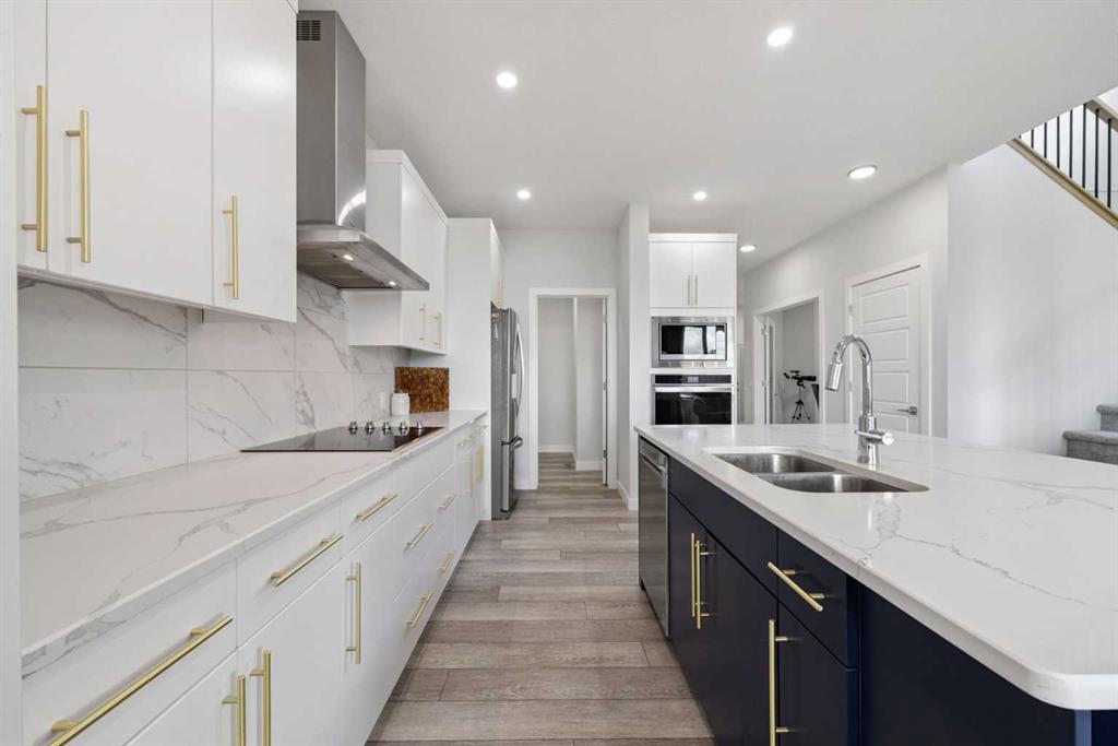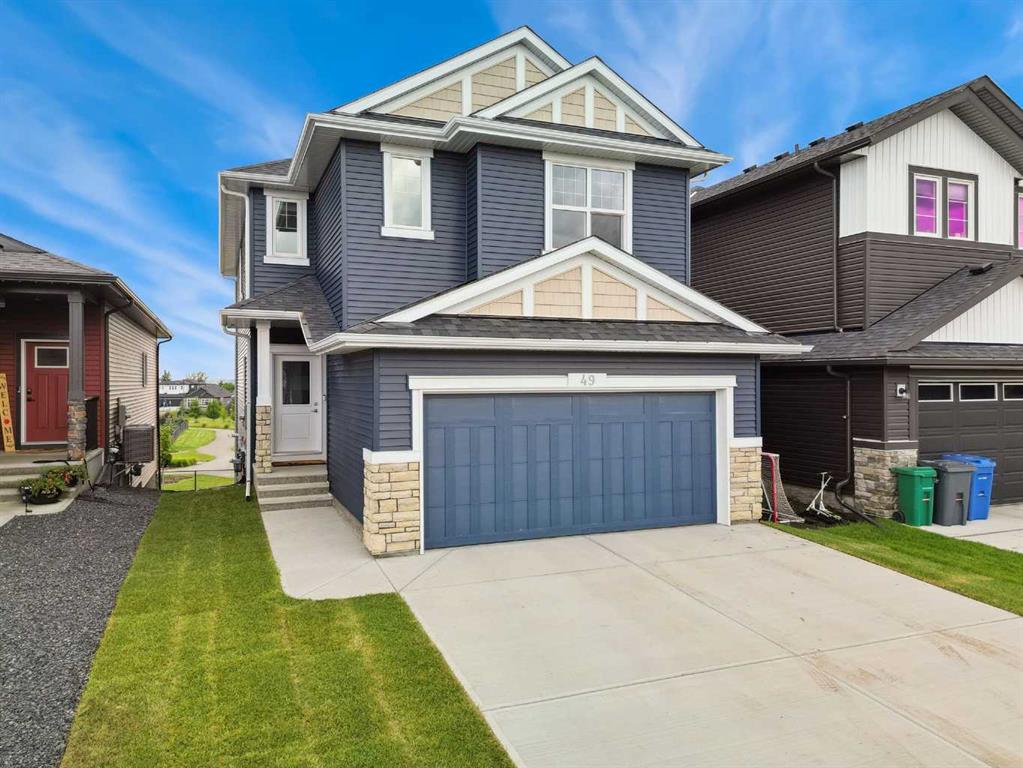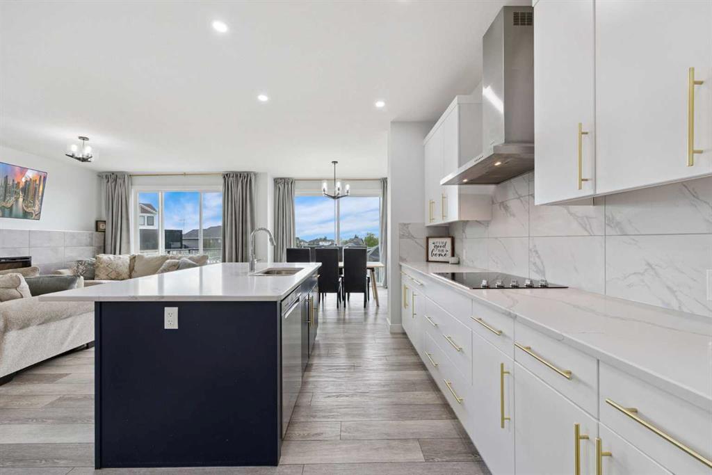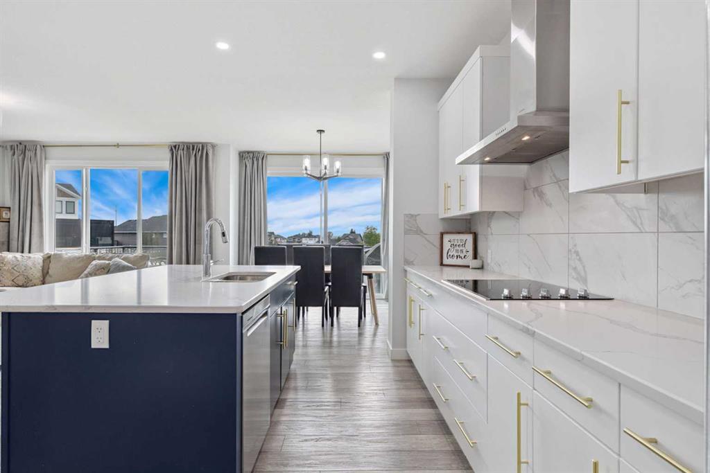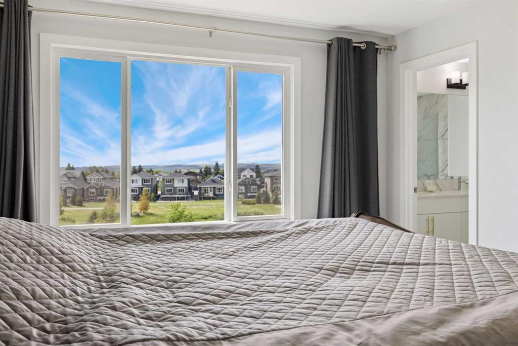 ** QUICK POSSESSION AVAILABLE** MOUNTAIN VIEWS ** SERENE POND SETTING** Stunning WALKOUT home nestled in a quiet tucked away location in the heart of one of Okotoks up and coming north end communities of Wedderburn. Imagine sipping coffee on your deck listening to the sounds of nature , watching the sunset over the majestic Rocky Mountains. South facing pond lots like this are hard to come by. Step inside to this next to new home and admire the abundance of natural light . Walk through the well thought out floorplan the the front office complete with French doors, a nice added touch. The stunning chefs kitchen is complete with upgraded appliances, including built in oven and microwave, an induction cooktop, and a spacious pantry that could be easily converted to a butlers style coffee bar! Stunning gold hardware and quartz counters are a designers dream for decorating. The cozy living room and large dining space are blessed with large windows and sliding doors that lead your eye out to the entrancing pond views. The upper level is the perfect family layout with the middle bonus room separating the primary bedroom from the kids/guest rooms. The large primary suite is fit for king sized furniture- and features a large ensuite with large tiled shower, a soaker tub, 2 sinks and a bidet. The closet has so much space you will need to shop for more clothes! You will be surprised at the size of the bedrooms in this home- each with their own large walk-in closet ! The lower walkout level is nicely designed for development with rough in for bathroom and large windows. This home has barely been lived in and ready for new owners. Skip the wait of building , and enjoy the fact that most construction on the street is now coming to an end. This community is just going to become better and better. Close to shopping, a new dog park, a new pump track, and easy access to Calgary for commuters. The south facing blank slate landscape is perfect for gardeners who love to design spaces. There is not much you won’t love about this home. Have pets ? The stainless steel sink at the back bathroom is nice added touch for a pet wash station. A/C roughed-in (just add condenser unit) Pack up the family – Move in – and enjoy this amazing home. This is not just a home – Its a lifestyle.