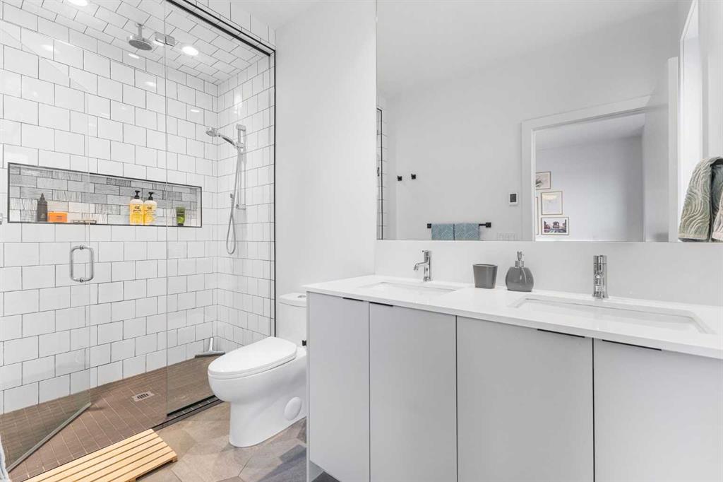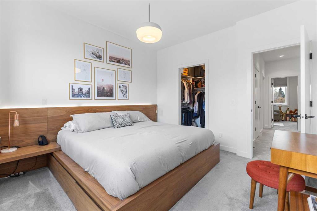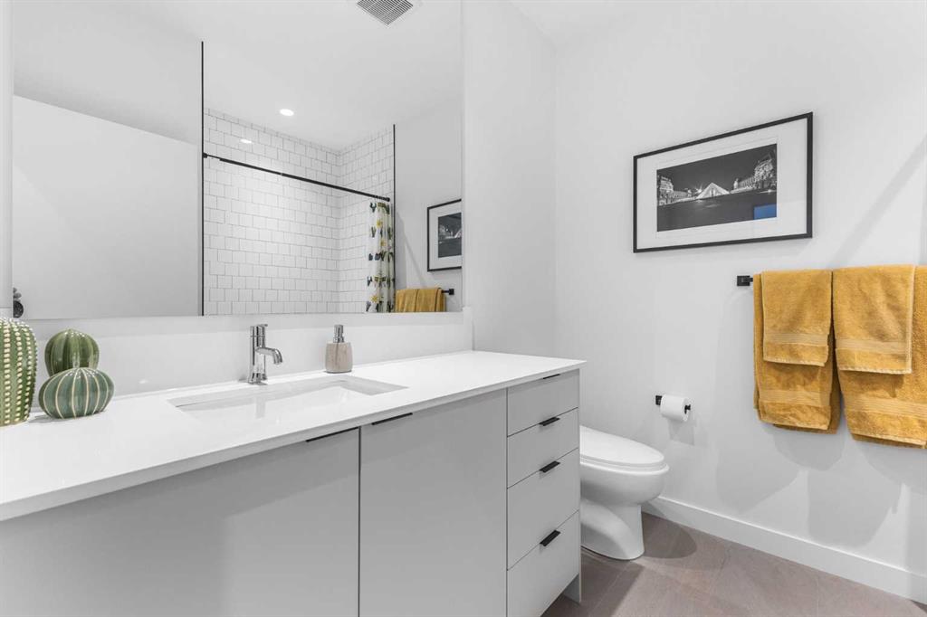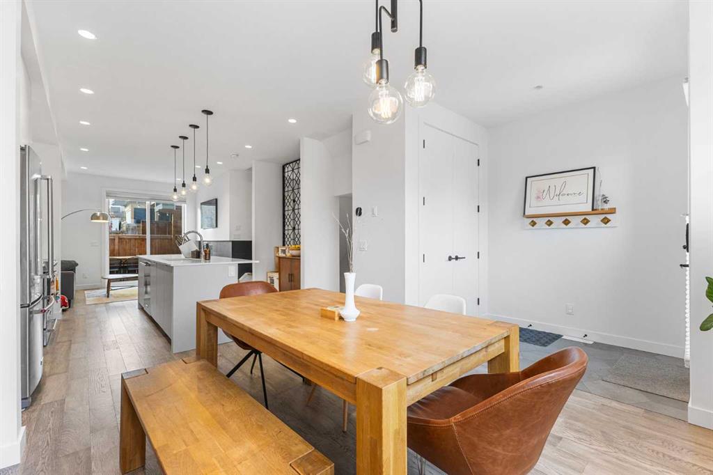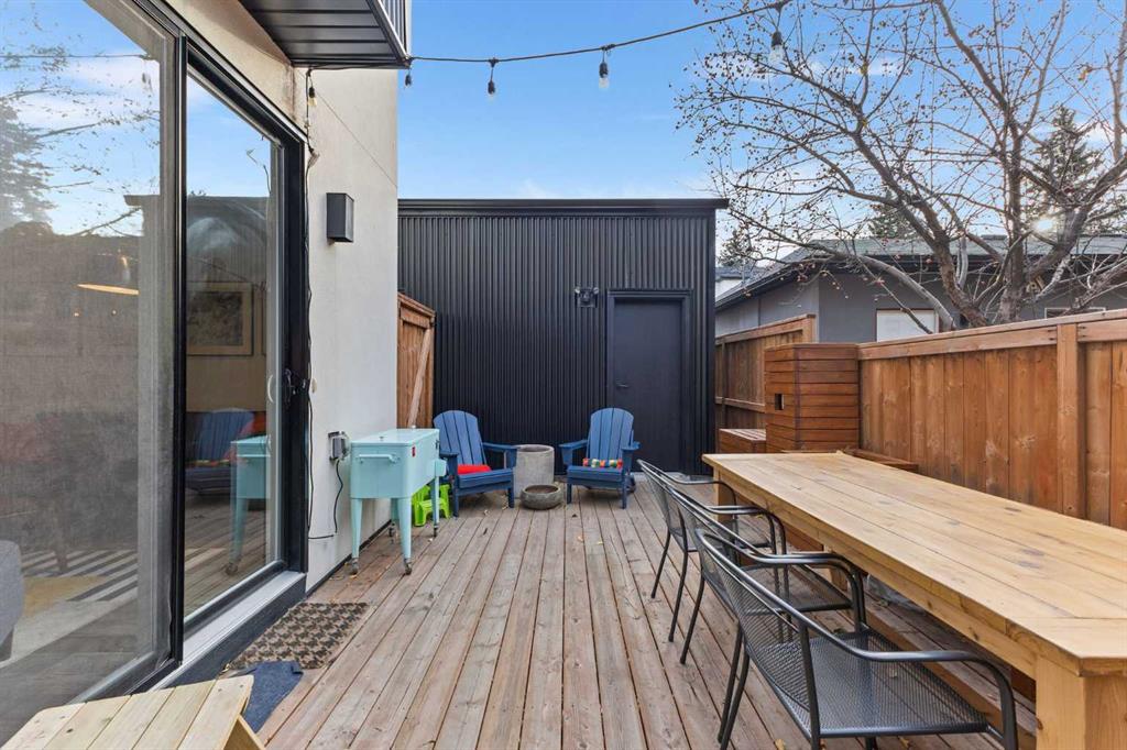 Welcome to this stunning three storey townhome in the heart of Altadore, offering over 2200 sq ft of beautifully designed living space with thoughtful upgrades and custom finishes throughout. Built in 2018, this residence combines modern style with functional design, creating a home that is as practical as it is elegant. The main floor showcases an open concept anchored by a chef’s kitchen with quartz countertops, a large island/eating bar, plenty of storage space and stainless steel appliances. Custom built cabinets with quartz counter tops and two floating wall to wall shelves add both storage and style to the adjoining dining area, while the living room with gas fireplace completes the perfect setting for entertaining. Upstairs, you’ll find two spacious bedrooms, including a primary retreat with a walk in closet and spa inspired ensuite featuring a fully tiled shower. A second full bathroom, also fully tiled, serves the additional bedroom. The upper level laundry station is a true standout: custom cabinetry with quartz countertop, two pull out hampers, floating wall to wall shelves, and a convenient hanging bar are thoughtfully positioned directly across from the stacked washer and dryer. The third floor loft is a versatile bonus space, complete with a wet bar and hardwood flooring, ideal for a media room, home office, or lounge. From here, step out and enjoy the views from the private rooftop patio. The fully finished basement offers a spacious recreation room, third bedroom, and a full bathroom with the comfort of heated floors. Outside, enjoy the back deck, enhanced with custom built furnishings that elevate everyday living. Cleverly designed planters, finished in stained wood, and at varying heights provide the perfect backdrop for creeping vines, clematis, or even an herb garden, while a custom prep station with natural stone top, storage, and privacy wall makes summer barbecues effortless. Other notable features include central air conditioning for year-round comfort and the convenience of private direct access to a single detached garage just steps away from back door. Located in one of Calgary’s most desirable inner city communities, this home is steps from parks, schools, shopping, and vibrant Marda Loop amenities, with quick access to downtown. This Altadore townhome is the perfect blend of modern design, custom craftsmanship, and urban convenience—ready to welcome its next owner.