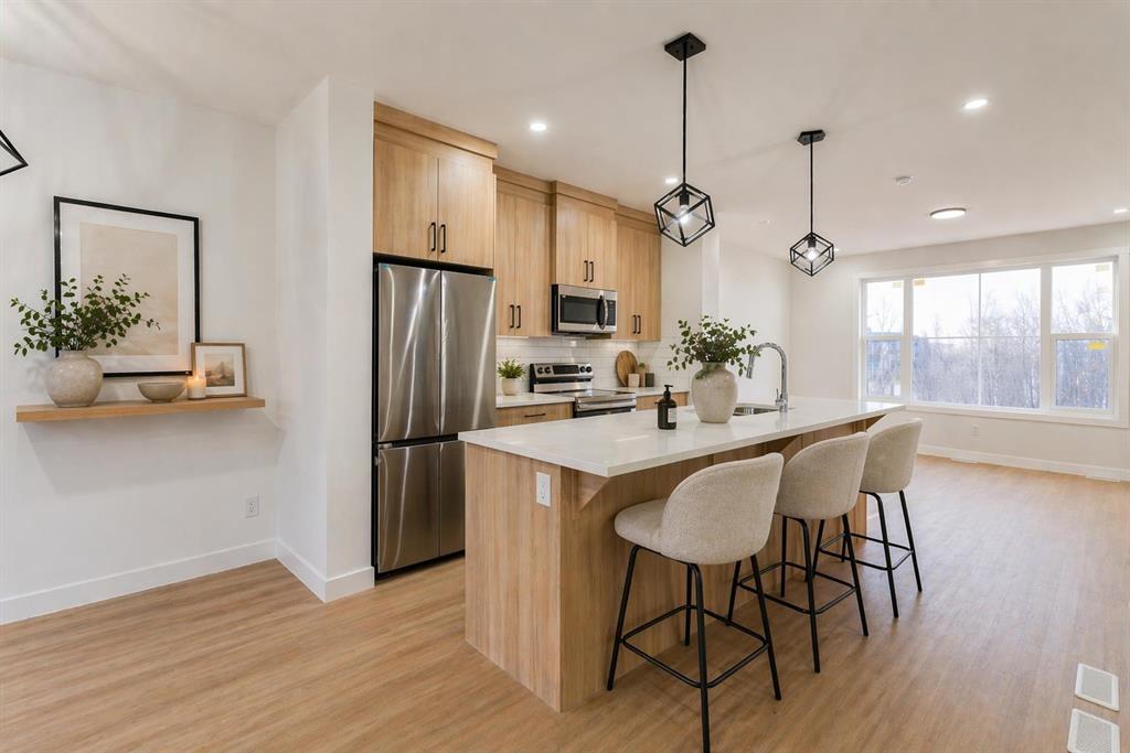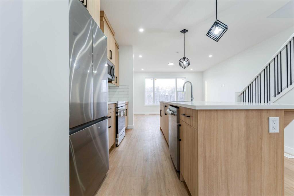**First-time home buyer GST Rebate Available**. Show Home For Sale | 4 beds | 3.5 bath | Single Car Garage Attached Experience the ideal mix of comfort, style, and convenience in this stunning townhome in Saddlepeace (Saddleridge NE). The bright main floor offers an open-concept layout with a modern kitchen featuring quartz countertops, stainless steel appliances, full-height cabinets, and a large island. Upstairs includes 3 spacious bedrooms, a primary suite with a walk-in closet and ensuite, plus convenient laundry. The ground-level 4th bedroom comes with its own ensuite and separate laundry—perfect for extended family or rental income. An attached garage adds extra convenience. Located close to shopping, schools, parks, transit, and the Sikh Temple, with easy access to Stoney Trail and Metis Trail. Only 5 minutes to Calgary International Airport and 15 minutes to CrossIron Mills. Schedule your private viewing today!