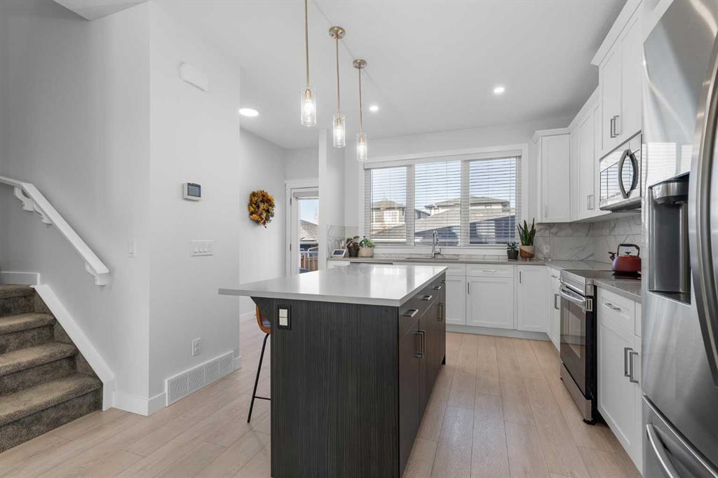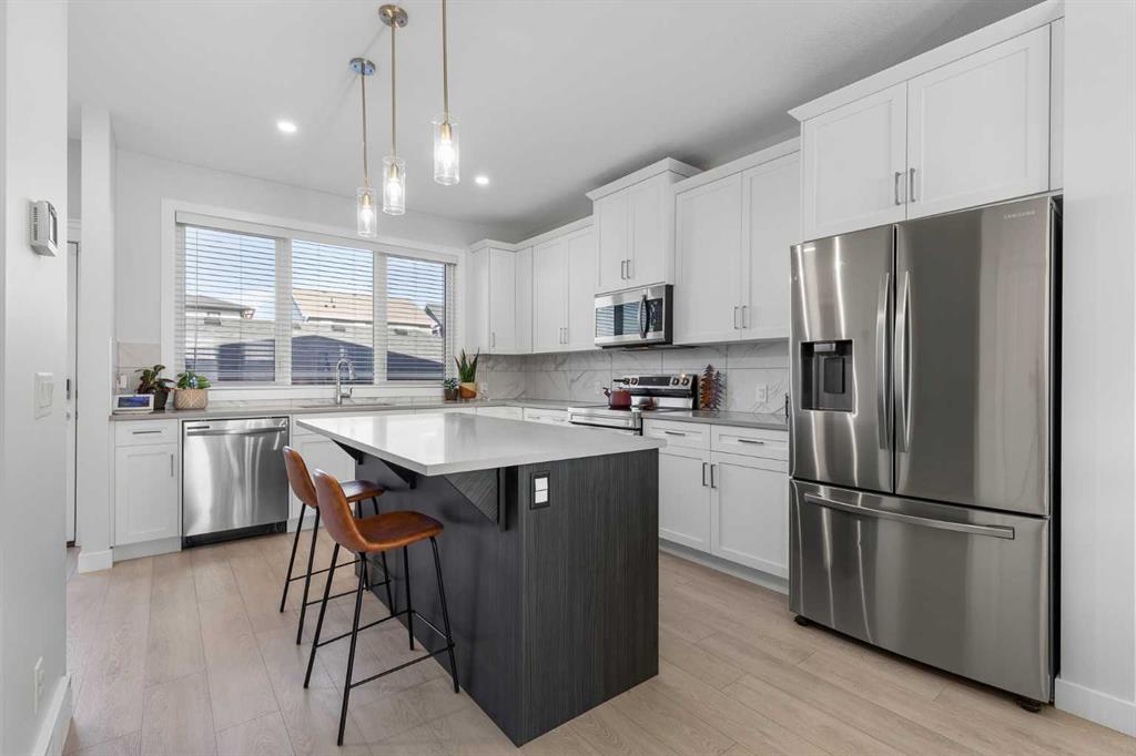 Welcome home to this beautifully cared for family home in the popular Coopers Crossing community of Airdrie. It offers a perfect mix of comfort, convenience and friendly vibes. Step inside to a bright and open main level filled with natural light and a warm, welcoming feel. The kitchen is a real showpiece with crisp white cabinetry, quartz counters, stainless steel appliances and a striking grey island that adds both contrast and character. The open concept design connects the kitchen, dining and living spaces for effortless flow, while durable vinyl plank flooring adds both style and practicality. A handy half bath and spacious front entry complete the main floor that works well for everyday living. Upstairs, the primary suite provides a relaxing retreat with a walk in closet and private ensuite, while two additional bedrooms and a full four piece main bathroom offer plenty of space for family or guests. The convenience of laundry on the upper level makes daily routines simple and efficient. The fully developed basement adds even more versatility to the home with an additional bedroom, a full four piece bathroom and a comfortable open area that works perfectly for movie nights, workouts or a quiet home office. The original owners have kept this home in pristine condition and it is a no pet, no smoking home. You will enjoy the cool comfort of central A/C and the convenience of a separate side entrance. Outside, the deck and landscaped yard are ready for your enjoyment, complete with a gas line for your BBQ. Right across the street is a playground with a zip line plus tennis and basketball courts that bring outdoor fun right to your doorstep. Three schools are within walking distance, and Coopers Town Promenade offers groceries, coffee and everyday essentials just a short walk away. Quick access to Highway 2 keeps your commute simple. The Coopers Crossing Residents Association keeps the neighborhood lively with events like Movie in the Park, Halloween celebrations, garage sale weekends and holiday lighting displays. This great community has parks, pathways and thoughtful planning that make it one of Airdrie’s most loved places to call home. Is this the one for your family? Book a showing and find out!