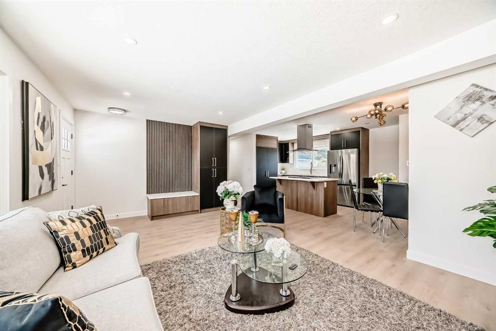 Welcome to this beautiful detached Bungalow, totally renovated yet a designer home this time in desired Community of Glamorgan, Perfect Investment, income property, Live up and rent down or keep all to yourself as its ideal for a big family or folks like to live around mature tree, Rocky Mountains view, Mount Royal University, world class entertainment such as Gray Eagle, community centers near by than this will work. Flooded with natural light from both the east and west, single detached garage, ample street parking, along with additional parking as set on a 50’ x 100’ R-CG lot. Comes with total 5 bedrooms, 2 washrooms, 2 living, kitchens, wet bar, laundry, basement have its own entrance, detached single garage, huge backyard, fenced all around the property. Here we go, as you entered, a closet and setting on left, greeted with open concept living room, with modern feature wall with electric fire place, high end kitchen with SS Appliances, stackable washer dryer and a dining area, high end vinyl plank throughout the floor. On the left have 4 pc washroom, and three bed rooms. Basement is fully finished with comes with separate entrance and offers living room, wet bar, 2 bedrooms, 4pc bath, Furness and laundry room. Close to all the amentias, enjoy the showing and feedback will be appreciated thx.