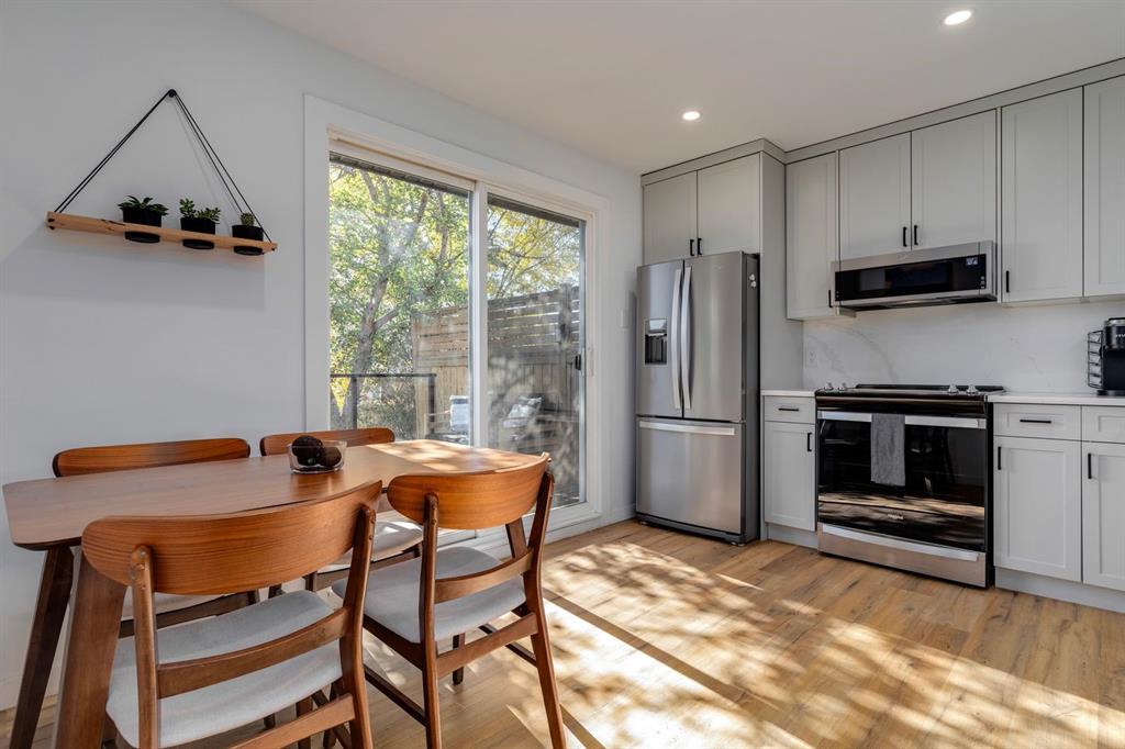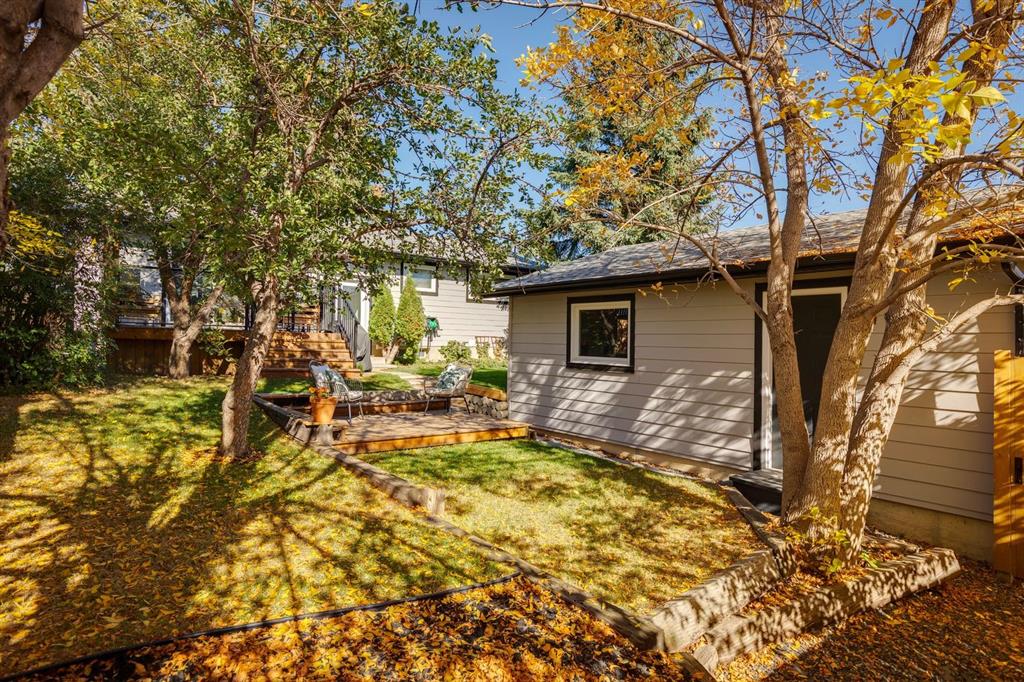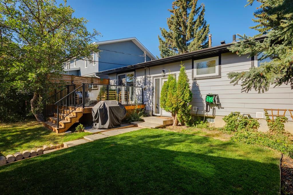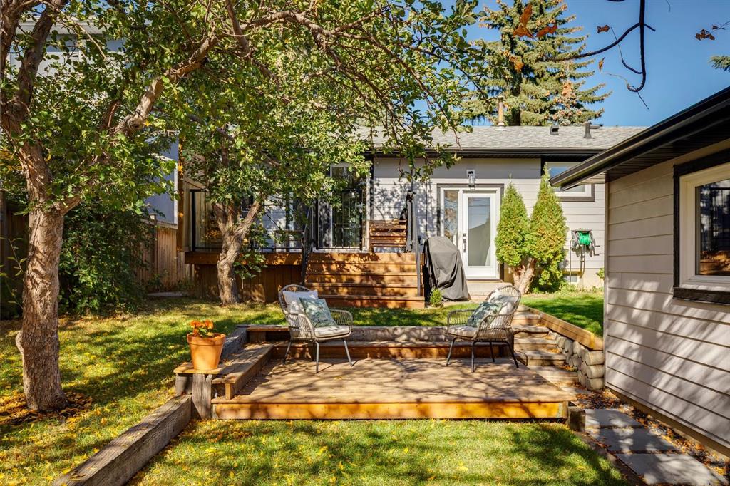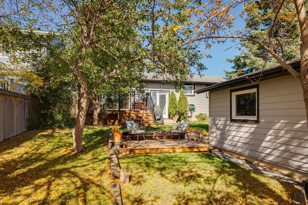 Outside, enjoy a private backyard oasis in your sunny south facing backyard with new sod, mature trees, and a two-tier deck with safety gate. Step out through the sliding doors off the kitchen to take it all in.