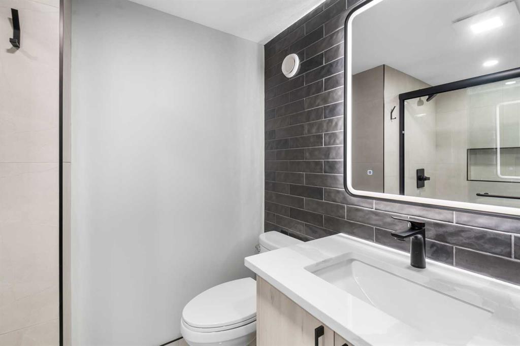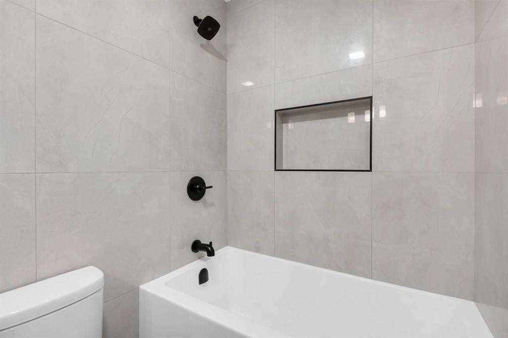 The main floor features a bright living area, updated half bath, and a fully redesigned kitchen with granite countertops and porcelain tile backsplash. Upstairs offers three generous bedrooms and a completely redone full bathroom with modern finishes. The fully developed basement adds a spacious rec room, a second fully renovated full bathroom, and a dedicated laundry and storage area.