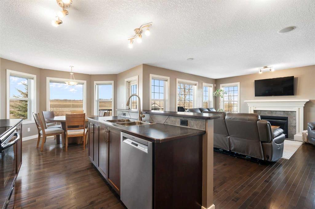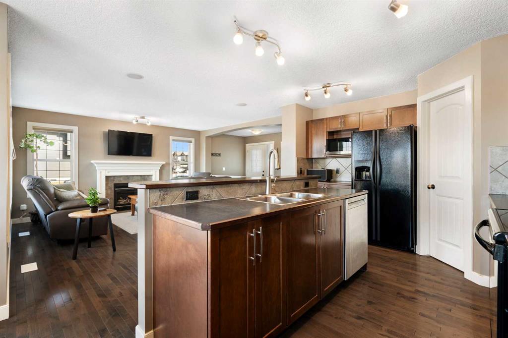 Welcome to this beautifully maintained 2,031 sq ft home, perfectly situated on a large corner lot in the heart of Bridlewood—offering an exceptional blend of comfort, privacy, and thoughtful design. Backing directly onto green space with a sun-drenched west-facing backyard, you’ll enjoy stunning sunset views and a peaceful setting ideal for relaxing evenings or hosting family and friends. Step inside to a bright and functional open-concept main floor, where large windows flood the home with natural light while showcasing picturesque views of the green space beyond. The spacious kitchen flows seamlessly into a cozy living area with a fireplace, while the flexible dining space is perfect for both everyday meals and entertaining. Stay cool all summer long with central air conditioning for added comfort. Upstairs, retreat to your private primary suite featuring a walk-in closet and a luxurious 5-piece ensuite. Two additional bedrooms, a full bathroom, and a versatile bonus room provide plenty of space for growing families or work-from-home needs. Convenient upper-level laundry completes the thoughtfully designed second floor. The fully finished basement expands your living space with a fourth bedroom, an additional full bathroom, and a large rec room or home theatre area—ideal for entertaining, guests, or multigenerational living. Outside, the west-facing corner lot offers added privacy with only one neighbouring property and direct access to green space behind, with amazing sunsets and mountain views! It’s the perfect setting for summer BBQs, outdoor relaxation, or letting kids and pets play freely. The double attached garage and landscaped yard complete the exterior, with potential RV parking (bylaws permitting) adding extra flexibility for those who love to travel. Additional upgrades include a newer hail-resistant roof (2023), providing peace of mind for years to come. Located just minutes from schools, parks, shopping, transit, and major routes including Stoney Trail, with easy access to Fish Creek Provincial Park and Spruce Meadows, this home offers unbeatable convenience in a quiet, family-friendly community. This isn’t just a home—it’s a lifestyle.