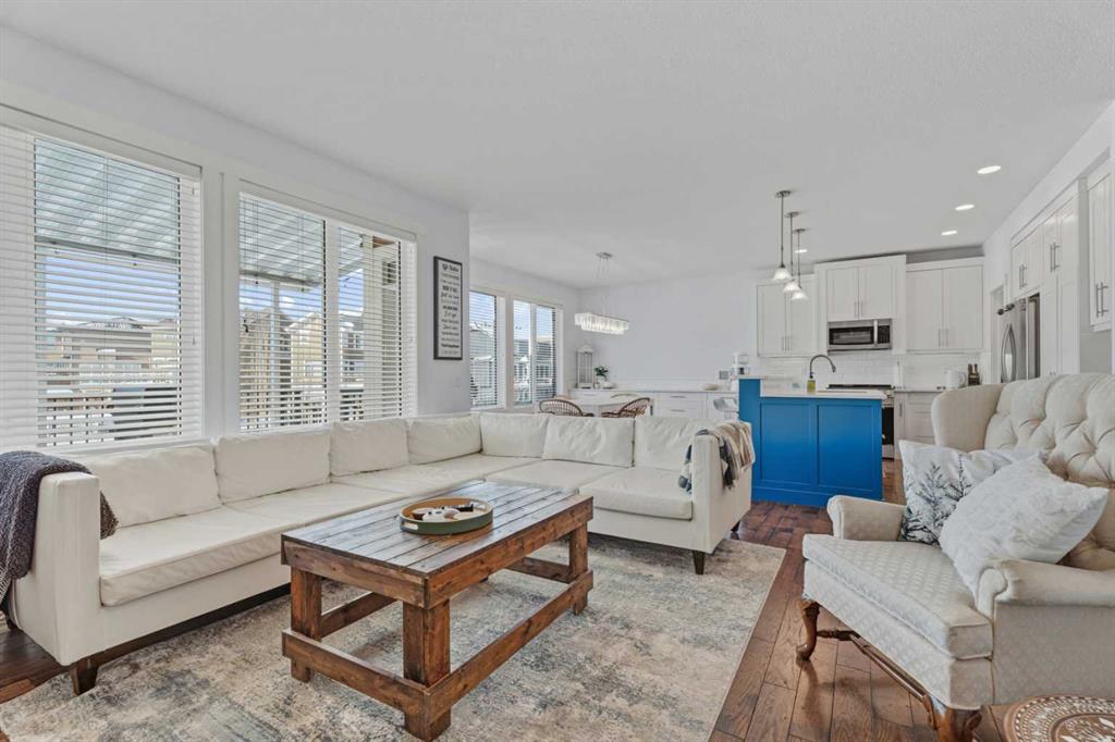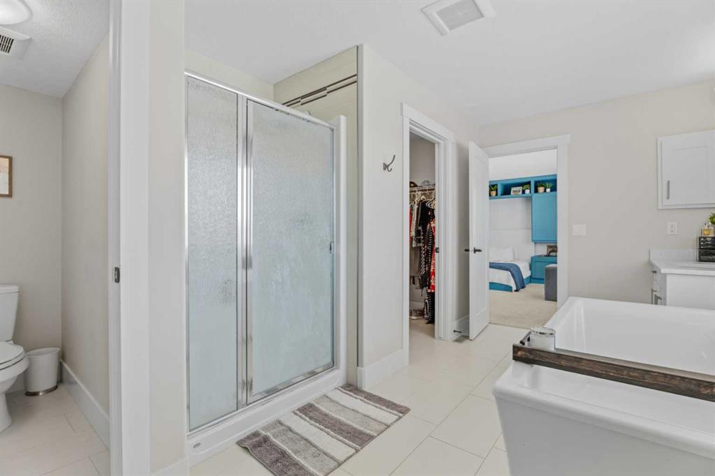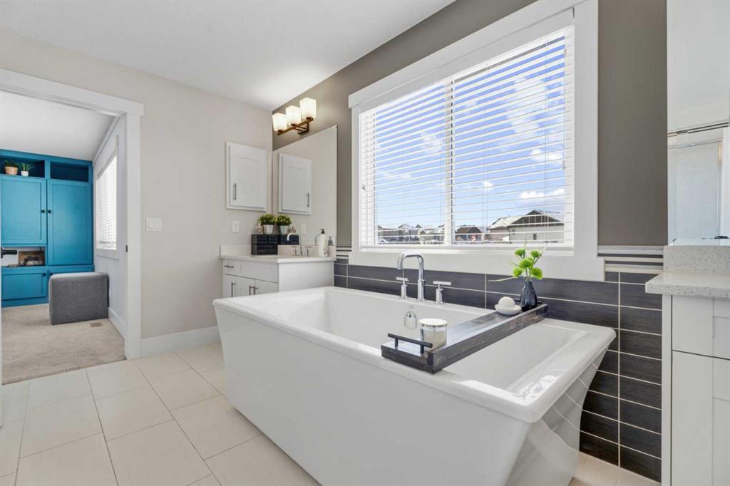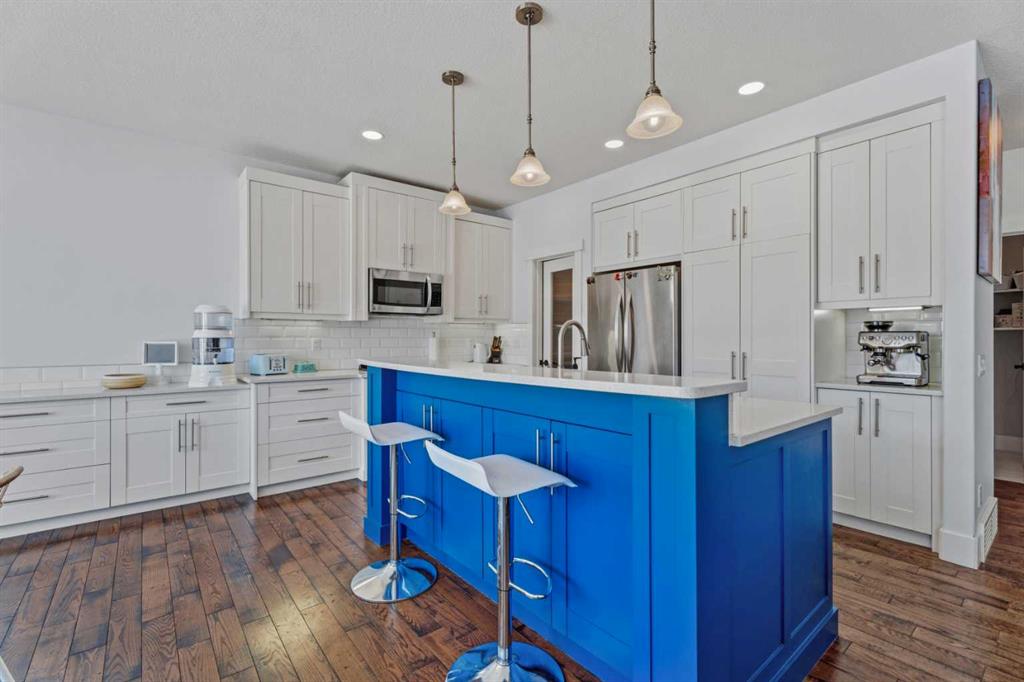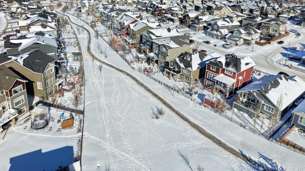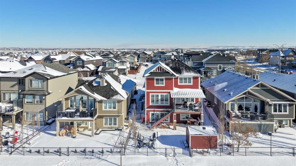 Welcome to Cimarron Springs, where comfort, convenience, and community come together. This beautifully maintained home sits along a scenic walking and biking path and features a west-facing backyard with a fully developed walkout basement—an ideal setting for outdoor living and year-round enjoyment. The garage is thoughtfully finished with epoxy flooring, a man door to the side yard, and extra storage. Inside, a spacious mudroom with built-in bench and hooks provides the perfect drop zone. Continue through the walkthrough pantry into a modern kitchen featuring white cabinetry, granite countertops, a striking blue island, and additional built-ins that flow seamlessly into the dining area. The main floor offers an open and inviting layout. The dining room accommodates a variety of table sizes, while the cozy living room features a fireplace and built-in shelving. Step onto the upper balcony to enjoy warm-weather lounging and BBQs—complete with newly added stairs leading down to the yard. A half bath and convenient laundry area complete the main level. Upstairs, a bright bonus room anchors the second floor. Two generously sized secondary bedrooms, a full bathroom, and a serene primary retreat provide plenty of space for the whole family. The primary ensuite includes dual vanities, a soaker tub, and tiles shower. The fully developed walkout basement extends your living space with in-floor heat, a wet bar, a full bathroom, a fourth bedroom, and a versatile recreation area. Outside, the yard features thoughtful landscaping, a charming firepit area, a matching garden shed, and a lean-to storage space along the side of the home. Additional perks include air conditioning and refreshed paint throughout. Lovingly maintained and move-in ready—book your showing today and experience all that Cimarron Springs has to offer.