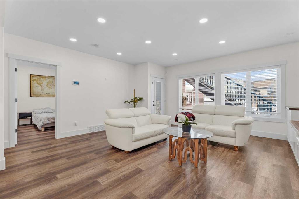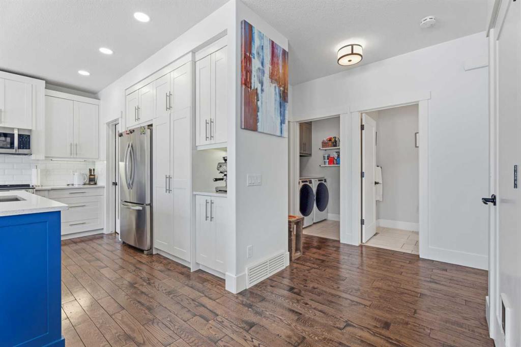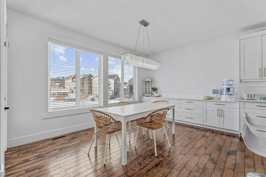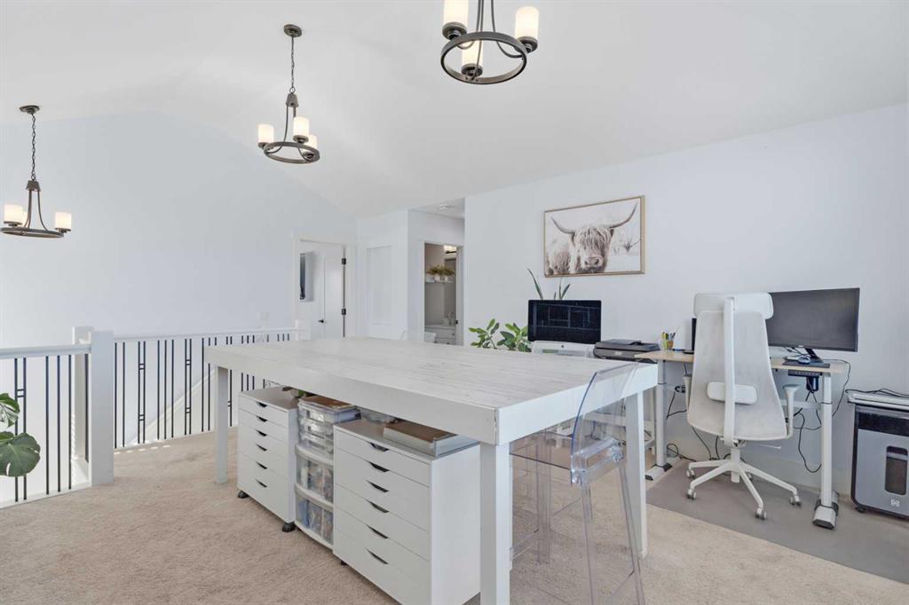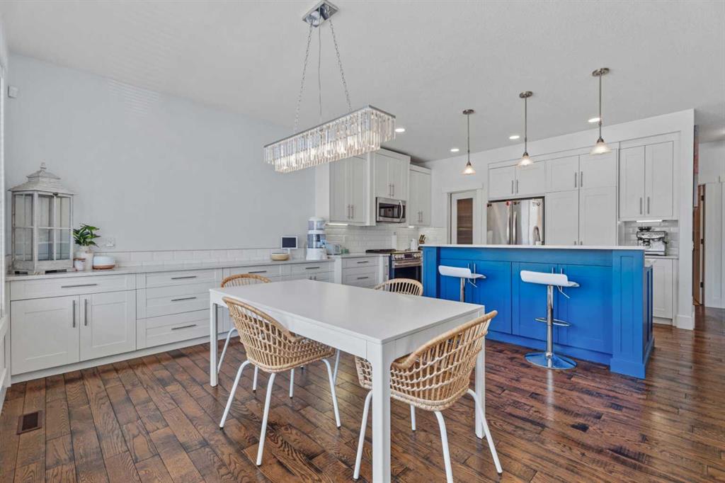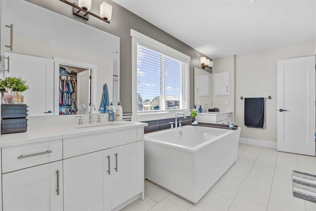 Welcome to Cimarron Springs, where comfort, convenience, and community come together. This beautifully maintained home sits along a scenic walking and biking path and features a west-facing backyard with a fully developed walkout basement—an ideal setting for outdoor living and year-round enjoyment. The garage is thoughtfully finished with epoxy flooring, a man door to the side yard, and extra storage. Inside, a spacious mudroom with built-in bench and hooks provides the perfect drop zone. Continue through the walkthrough pantry into a modern kitchen featuring white cabinetry, granite countertops, a striking blue island, and additional built-ins that flow seamlessly into the dining area. The main floor offers an open and inviting layout. The dining room accommodates a variety of table sizes, while the cozy living room features a fireplace and built-in shelving. Step onto the upper balcony to enjoy warm-weather lounging and BBQs—complete with newly added stairs leading down to the yard. A half bath and convenient laundry area complete the main level. Upstairs, a bright bonus room anchors the second floor. Two generously sized secondary bedrooms, a full bathroom, and a serene primary retreat provide plenty of space for the whole family. The primary ensuite includes dual vanities, a soaker tub, and tiles shower. The fully developed walkout basement extends your living space with in-floor heat, a wet bar, a full bathroom, a fourth bedroom, and a versatile recreation area. Outside, the yard features thoughtful landscaping, a charming firepit area, a matching garden shed, and a lean-to storage space along the side of the home. Additional perks include air conditioning and refreshed paint throughout. Lovingly maintained and move-in ready—book your showing today and experience all that Cimarron Springs has to offer.