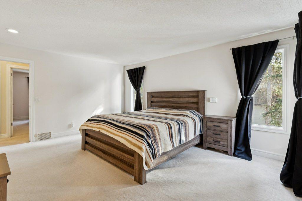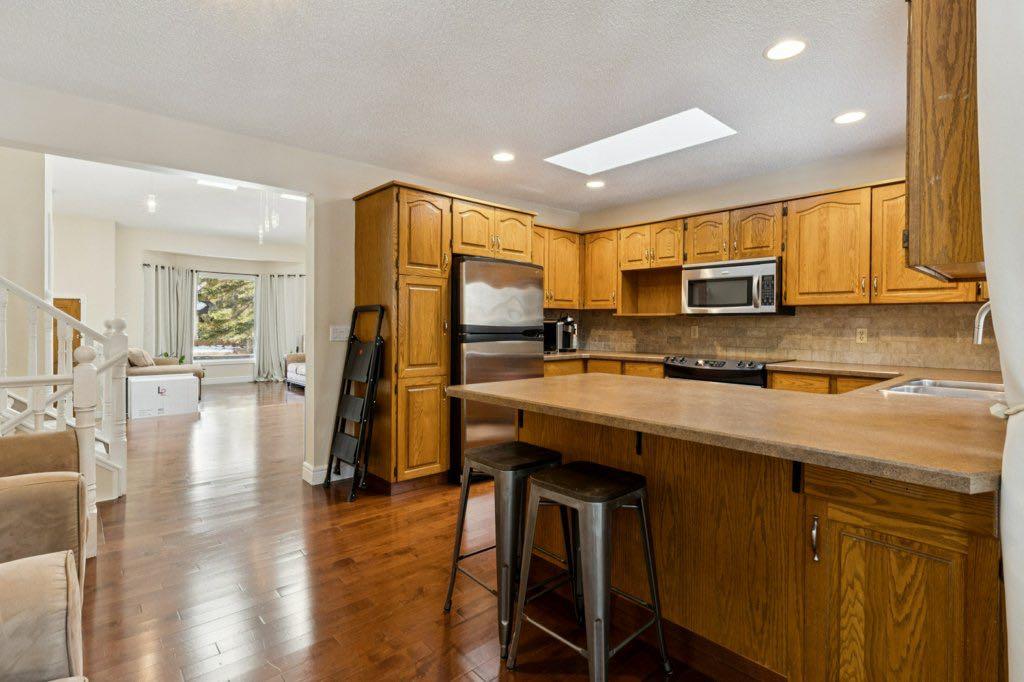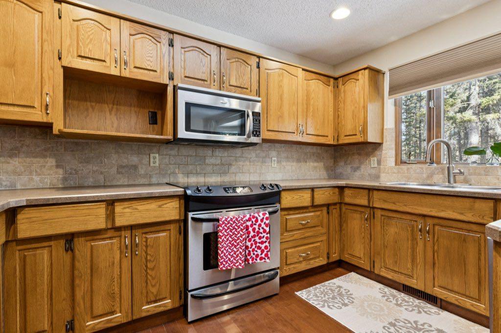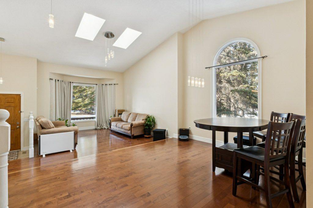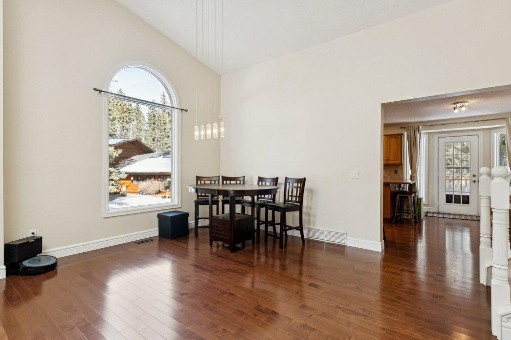 ***Part of a triple open house this Saturday! 1:00-4:30 PM** Spacious, updated family home on quiet cul-de-sac in desirable Redwood Meadows. The bathrooms, carpet, hardwood, lighting and paint were updated in 2010, and a new furnace in 2025. There is a large primary bedroom with modern five piece ensuite, featuring a custom shower with rain-head and massage jets, and a heated floor. There are two other bedrooms and a renovated bathroom upstairs. Main level has lofted ceiling, skylights and hardwood throughout. Large kitchen features stainless steel appliances, new backsplash and lots of counter space. The cozy family room has a stone-faced wood burning fireplace, and there is also a home office and full bath on this level. The basement is partially finished with a comfortable flex room and lots of storage space. The large, private backyard has a wonderful brick firepit for enjoying summer evenings, and also is very close to the berm trail, river, and lots of walking and biking paths. The roof has been finished with long life concrete tiles. This home has never been affected by flooding! Redwood Meadows is a popular and friendly community only a 20 minute drive to Calgary and a 15 minute drive to Cochrane, and only five minutes to the popular hamlet of Bragg Creek, with restaurants and shopping. World famous Kananaskis Country is also close by, with all of its recreational opportunities. Check out the 3-D tour and book your appointment today!