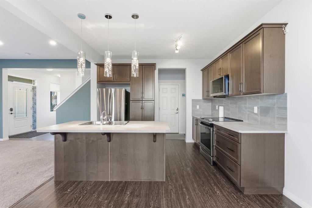 Welcome to your new home in South Windsong! This bright and comfortable three-bedroom home sits on a sunny corner lot. With extra space, more privacy, and sunlight pouring in from multiple sides, it immediately feels open and welcoming. The main floor offers a functional layout. The kitchen has stainless steel appliances, beautiful lighting fixtures, and a kitchen island that’s perfect for meal prep, baking, or catching up over coffee. The patio doors off the dining area lead to a private backyard with a storage shed and a cozy deck—just the spot to relax after a long day or enjoy quiet weekends at home. Upstairs, you’ll find convenient laundry, two secondary bedrooms, and a spacious primary suite with a soaker tub in the ensuite and a walk-in closet. The unfinished basement is great for storage or future potential. This home is great for families because the yard is private, you’re right across the street from a park with a playground, and it’s just a short fifteen-minute walk to Northcott Prairie Elementary. You’re also close to the future South Windsong high school, beautiful walking trails, and shopping at Cooperstown Plaza. This is a home that simply feels good the moment you walk in—and a location that makes everyday life just a little easier. Book a showing and come see it for yourself!